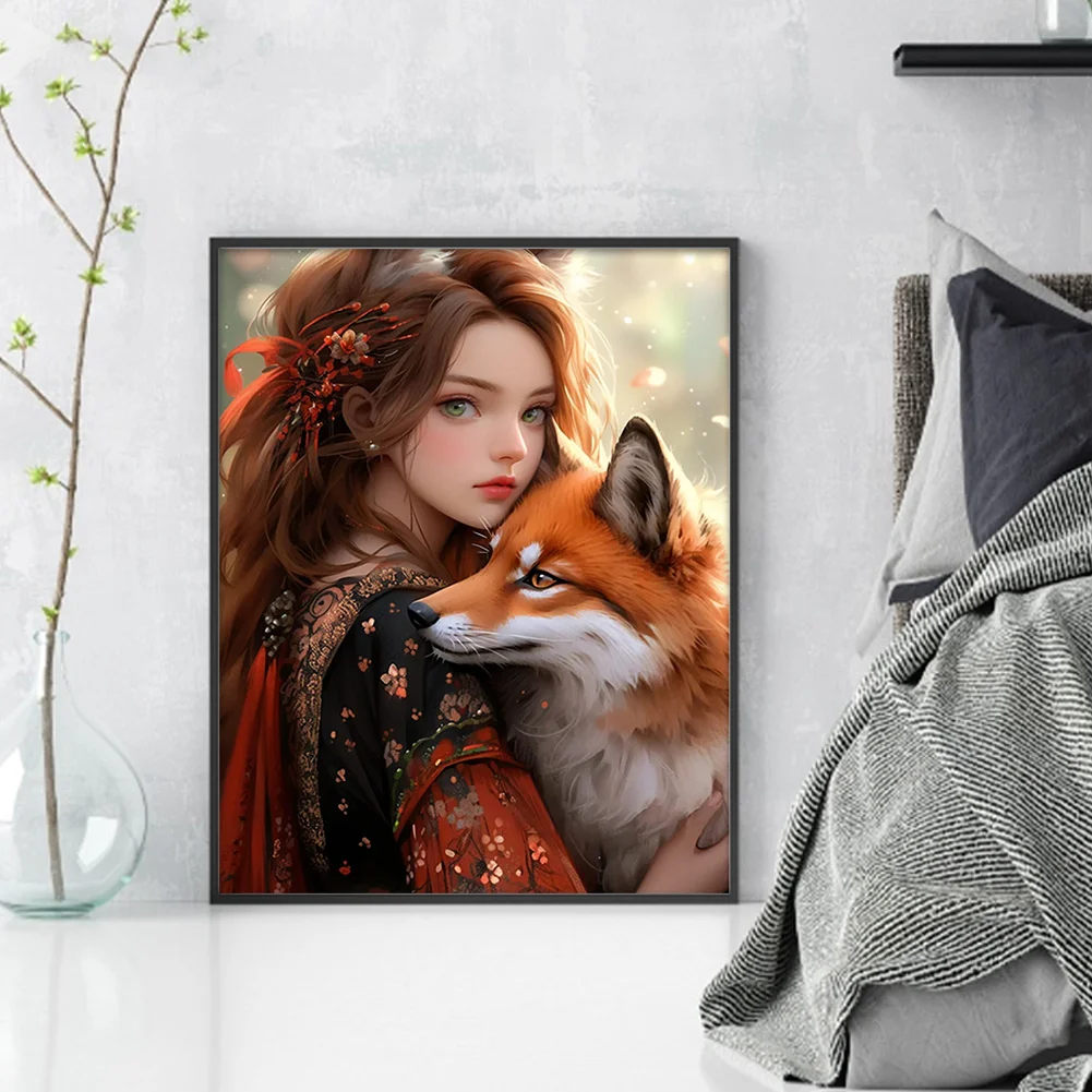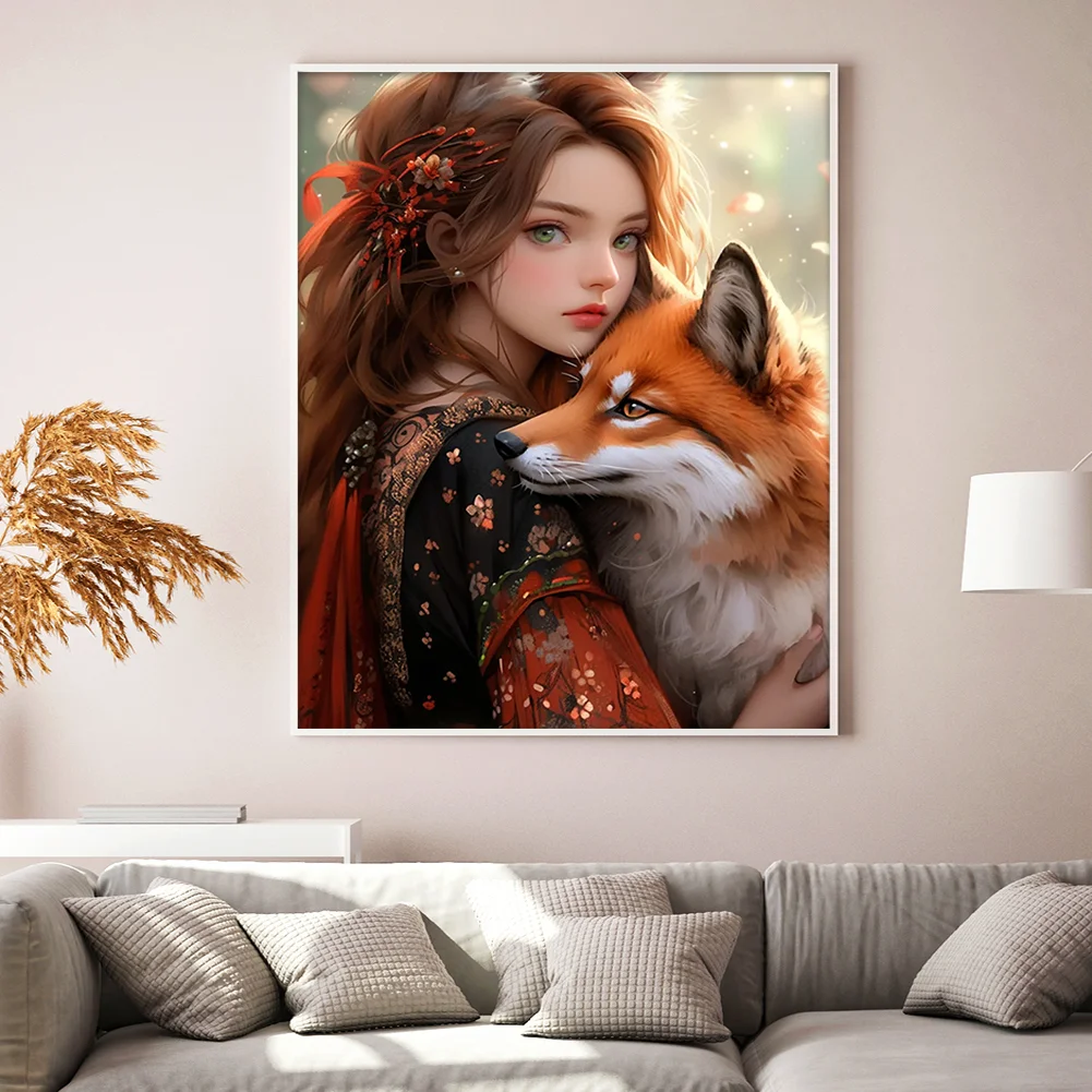 11CT Full Stamped Cross Stitch - Girl and Fox (40*50CM)