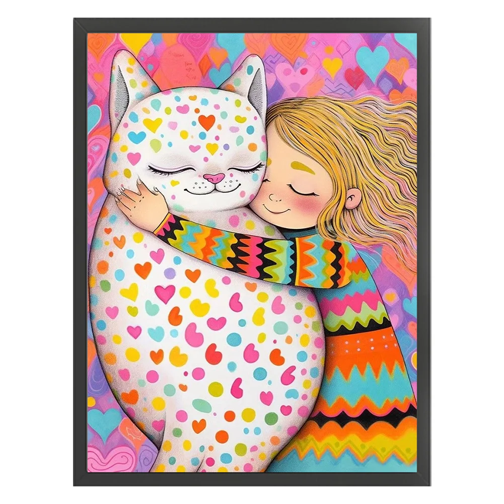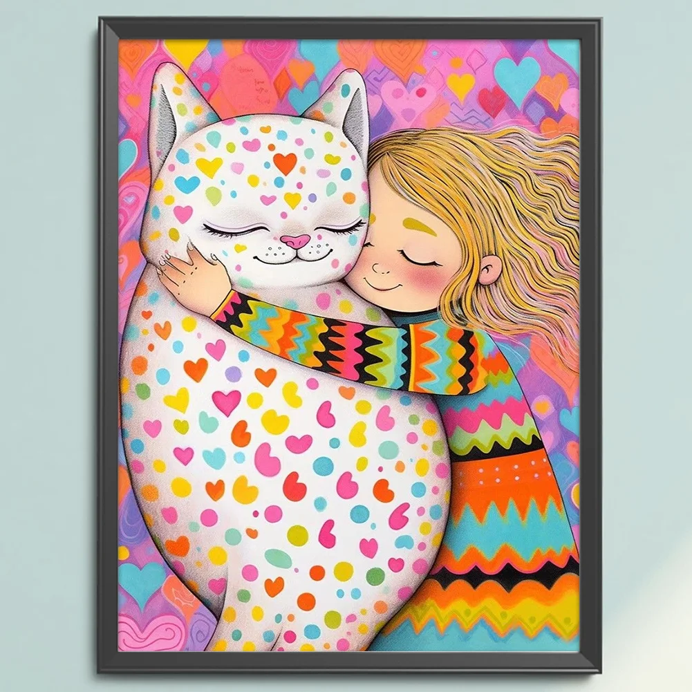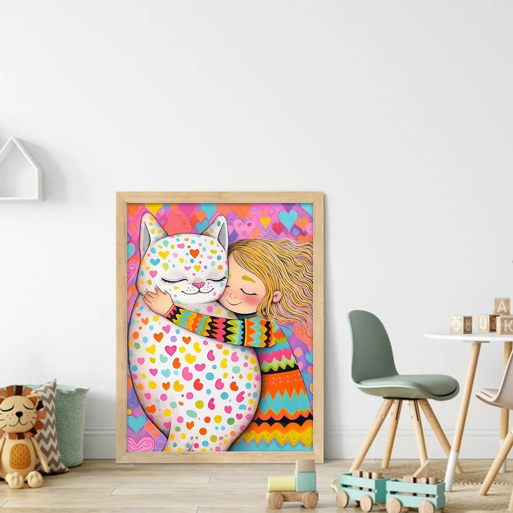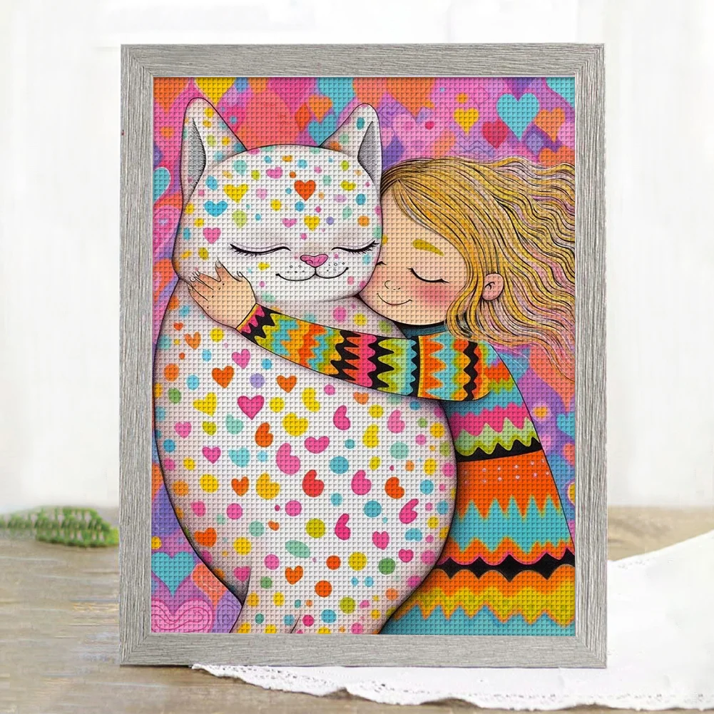 11CT Full Stamped Cross Stitch Kit - Girl with Cat (40*55CM)