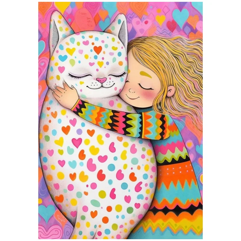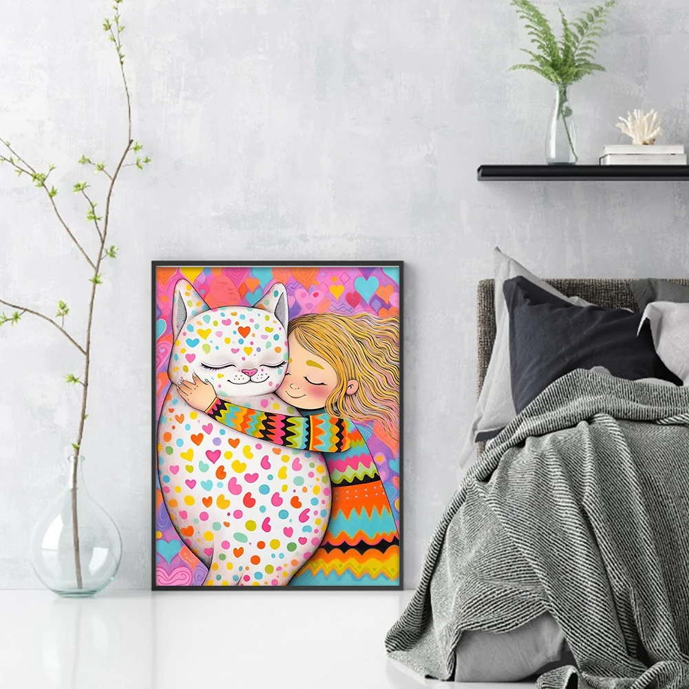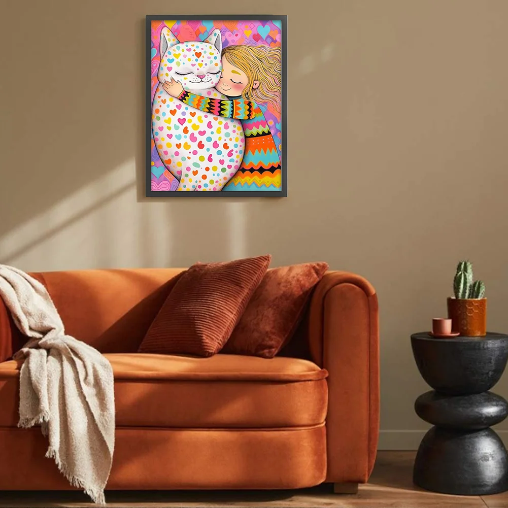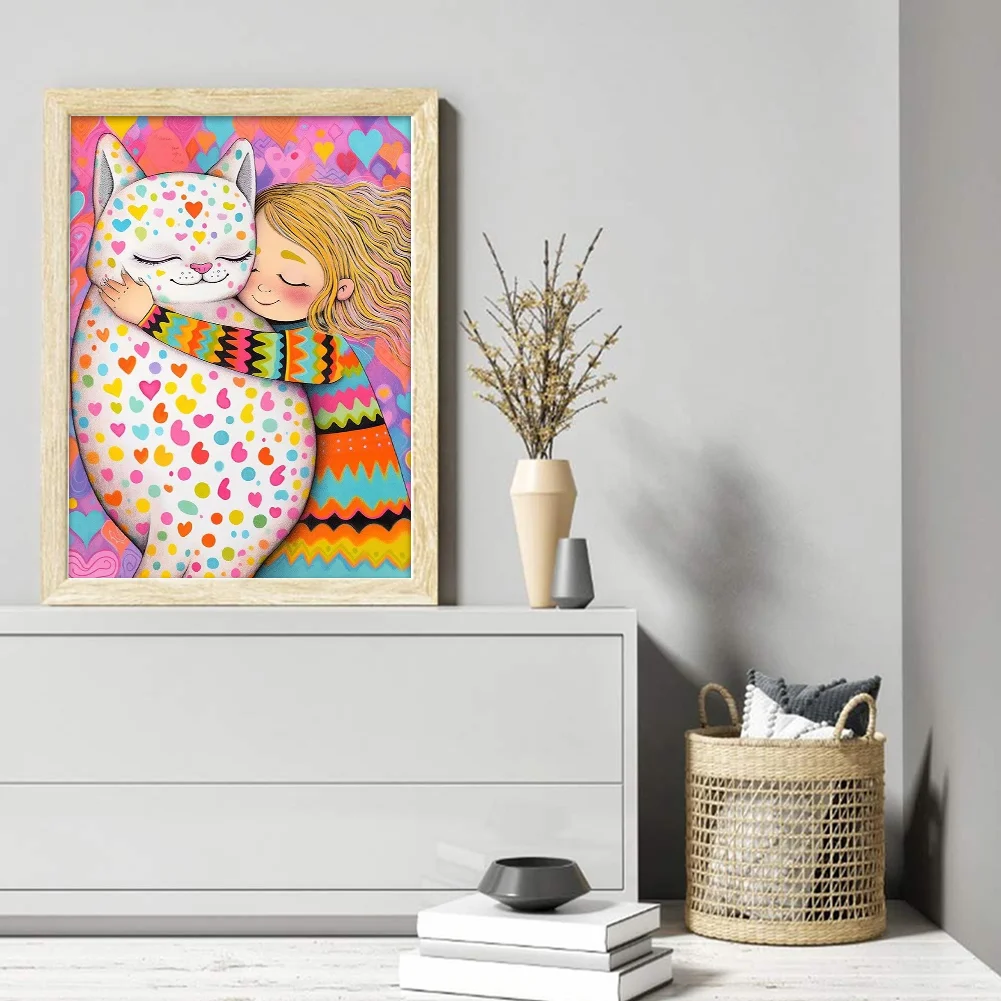 11CT Full Stamped Cross Stitch Kit - Girl with Cat (40*55CM)