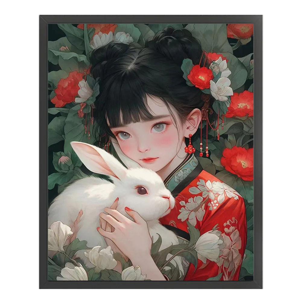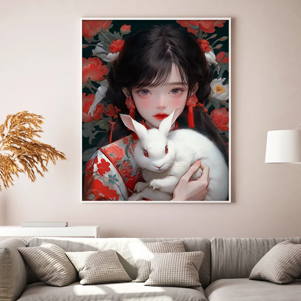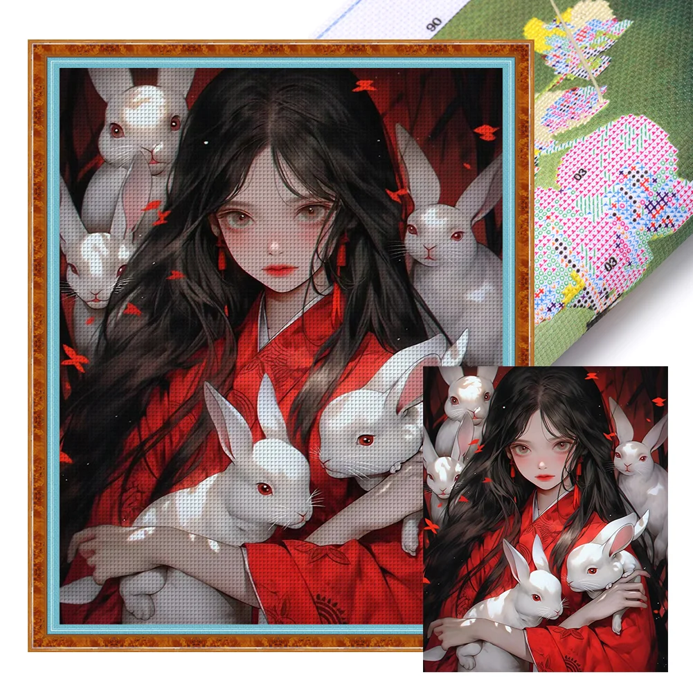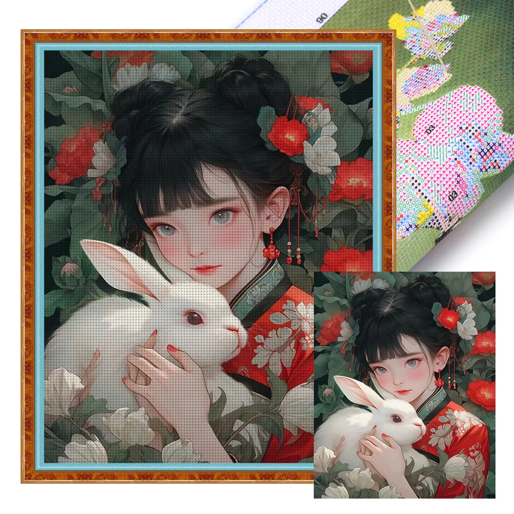 11CT Full Stamped Cross Stitch - Girl with Rabbit (40*50CM)