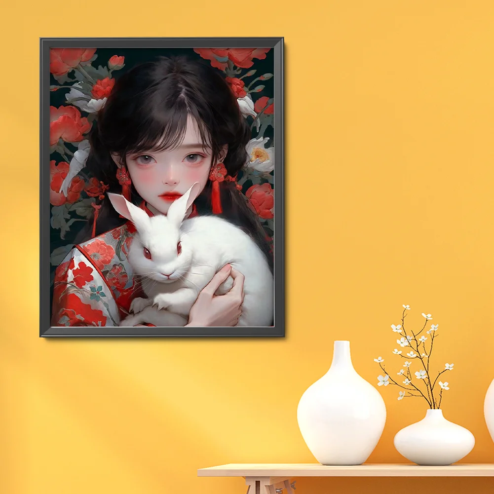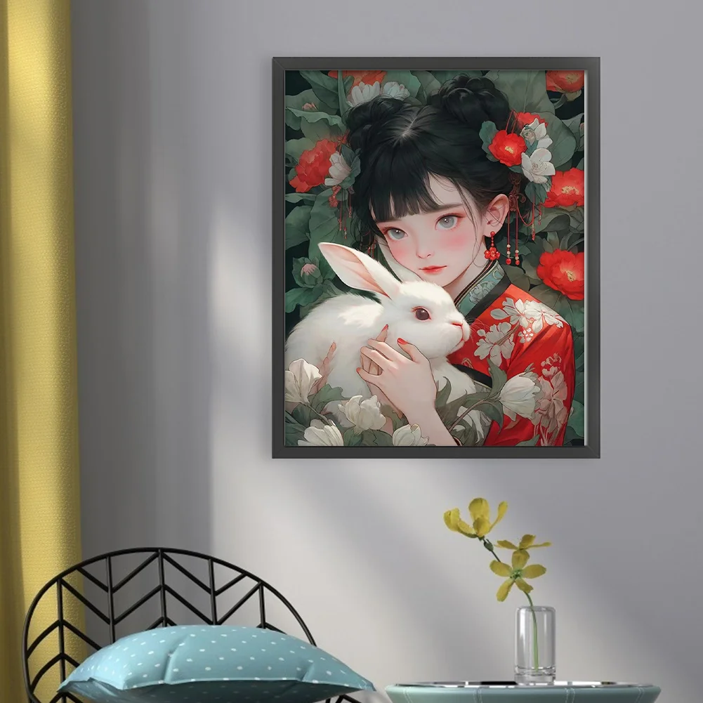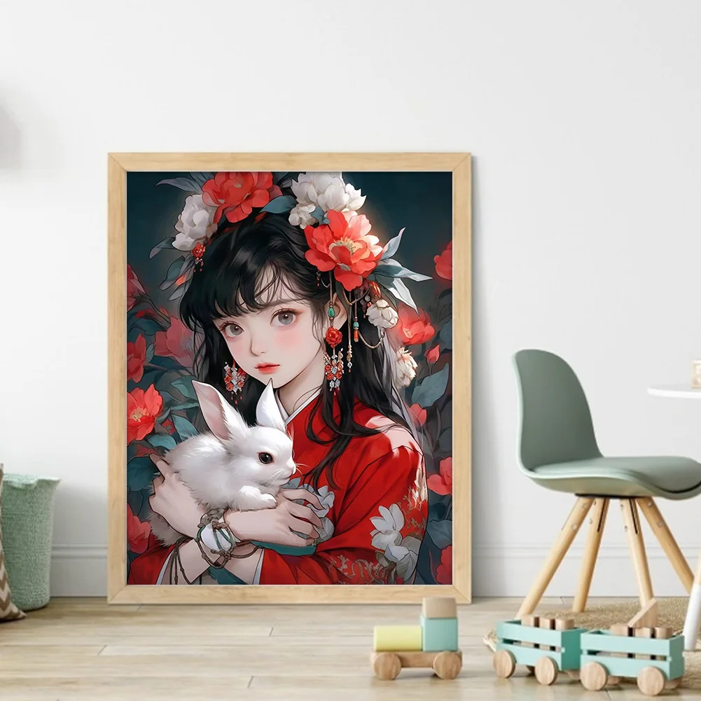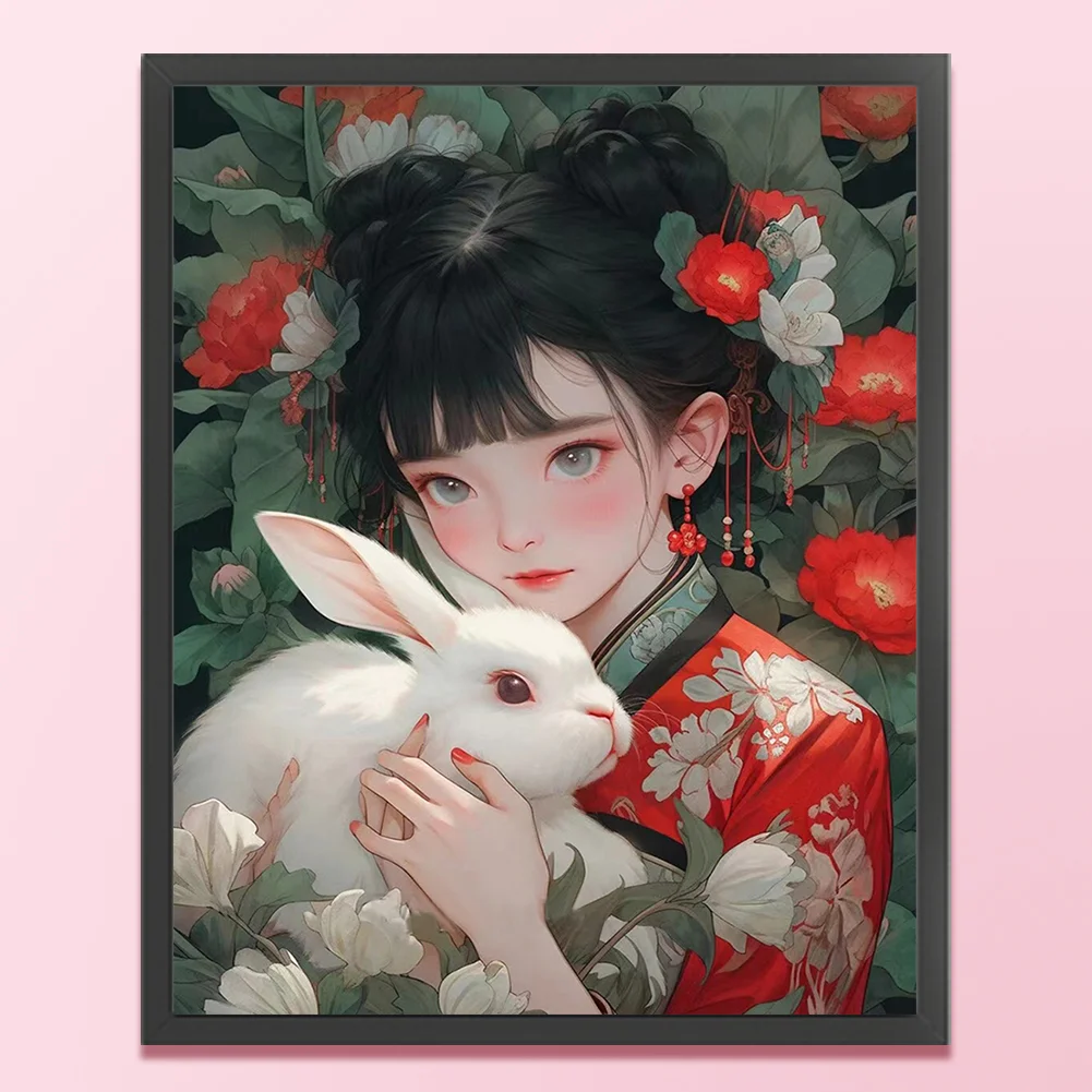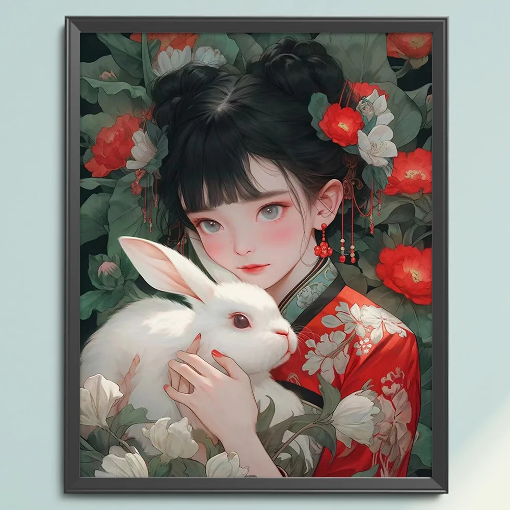 11CT Full Stamped Cross Stitch - Girl with Rabbit (40*50CM)