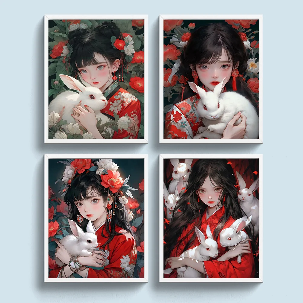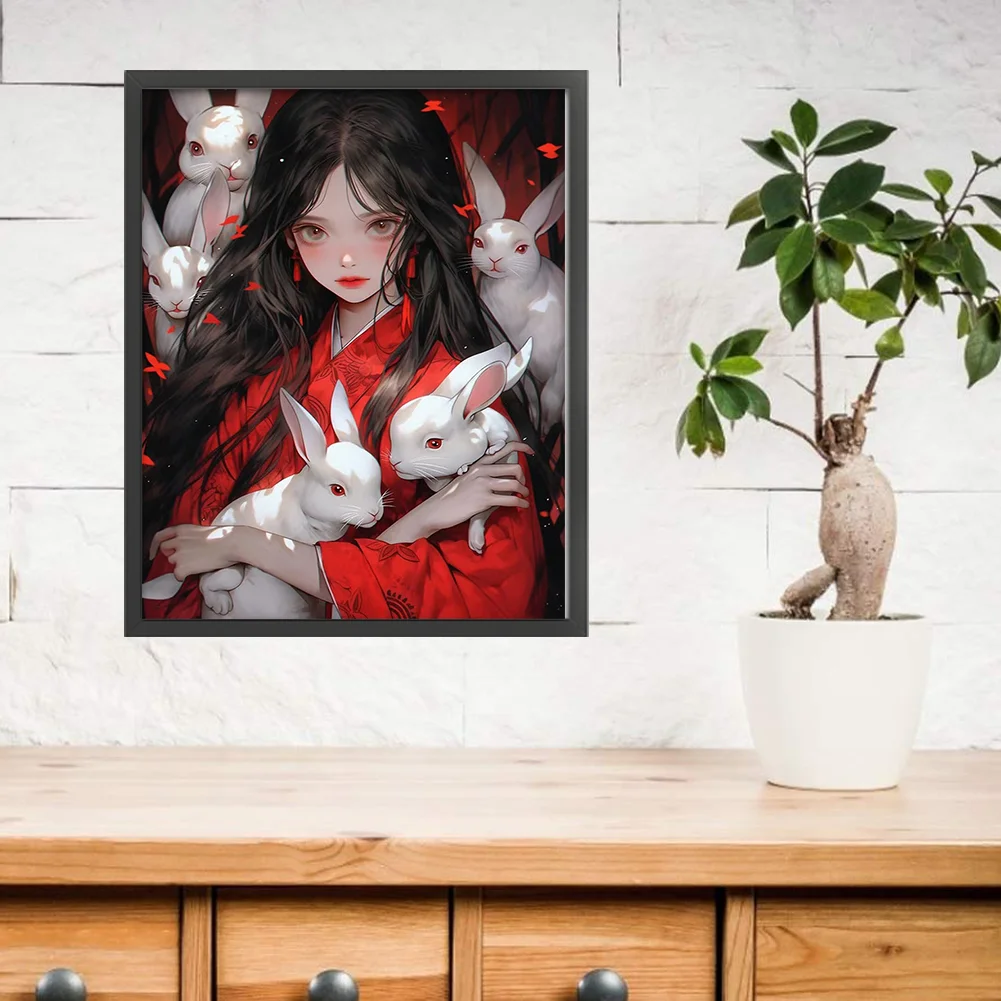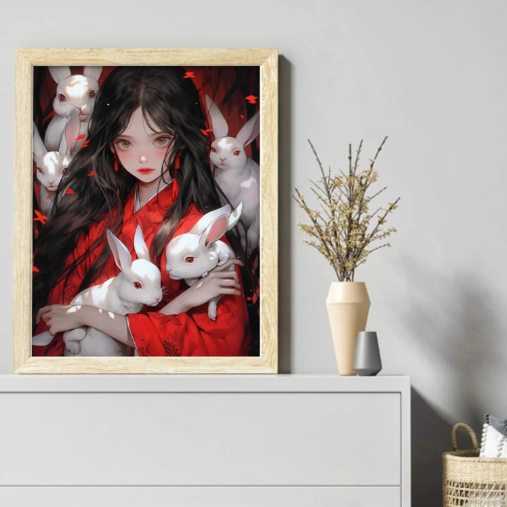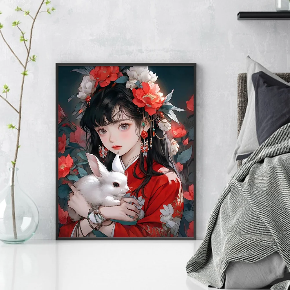 11CT Full Stamped Cross Stitch - Girl with Rabbit (40*50CM)