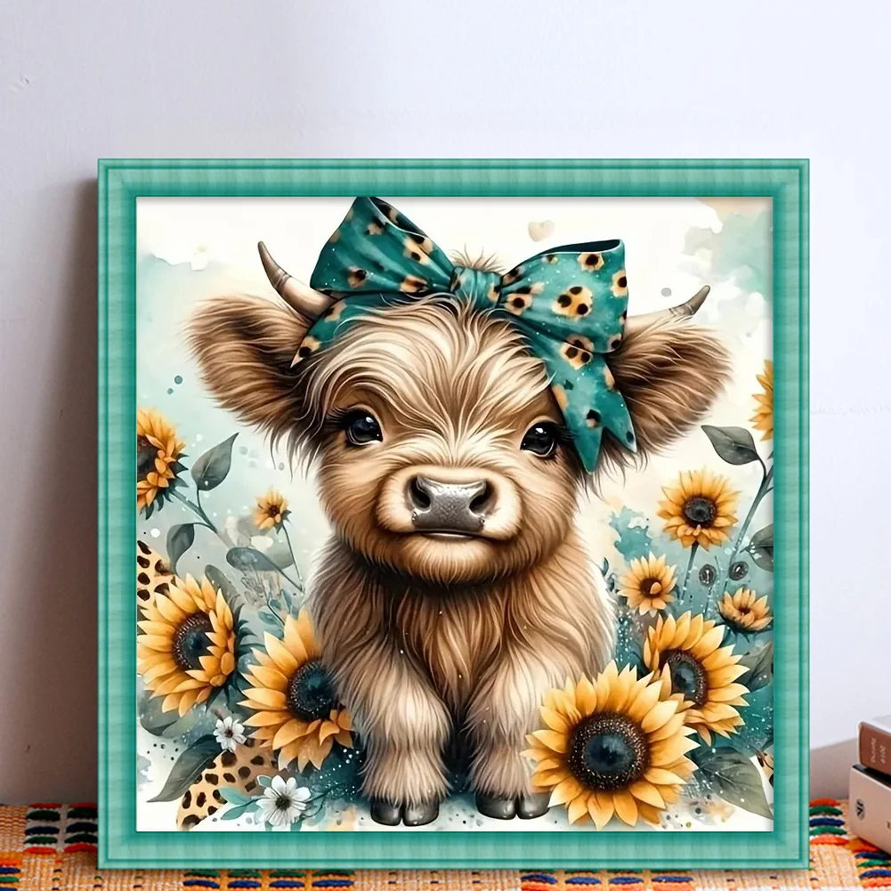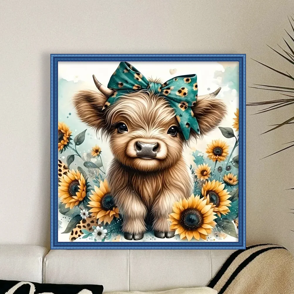 11CT Full Stamped Cross Stitch Kit - Highland Cow (40*40CM)