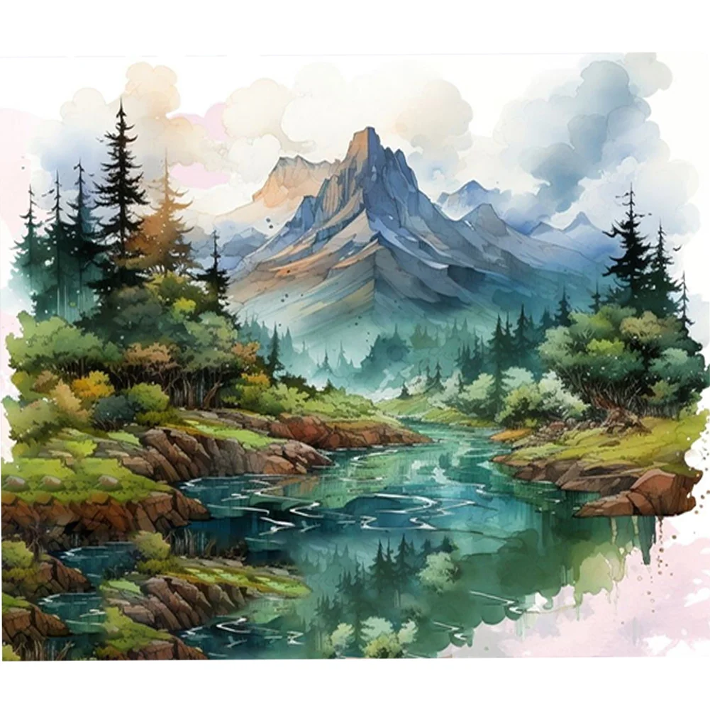 11CT Full Stamped Cross Stitch Kit - Ink Landscape (60*55CM)
