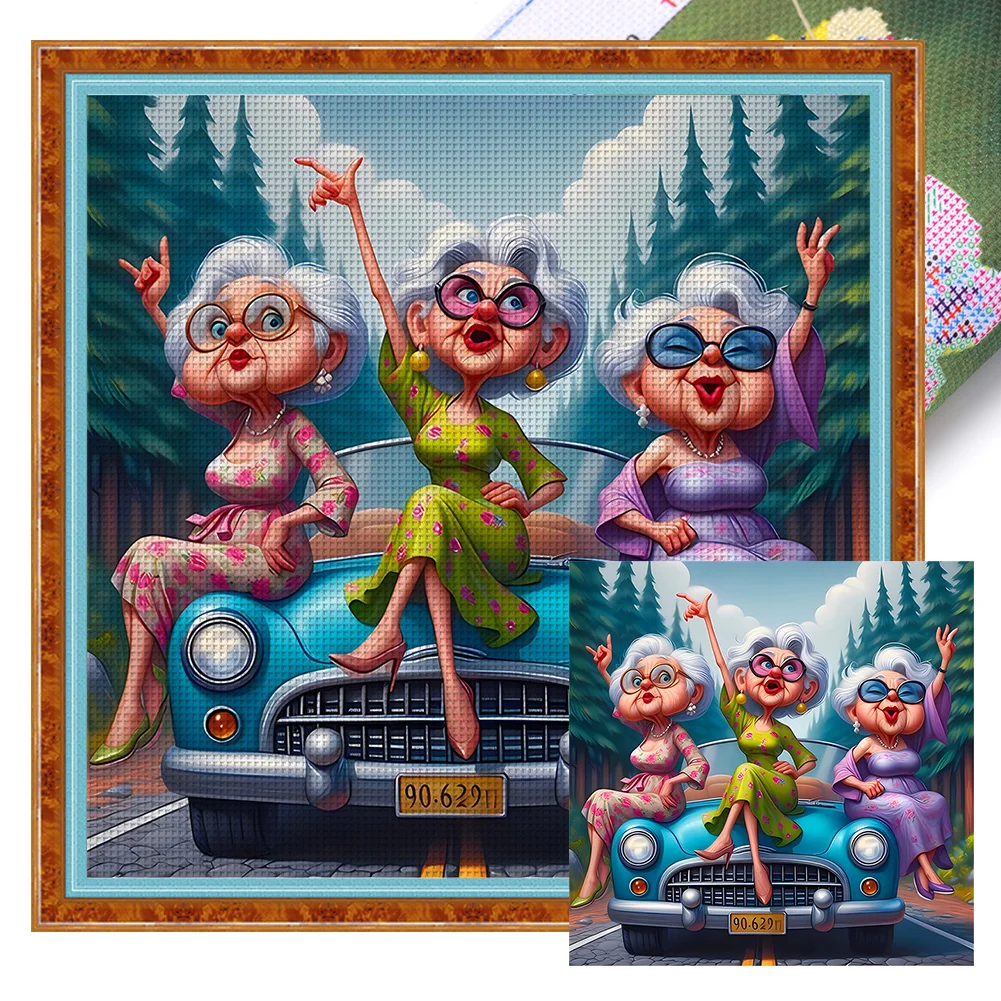 11CT Full Stamped Cross Stitch Kit - Old Lady (40*40CM)