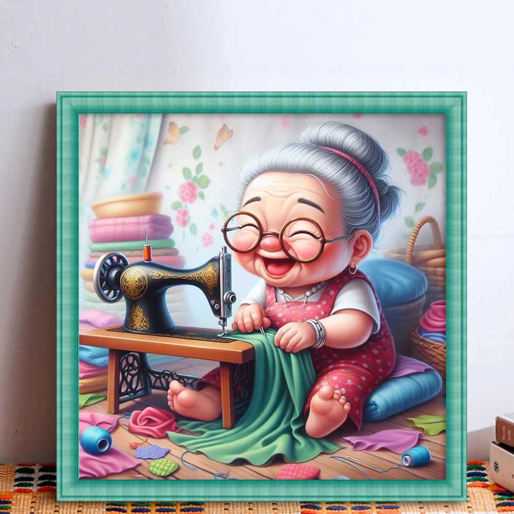 11CT Full Stamped Cross Stitch Kit - Old lady (45*45CM)