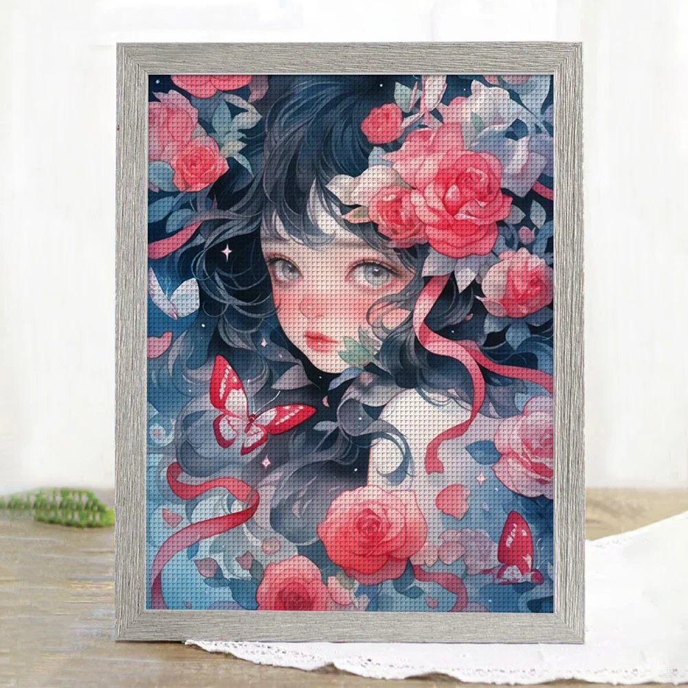 11CT Full Stamped Cross Stitch Kit - Rose Girl (40*56CM)