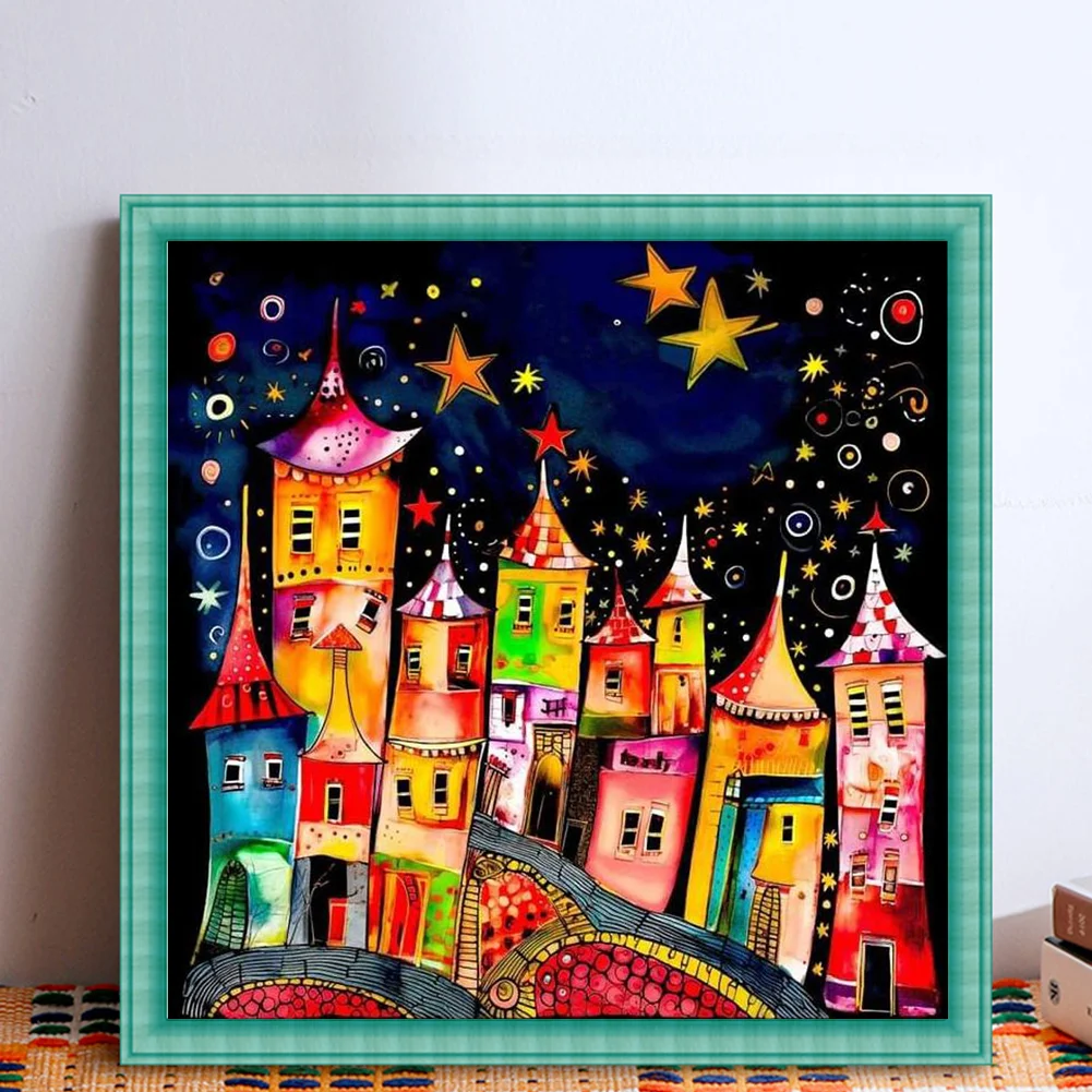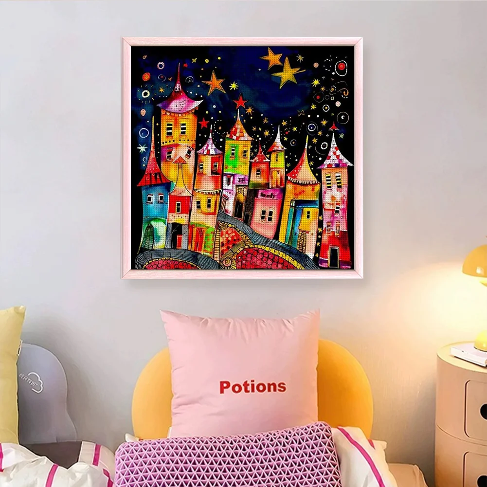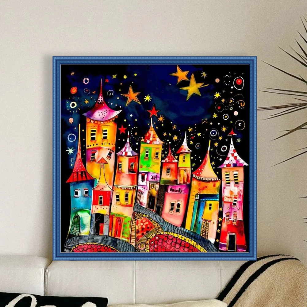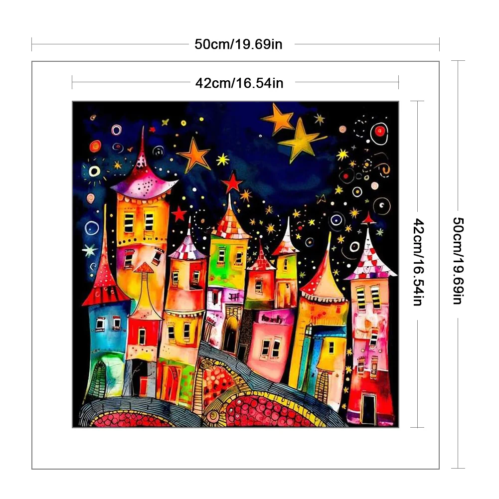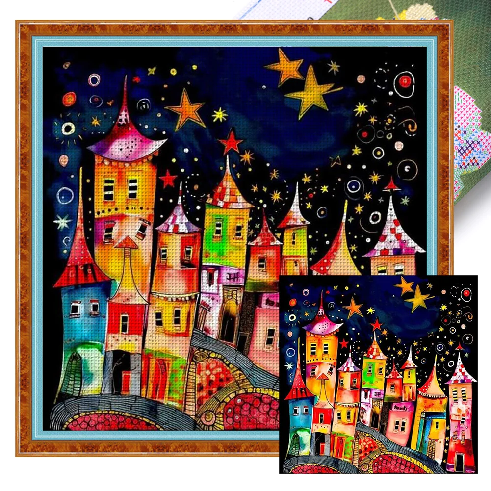 11CT Full Stamped Cross Stitch Kit - Colorful Town (50*50CM)