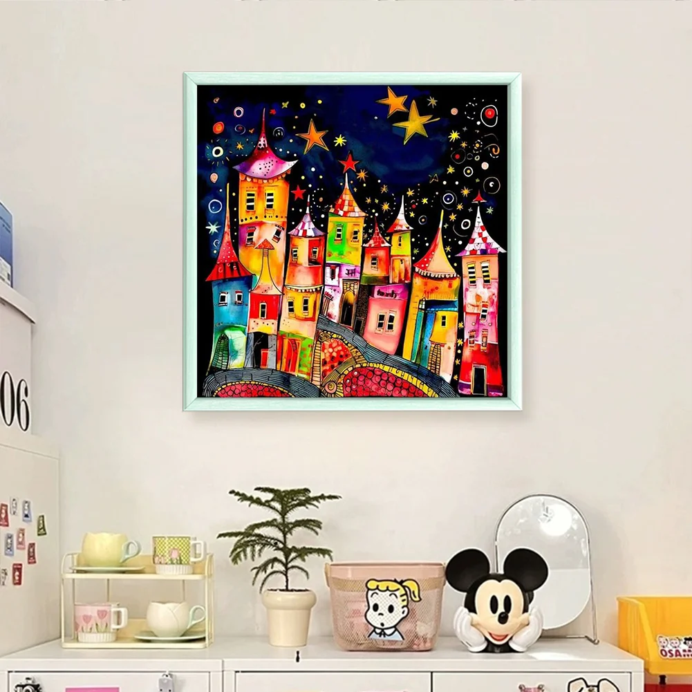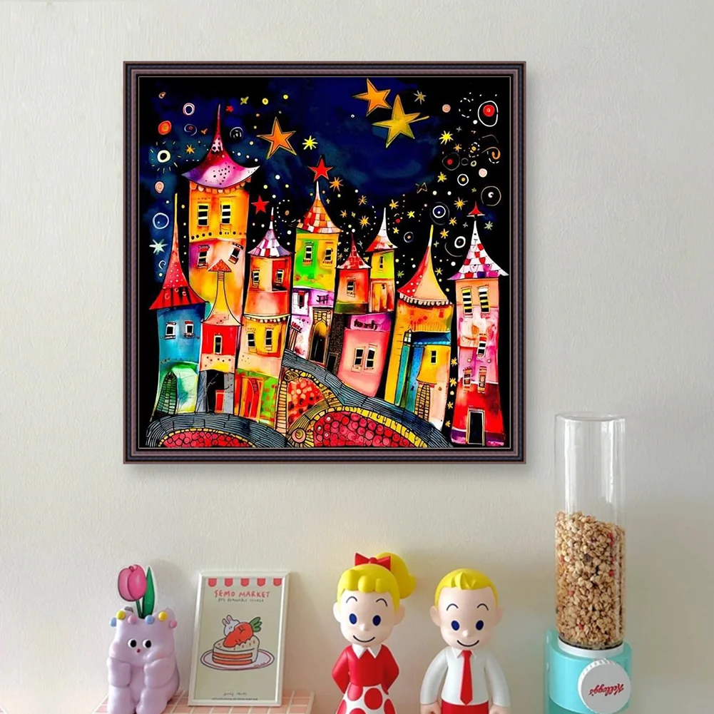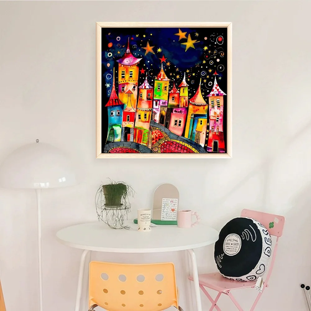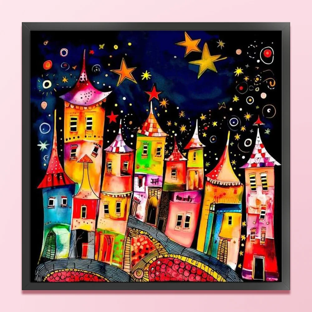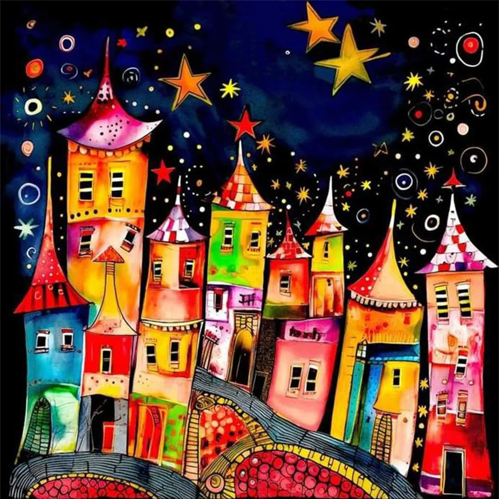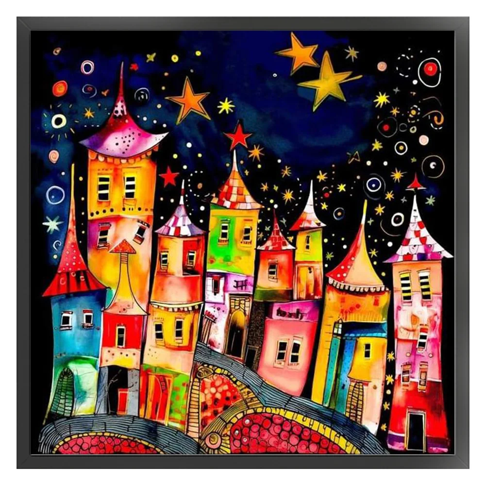 11CT Full Stamped Cross Stitch Kit - Colorful Town (50*50CM)