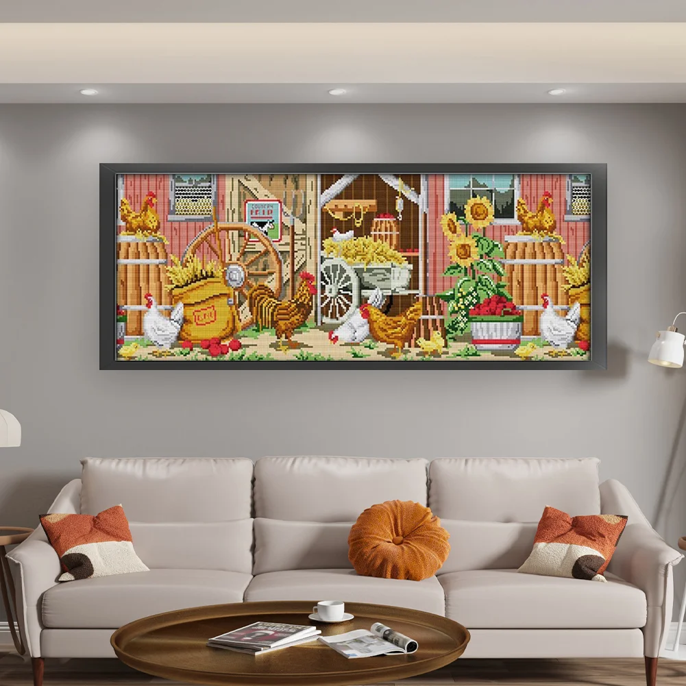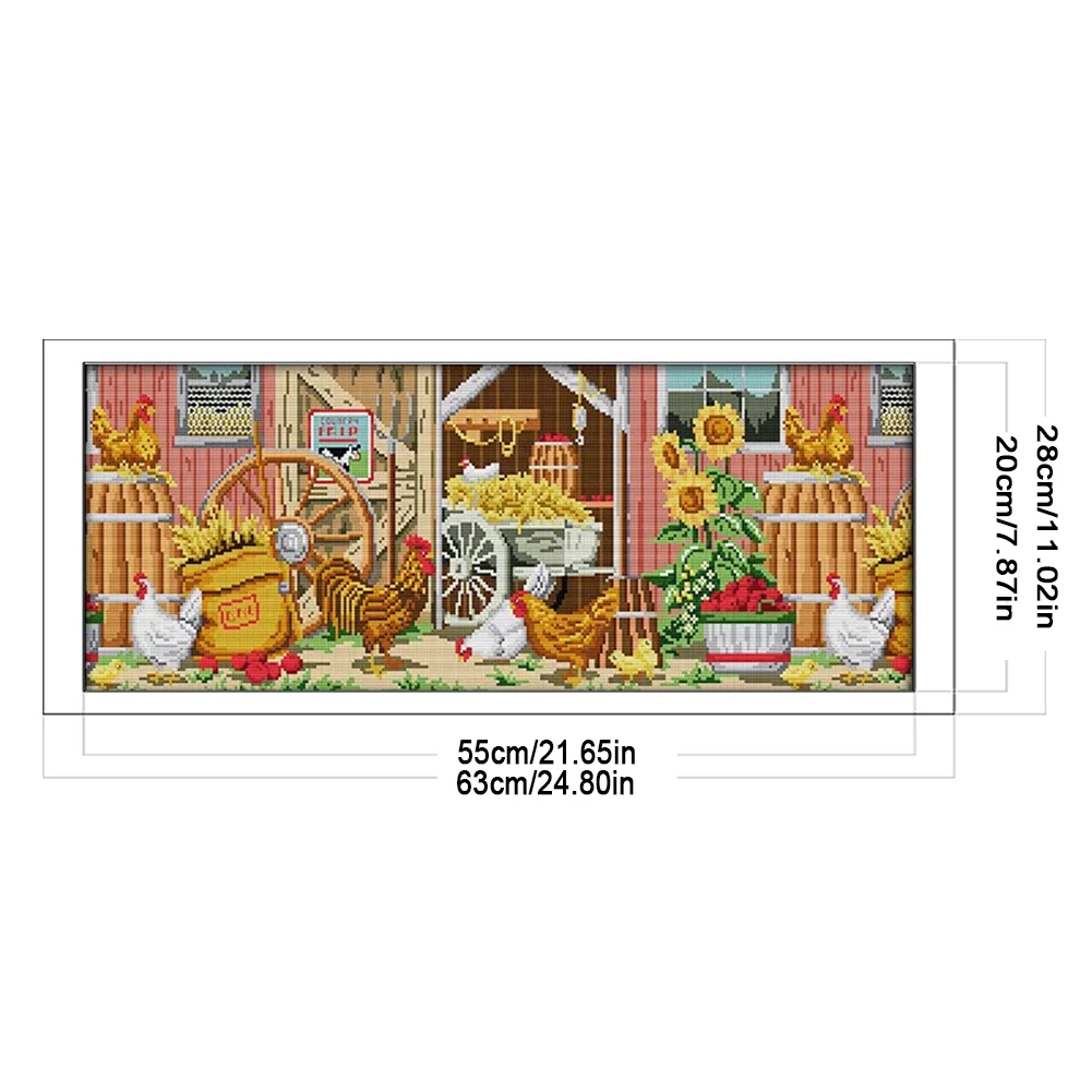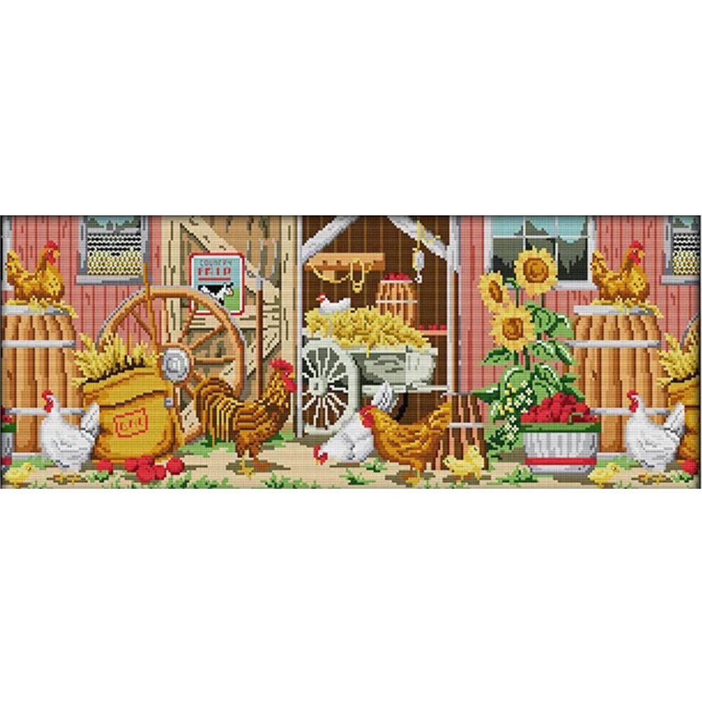 [JOY SUNDAY] -14CT Full Stamped Cross Stitch Kit - Farmhouse View (63*28CM)