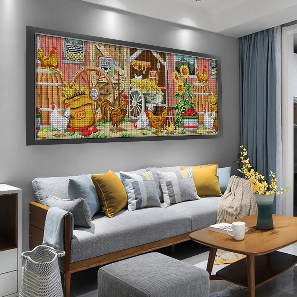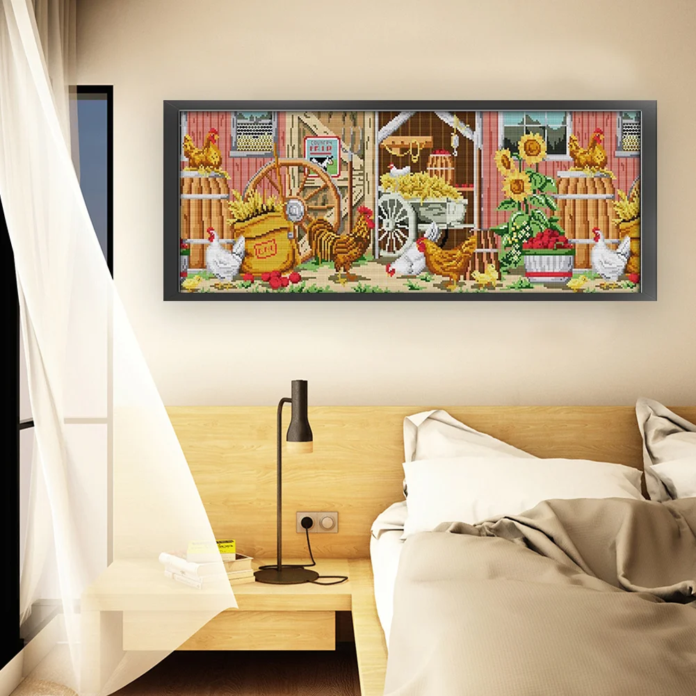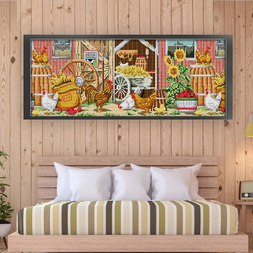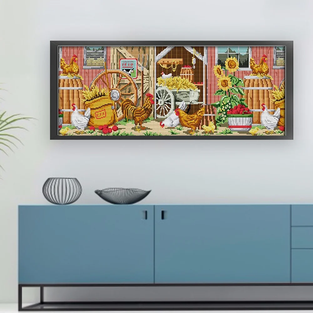 [JOY SUNDAY] -14CT Full Stamped Cross Stitch Kit - Farmhouse View (63*28CM)