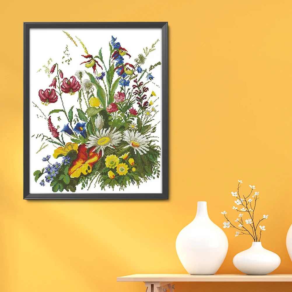 [JOY SUNDAY] -14CT Full Stamped Cross Stitch Kit - Flowers Cartoon (46*55CM)