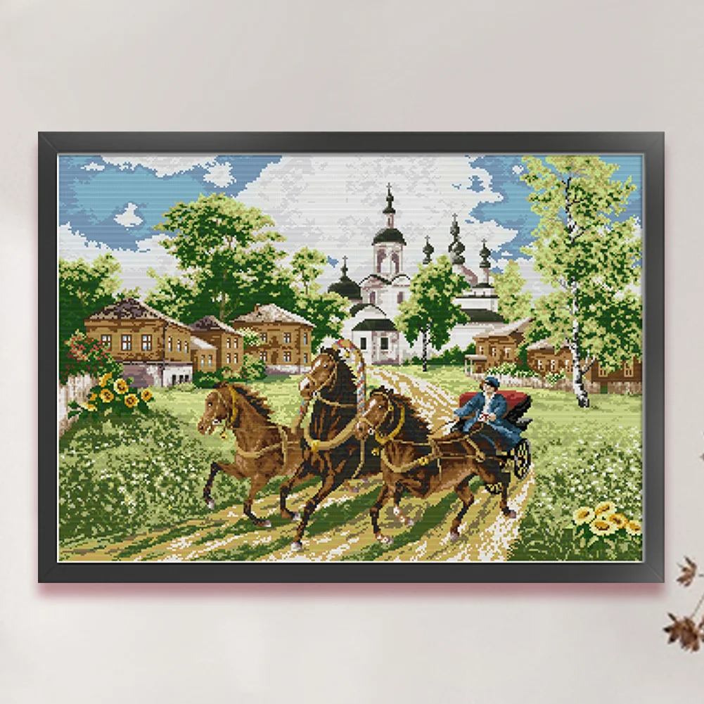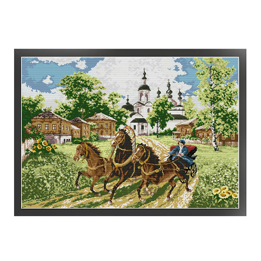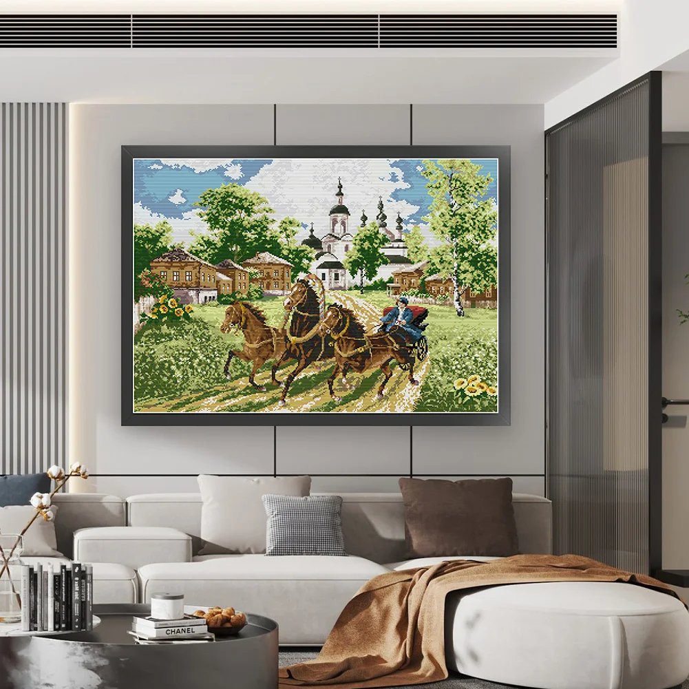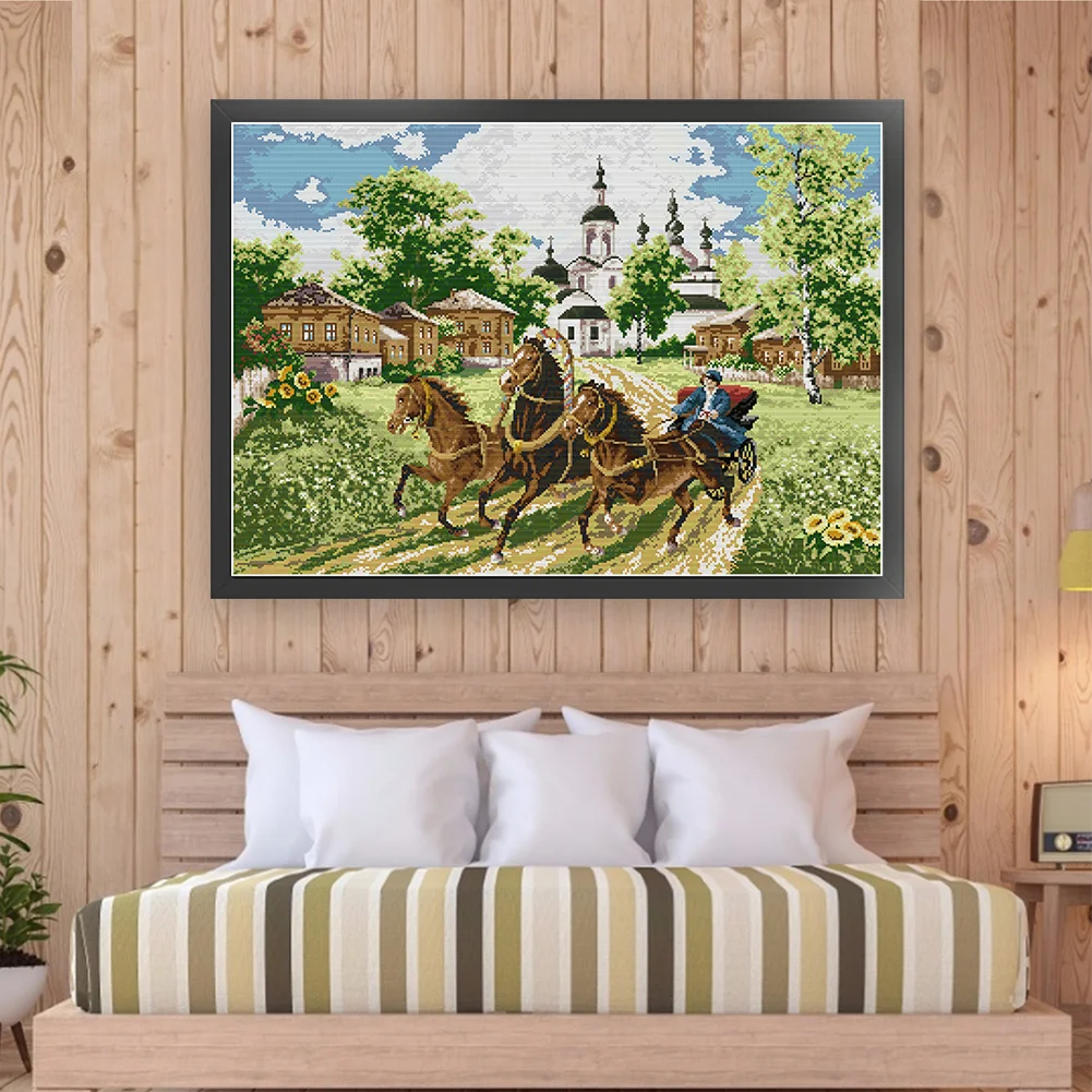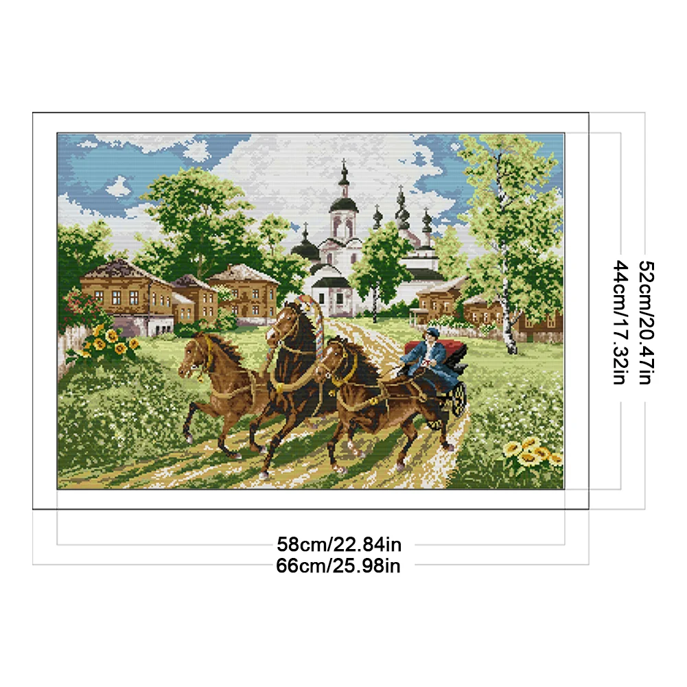 [JOY SUNDAY] -14CT Full Stamped Cross Stitch Kit - Horses (66*52CM)