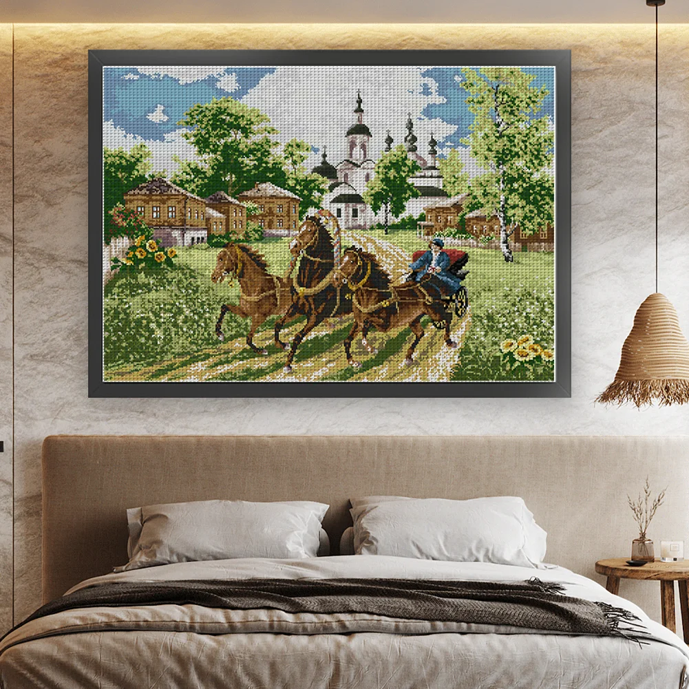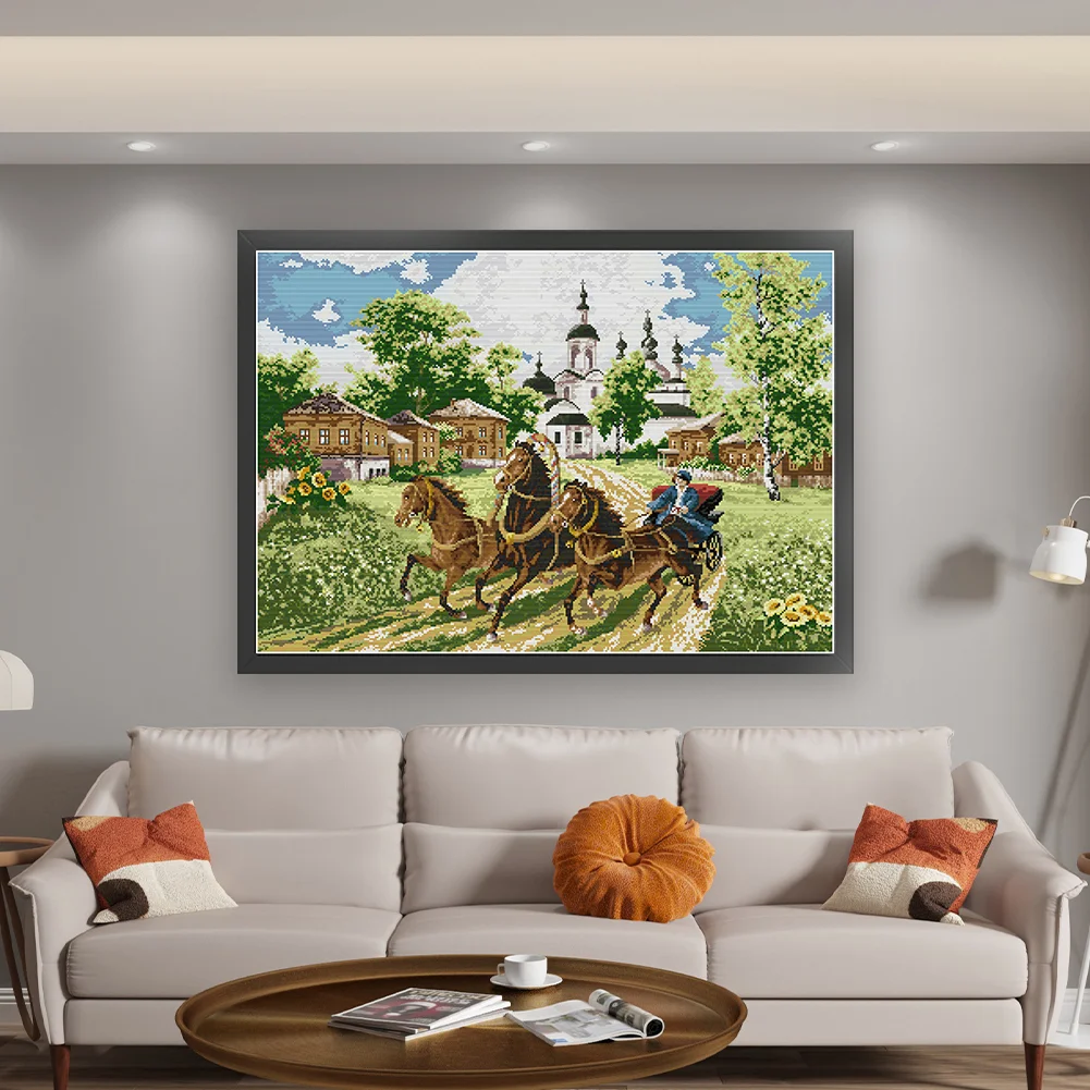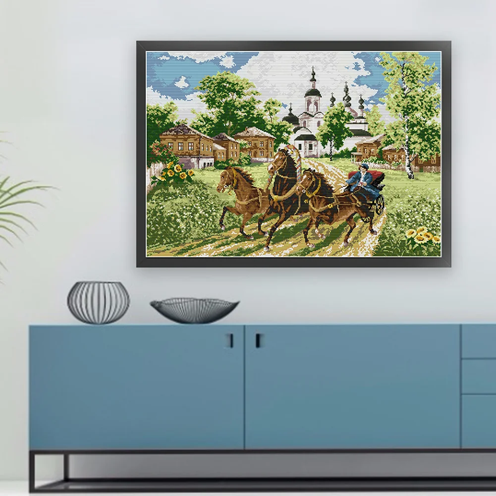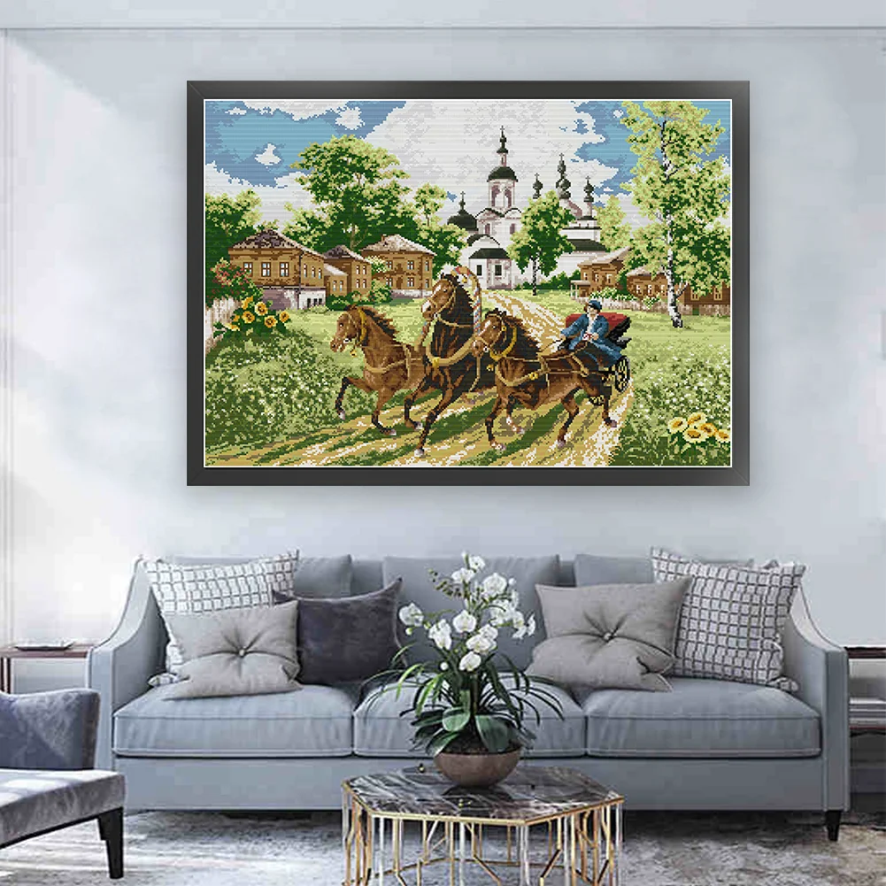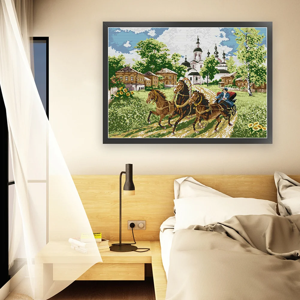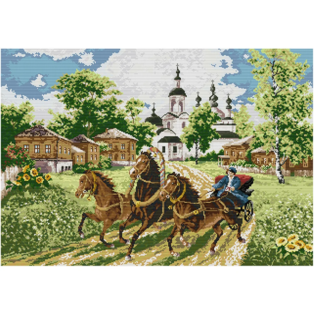 [JOY SUNDAY] -14CT Full Stamped Cross Stitch Kit - Horses (66*52CM)