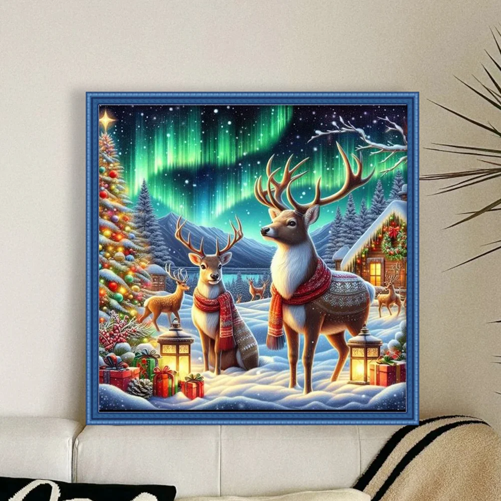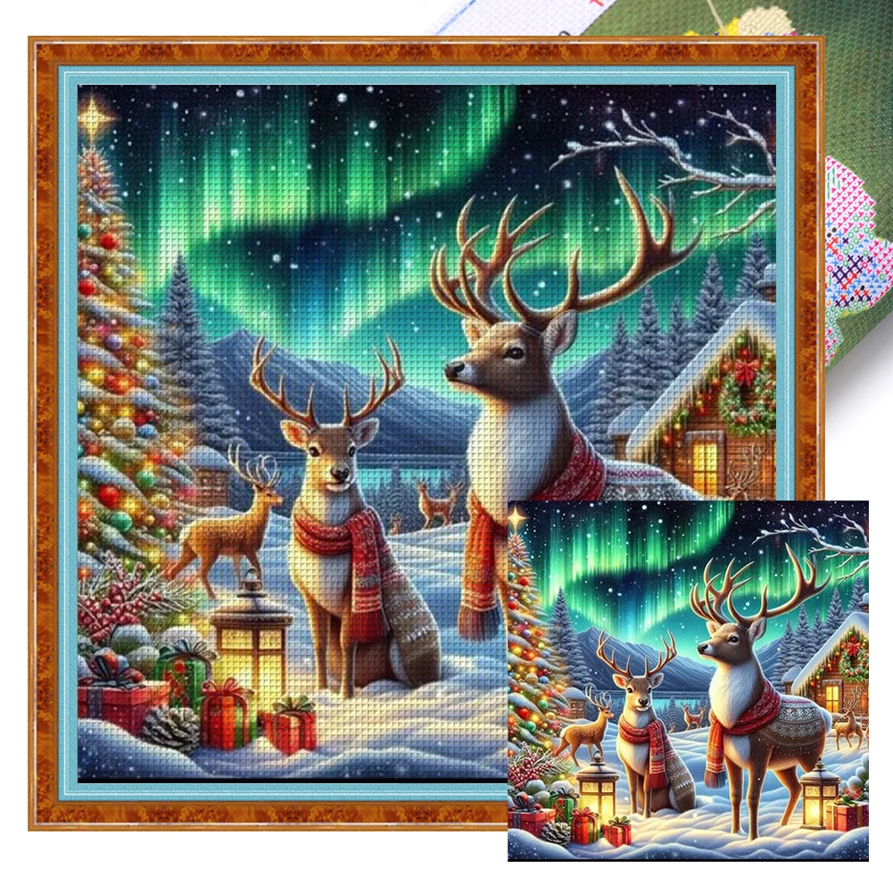 14CT Full Stamped Cross Stitch Kit - Aurora Elk (40*40CM)