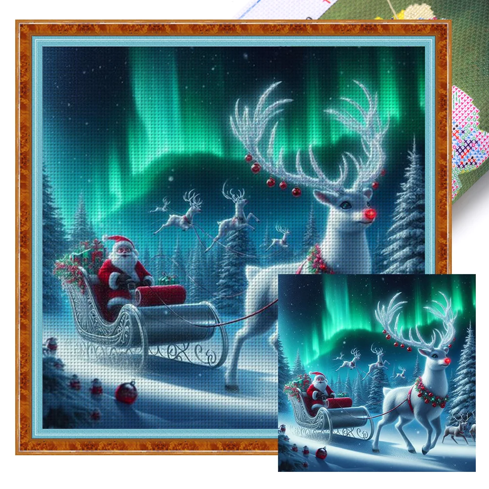 14CT Full Stamped Cross Stitch Kit - Aurora Elk (40*40CM)