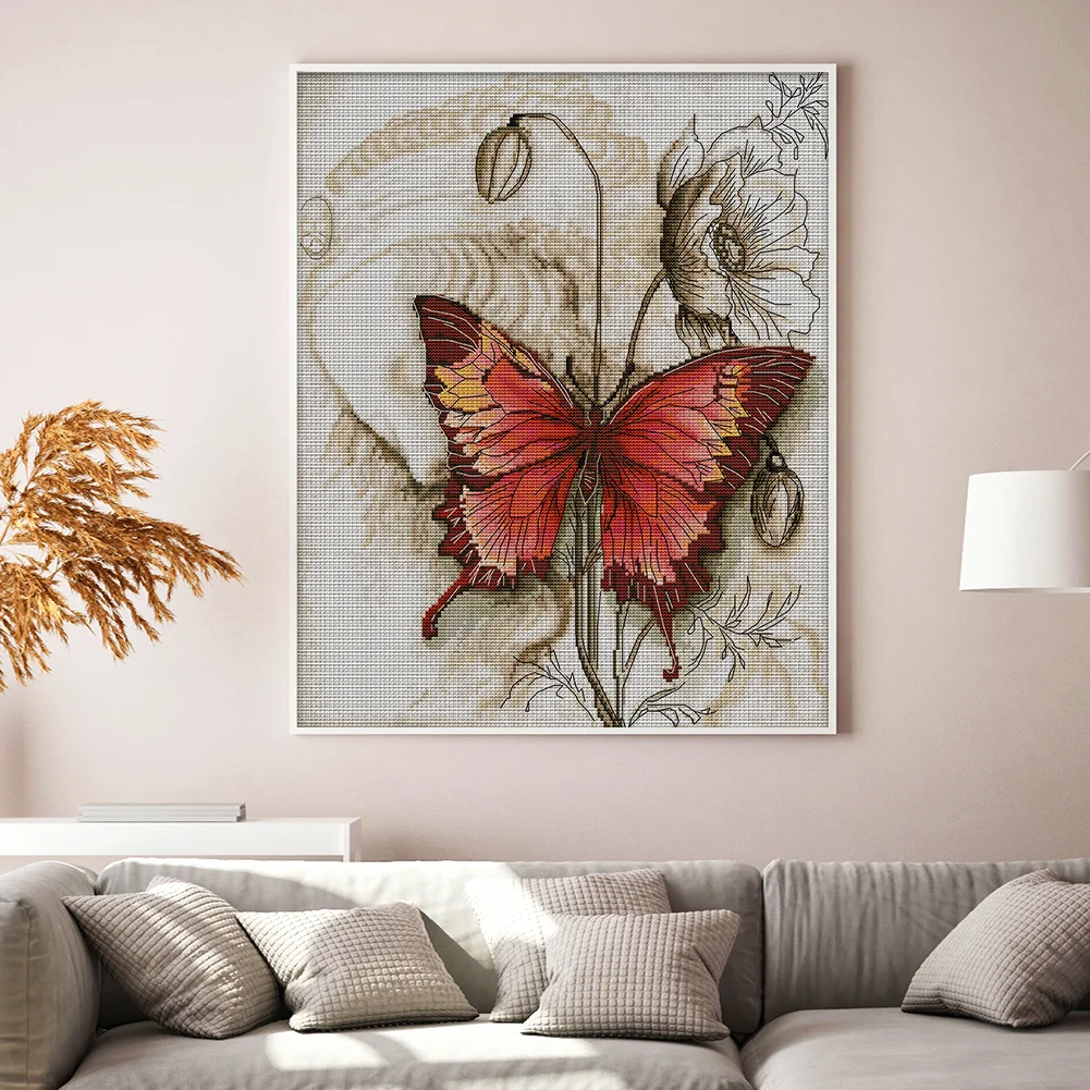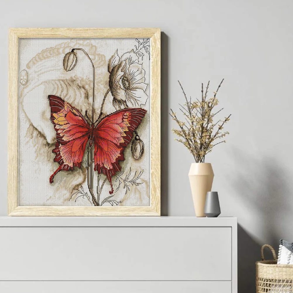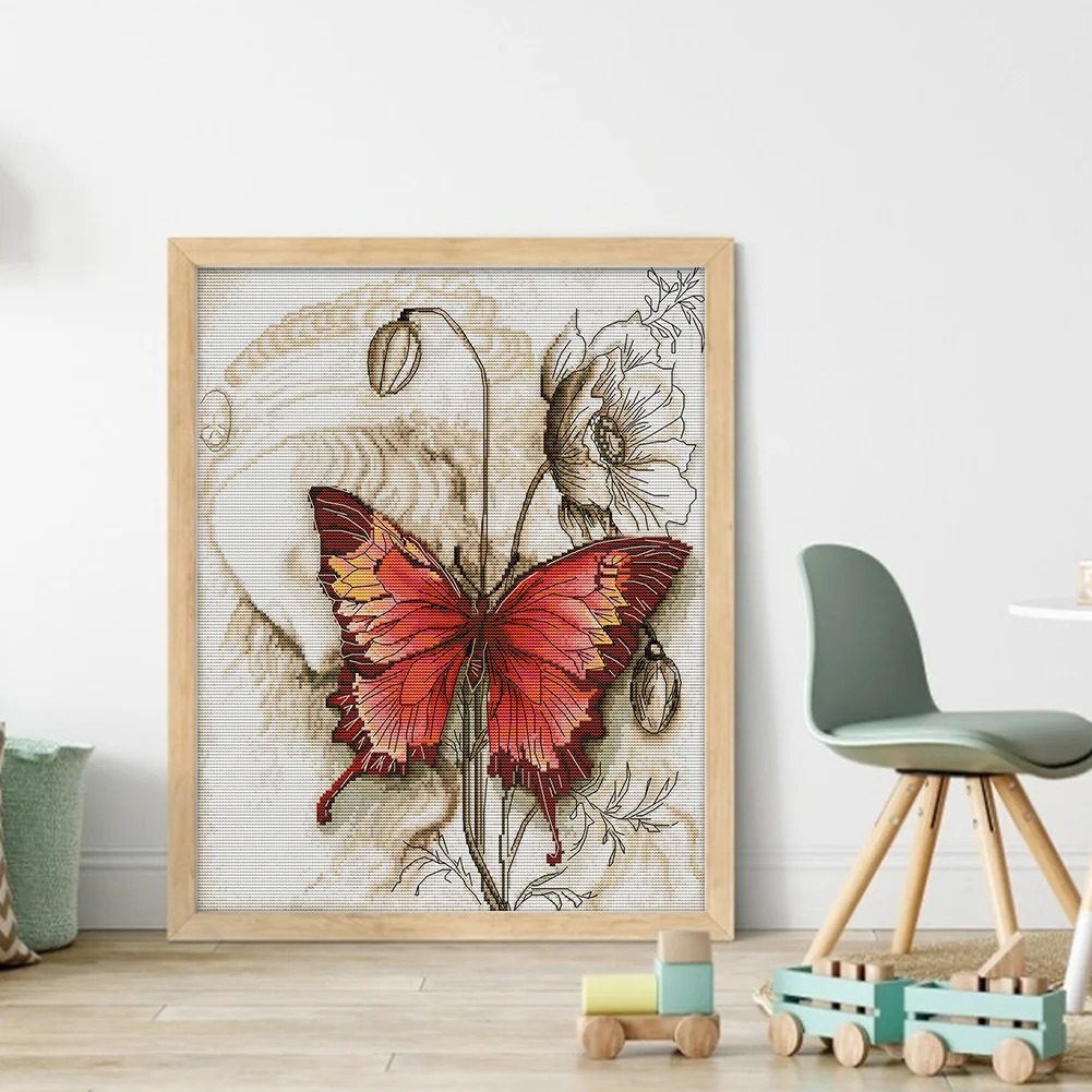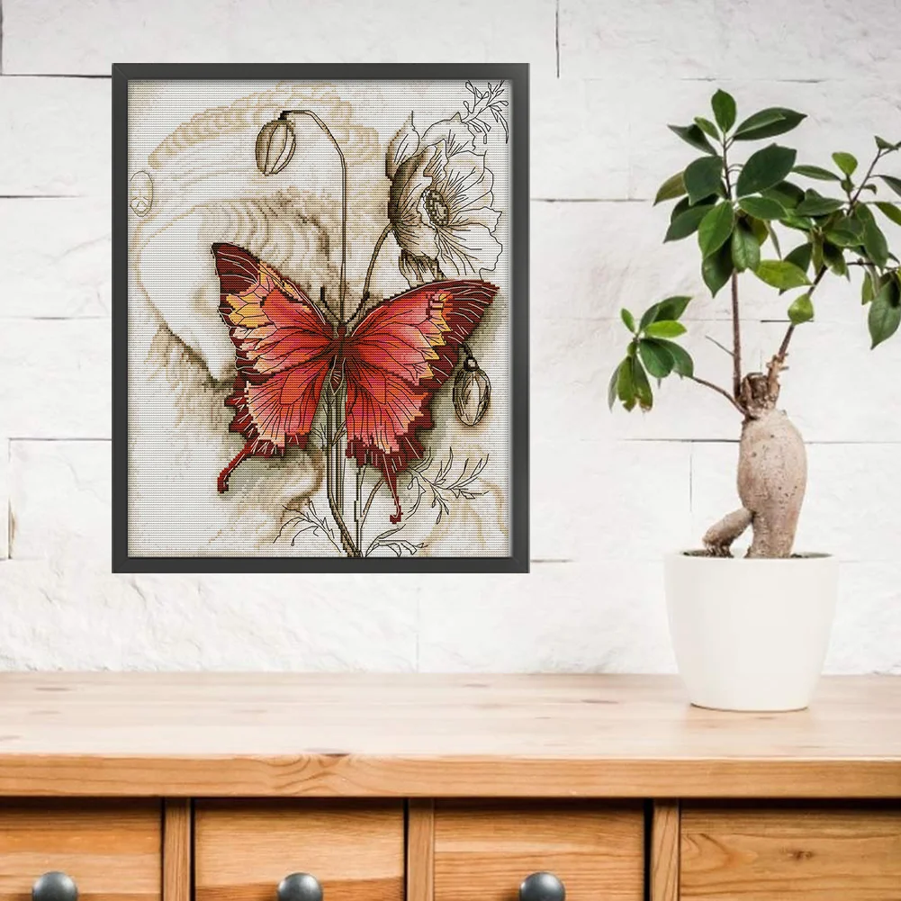 [JOY SUNDAY] -14CT Full Stamped Cross Stitch Kit - Butterfly (38*45CM)