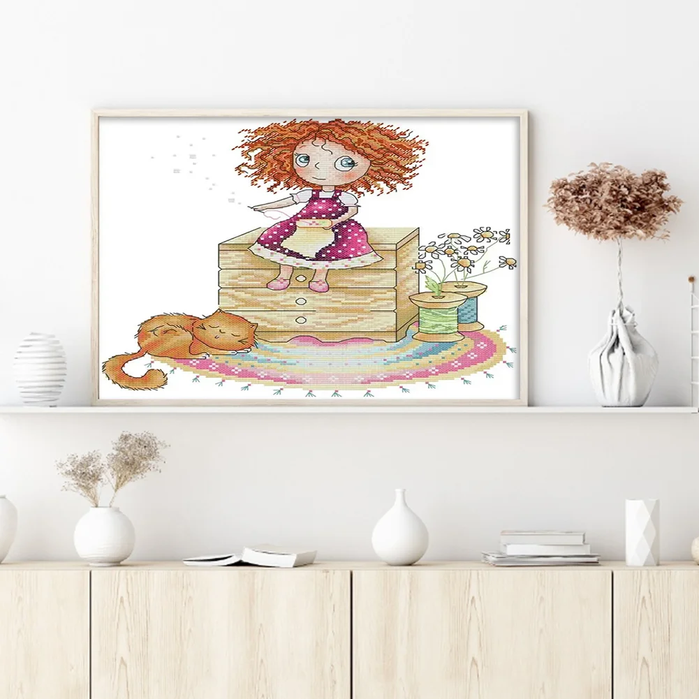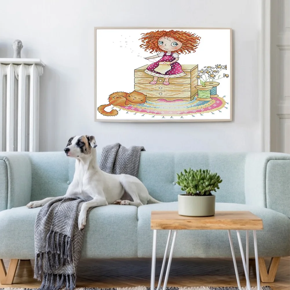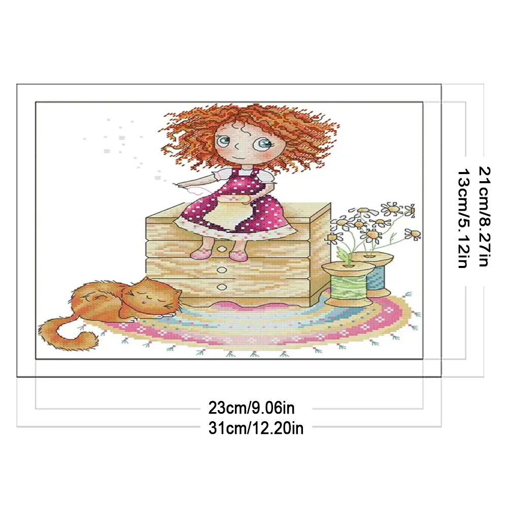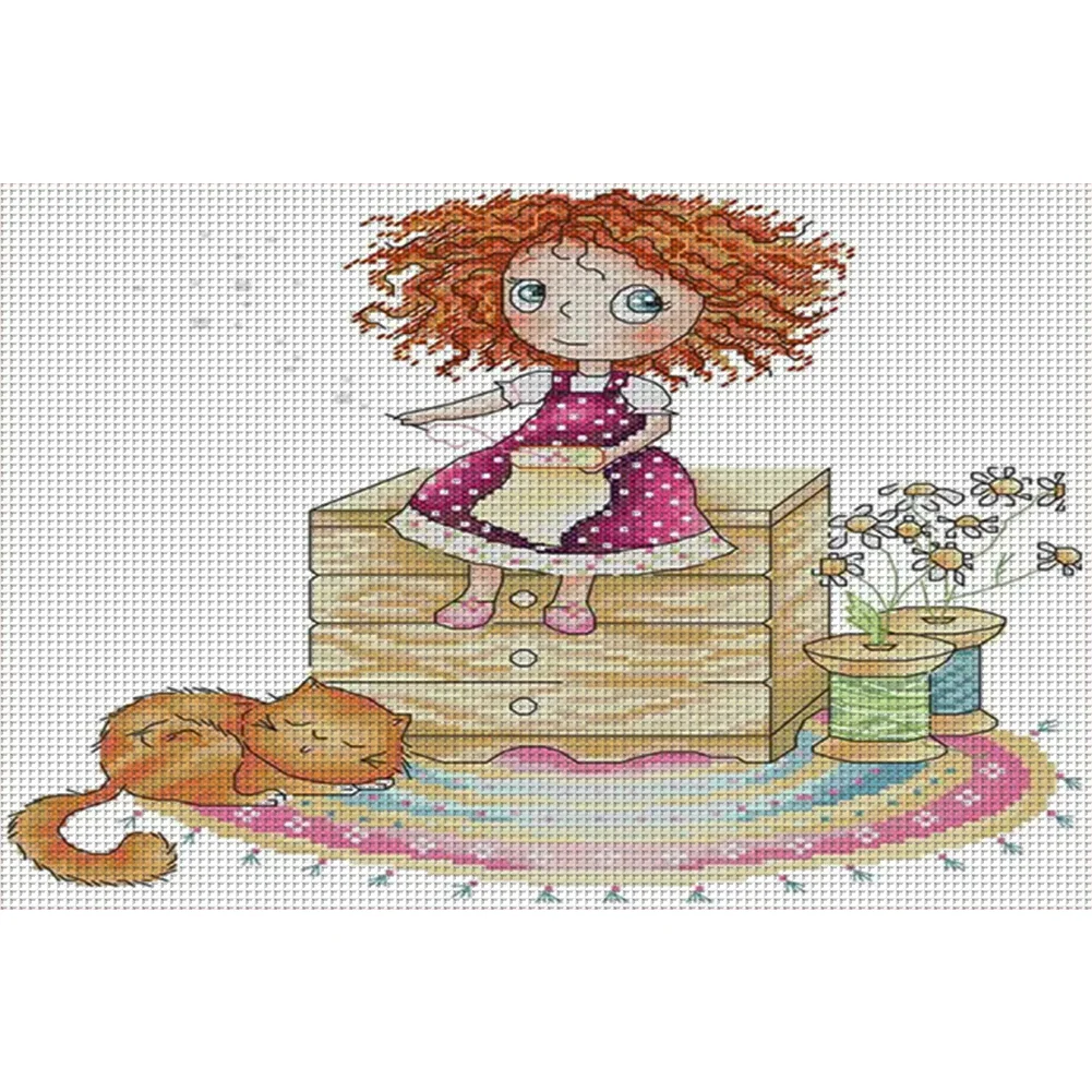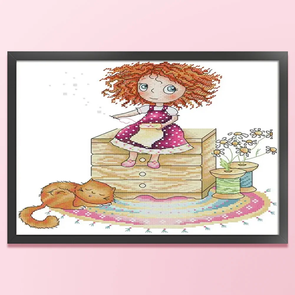 [JOY SUNDAY] -14CT Full Stamped Cross Stitch Kit - Girl (31*21CM)