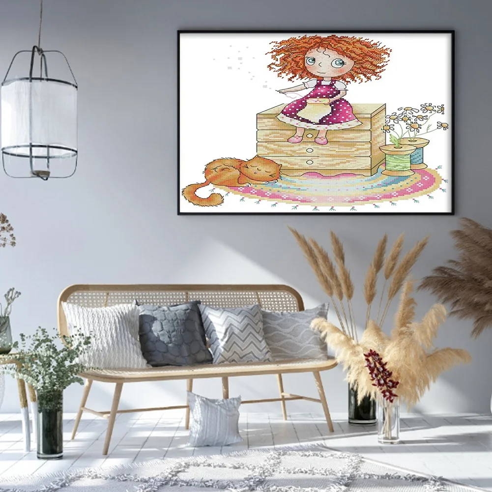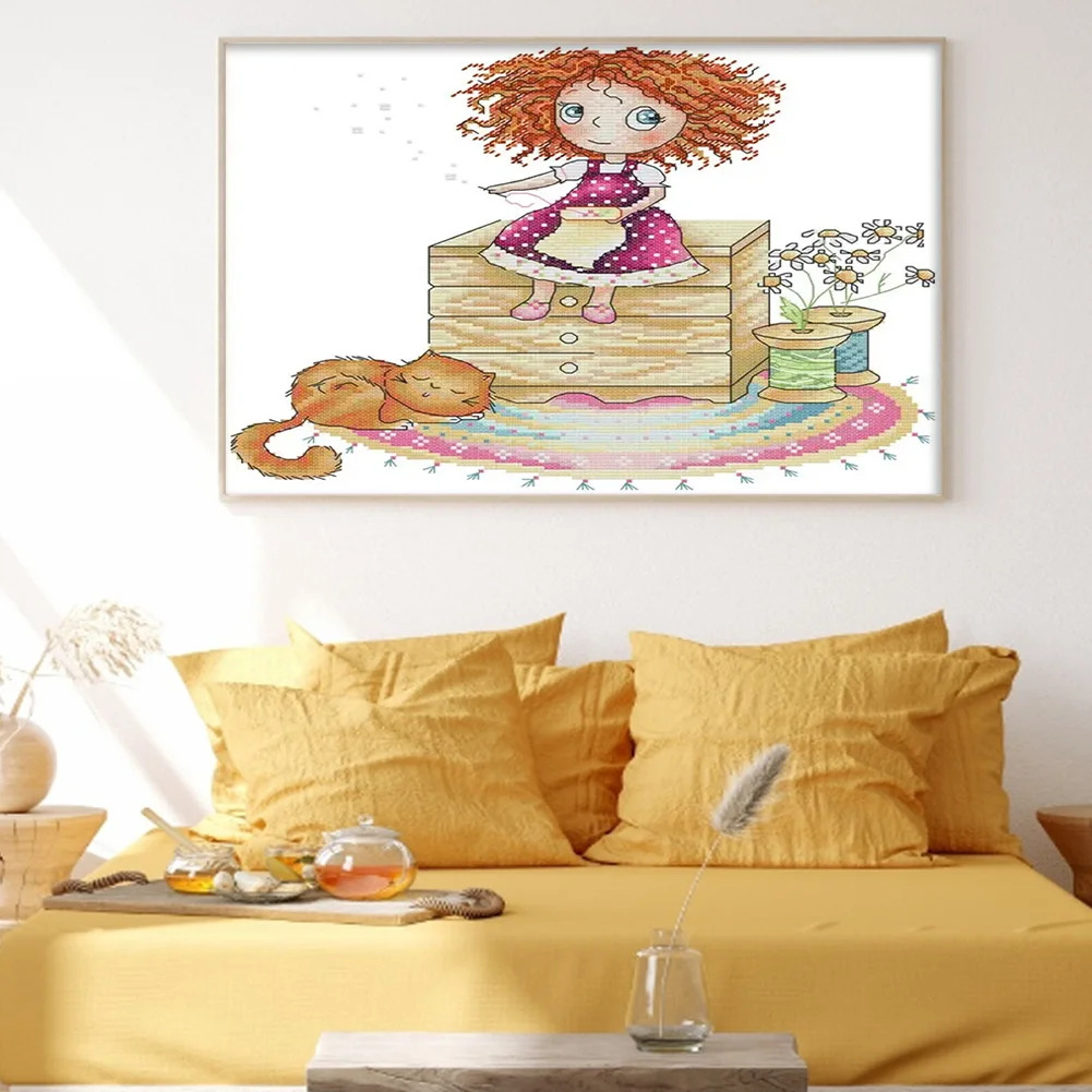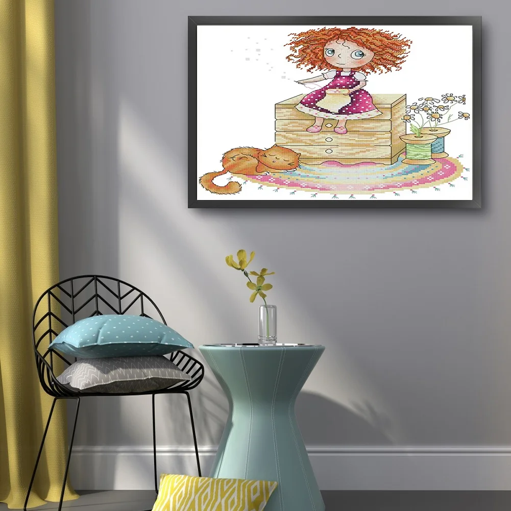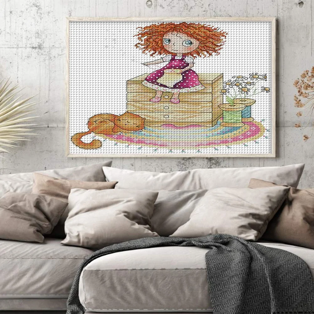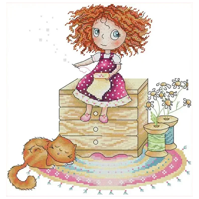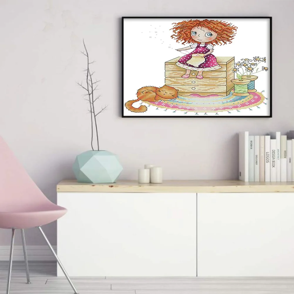 [JOY SUNDAY] -14CT Full Stamped Cross Stitch Kit - Girl (31*21CM)