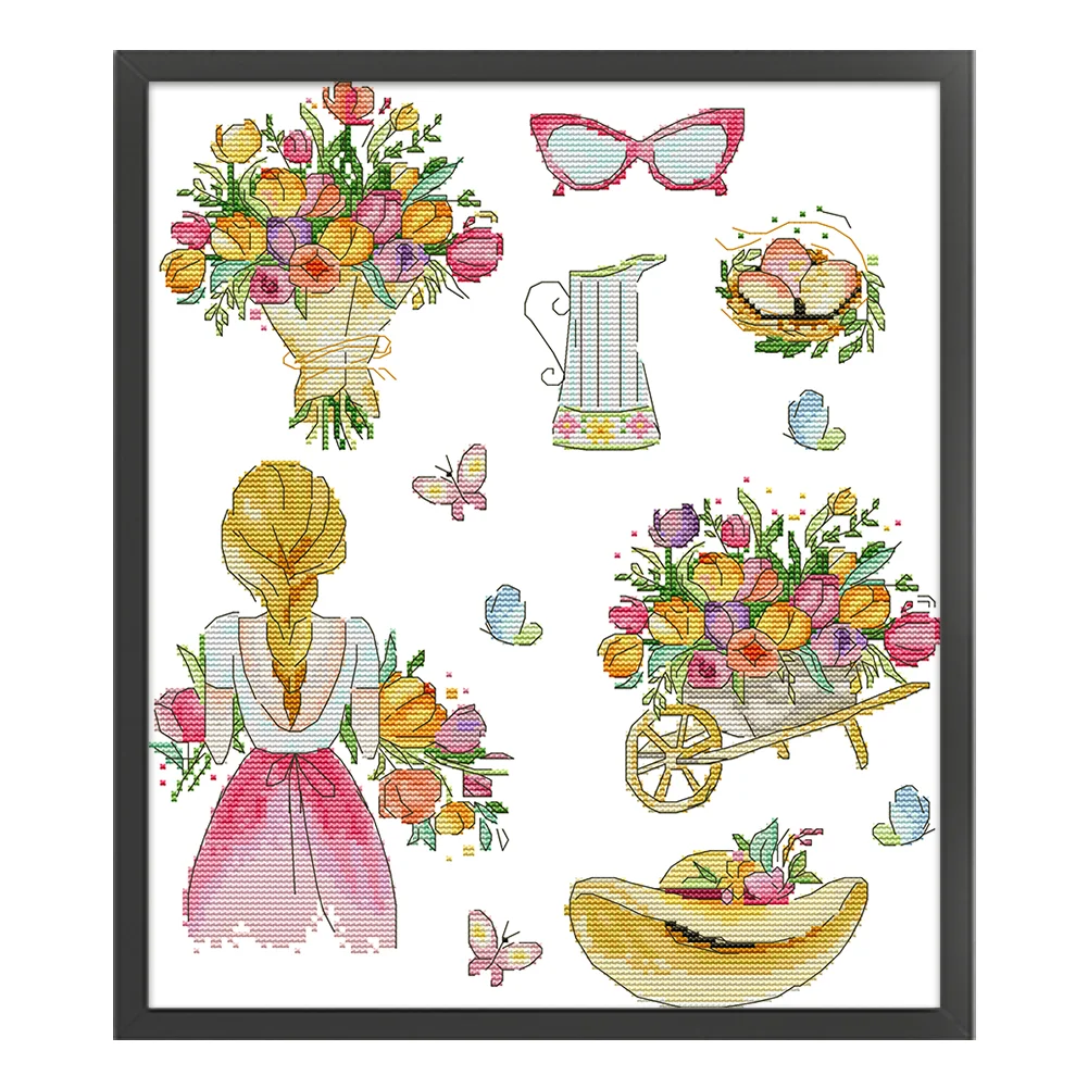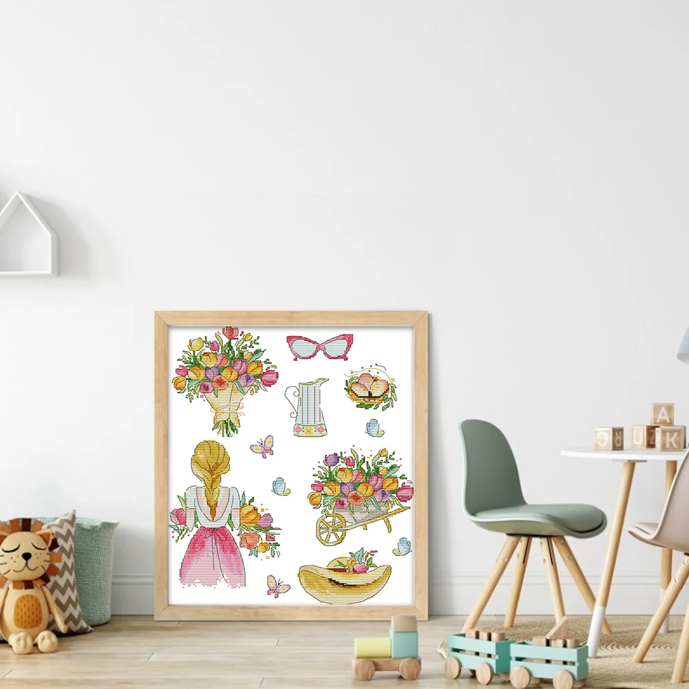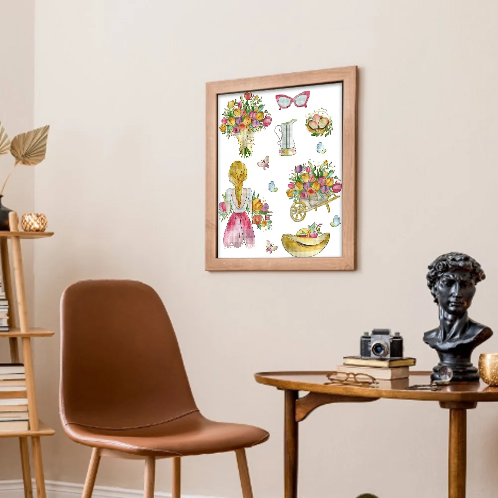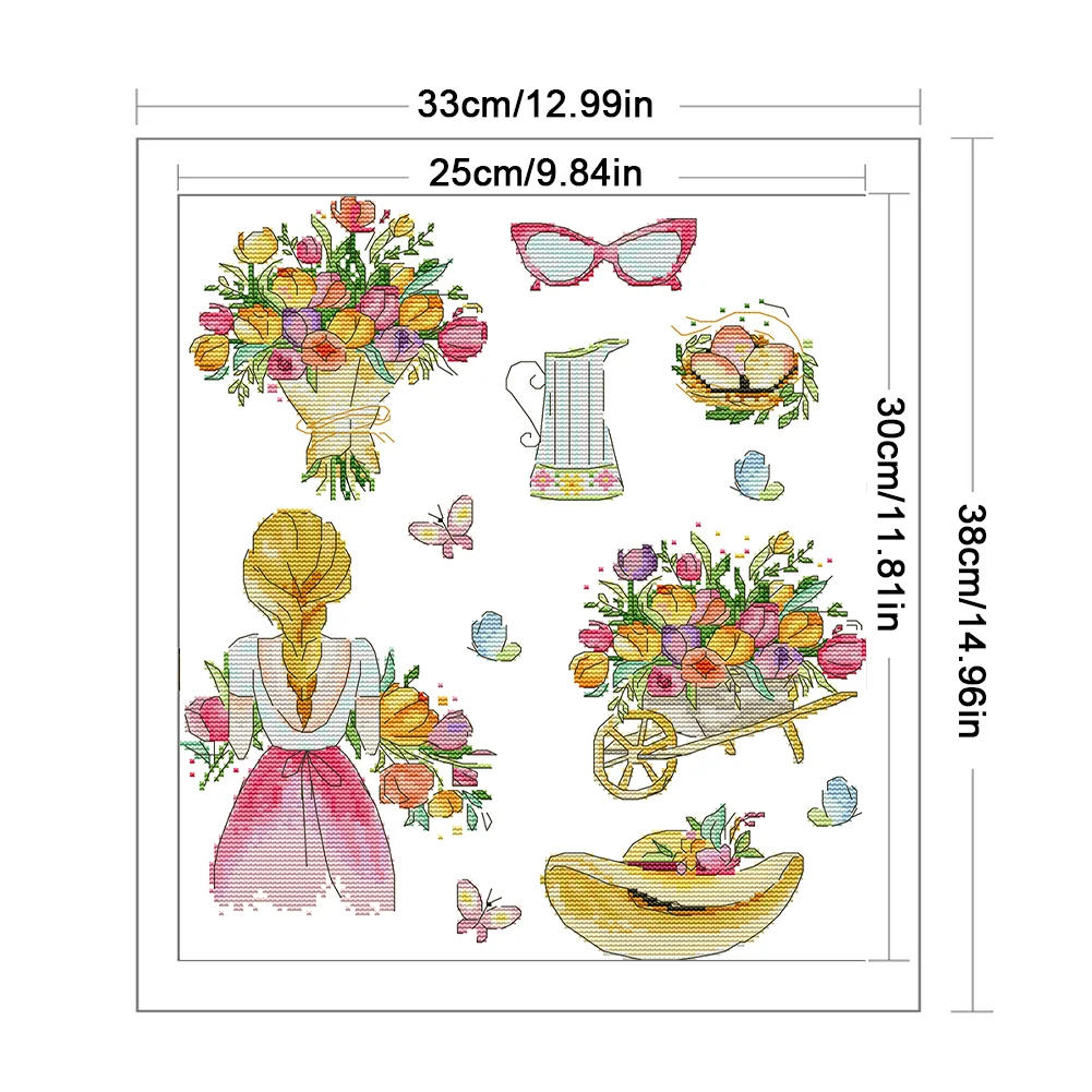 [JOY SUNDAY] -14CT Full Stamped Cross Stitch Kit - Girl (33*38CM)