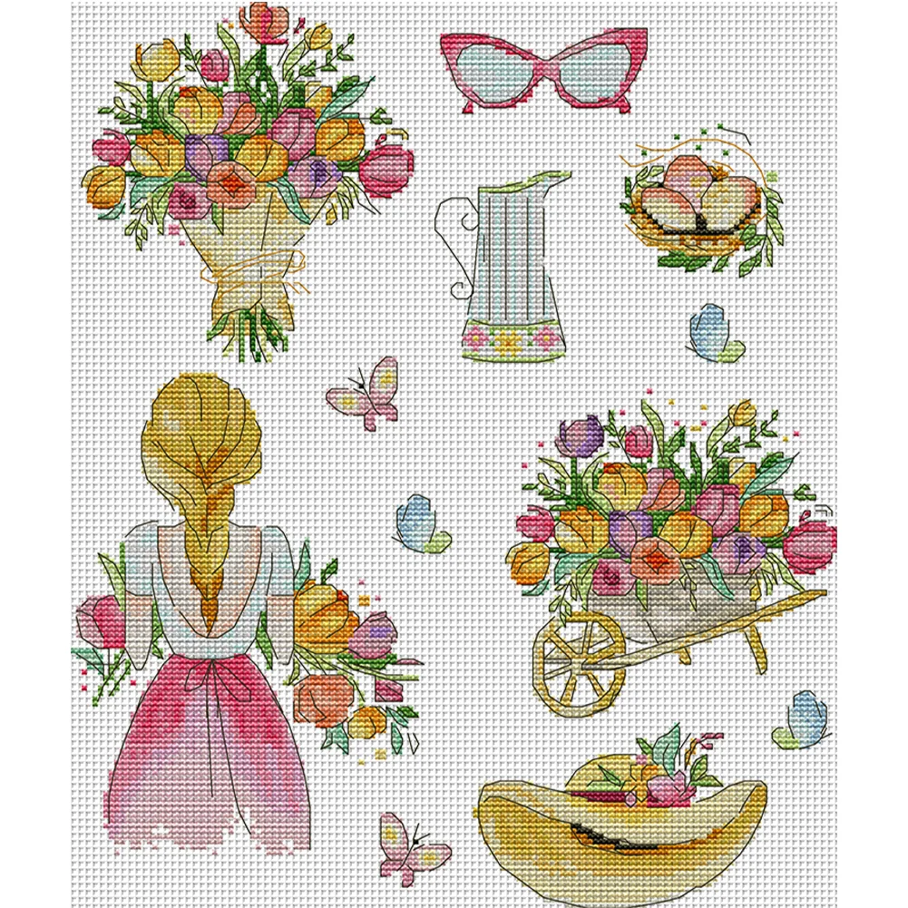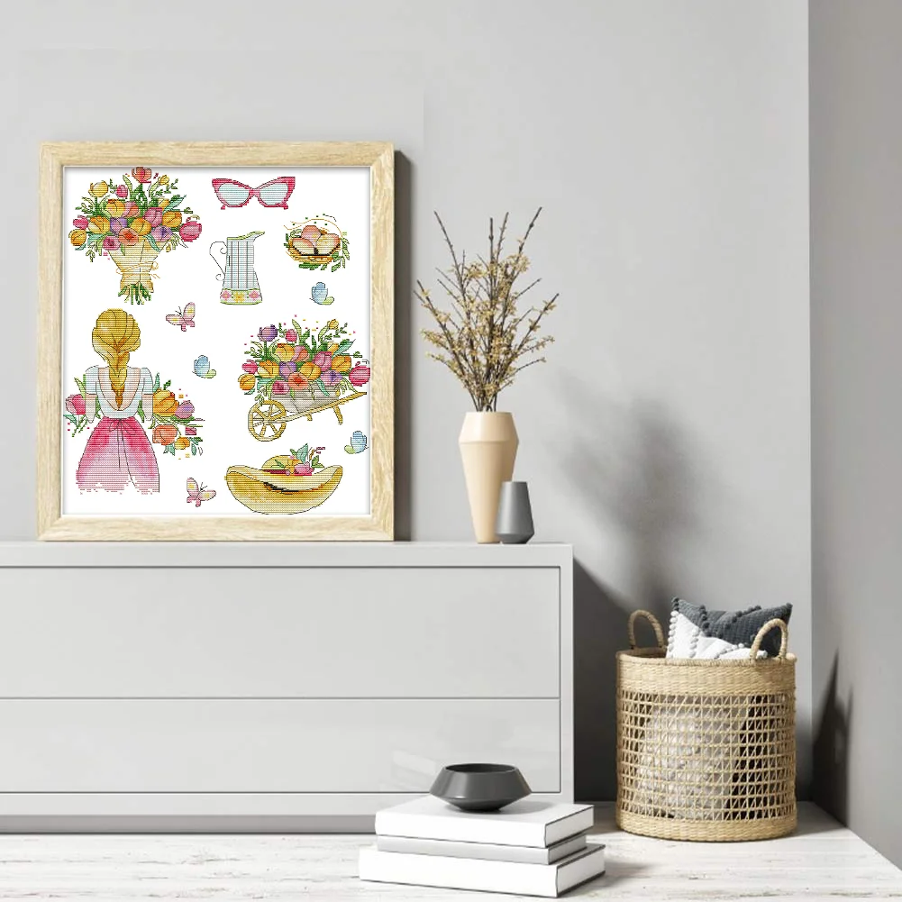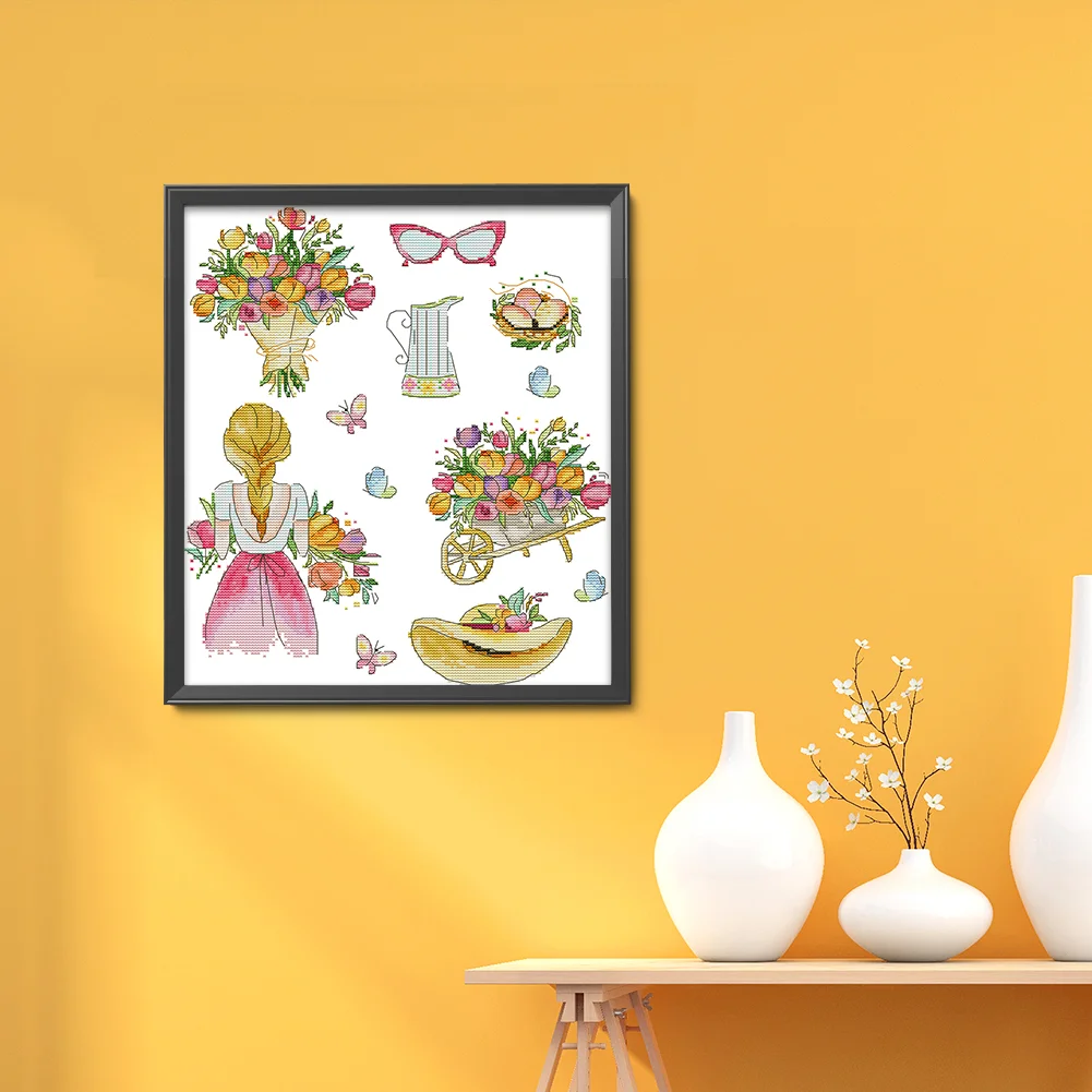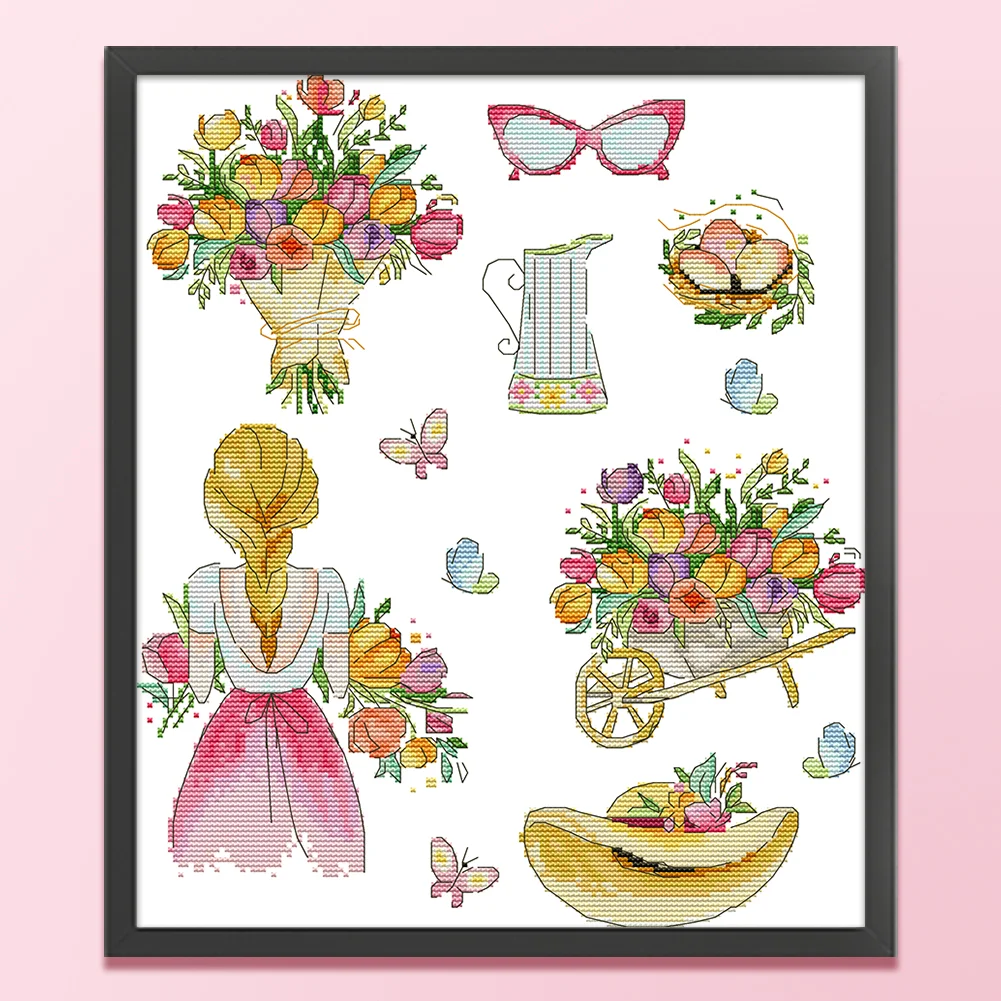 [JOY SUNDAY] -14CT Full Stamped Cross Stitch Kit - Girl (33*38CM)