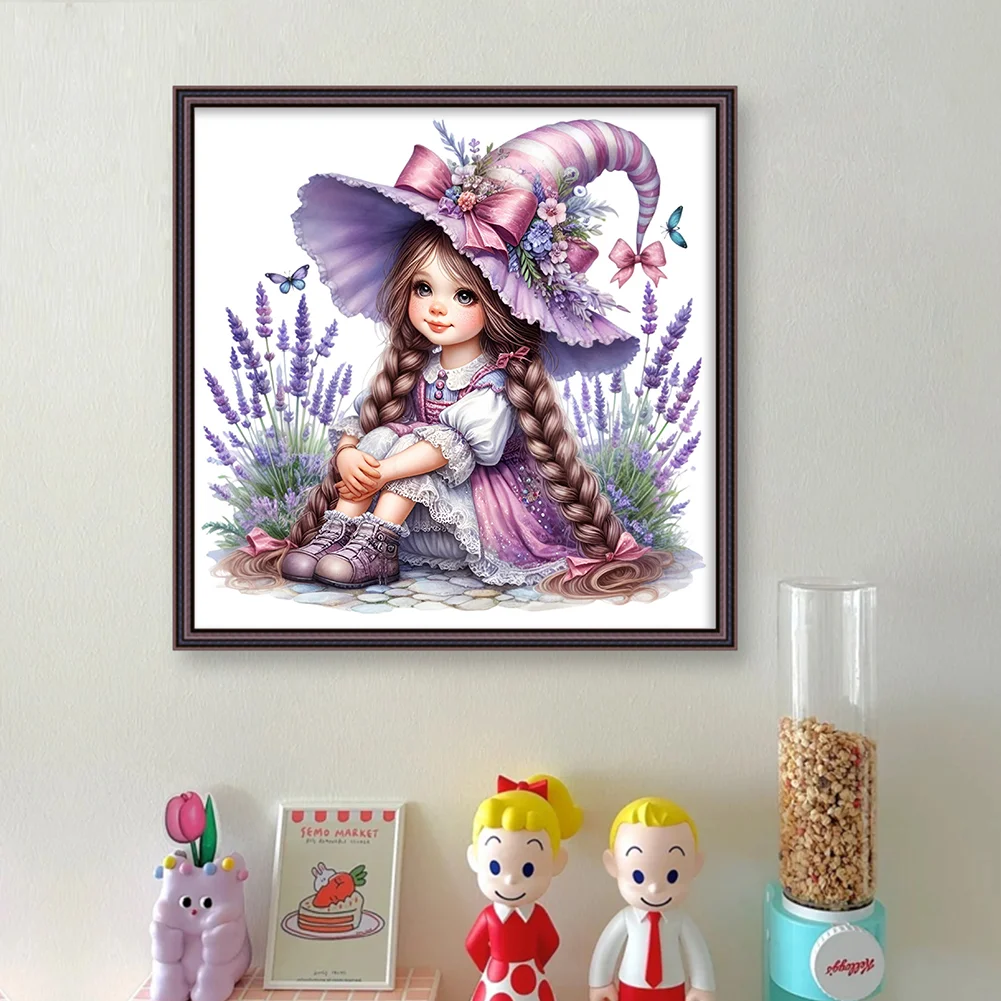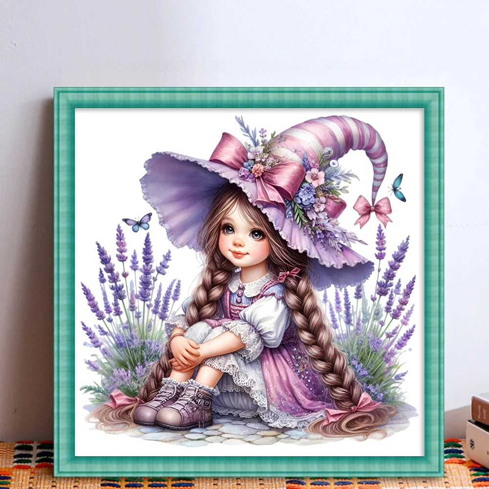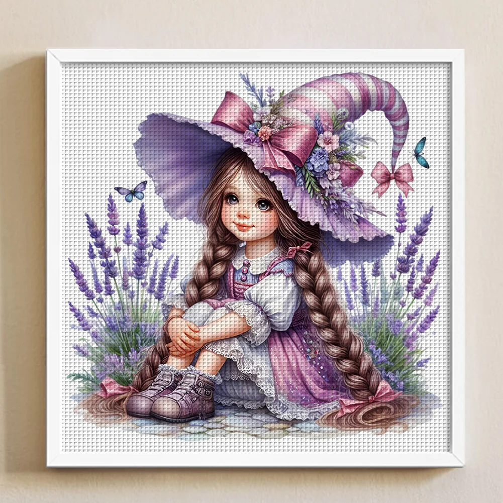 14CT Full Stamped Cross Stitch Kit - Lavender Girl (50*50CM)