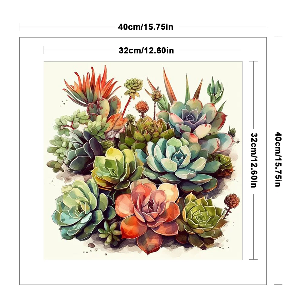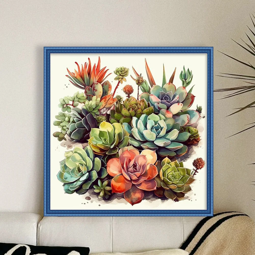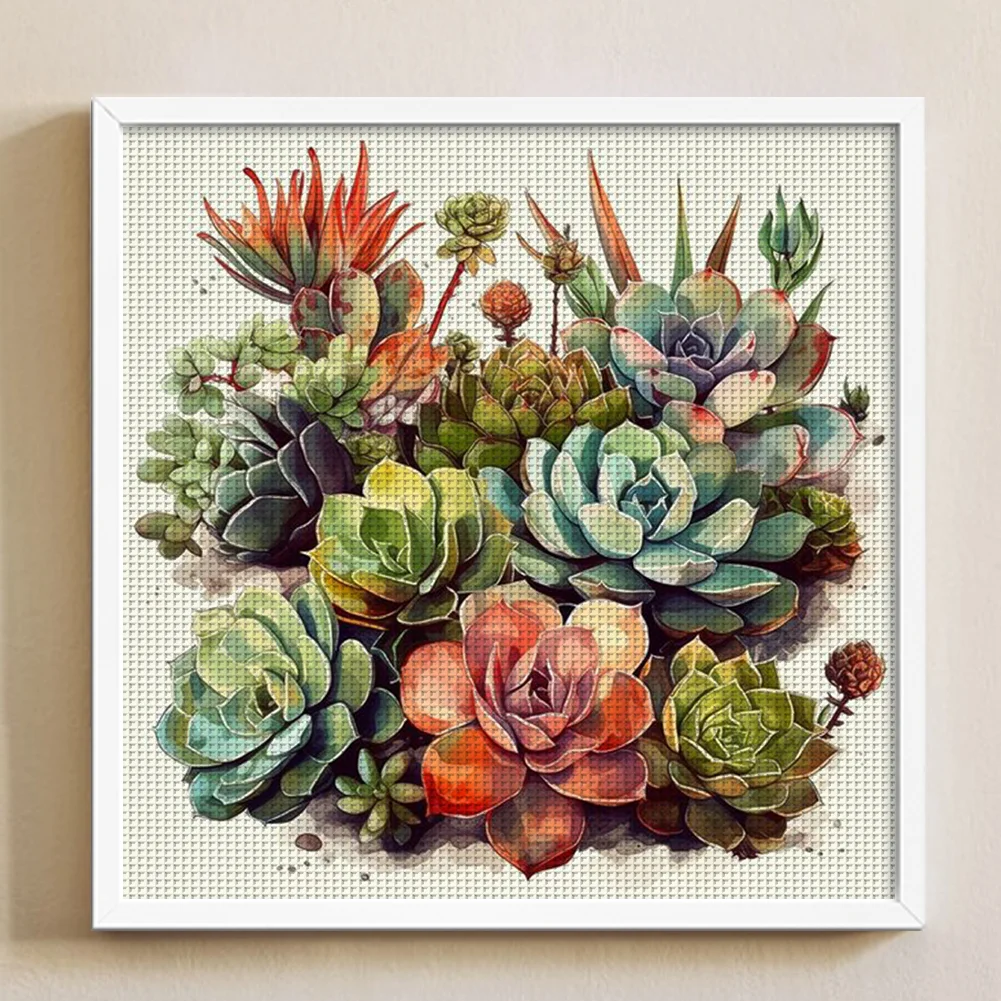 14CT Full Stamped Cross Stitch Kit - Succulents (40*40CM)