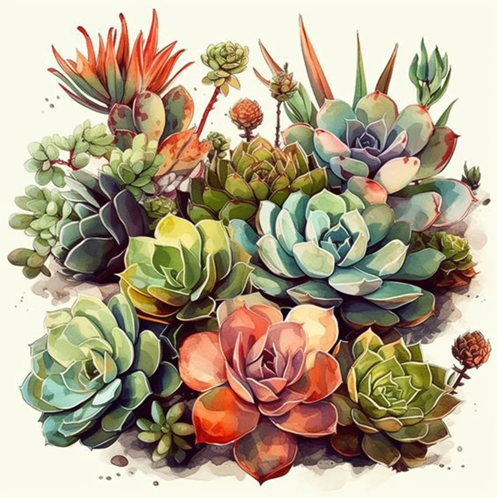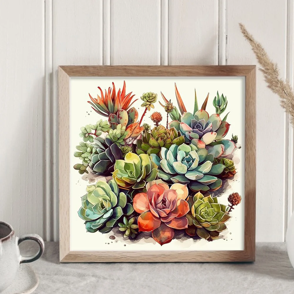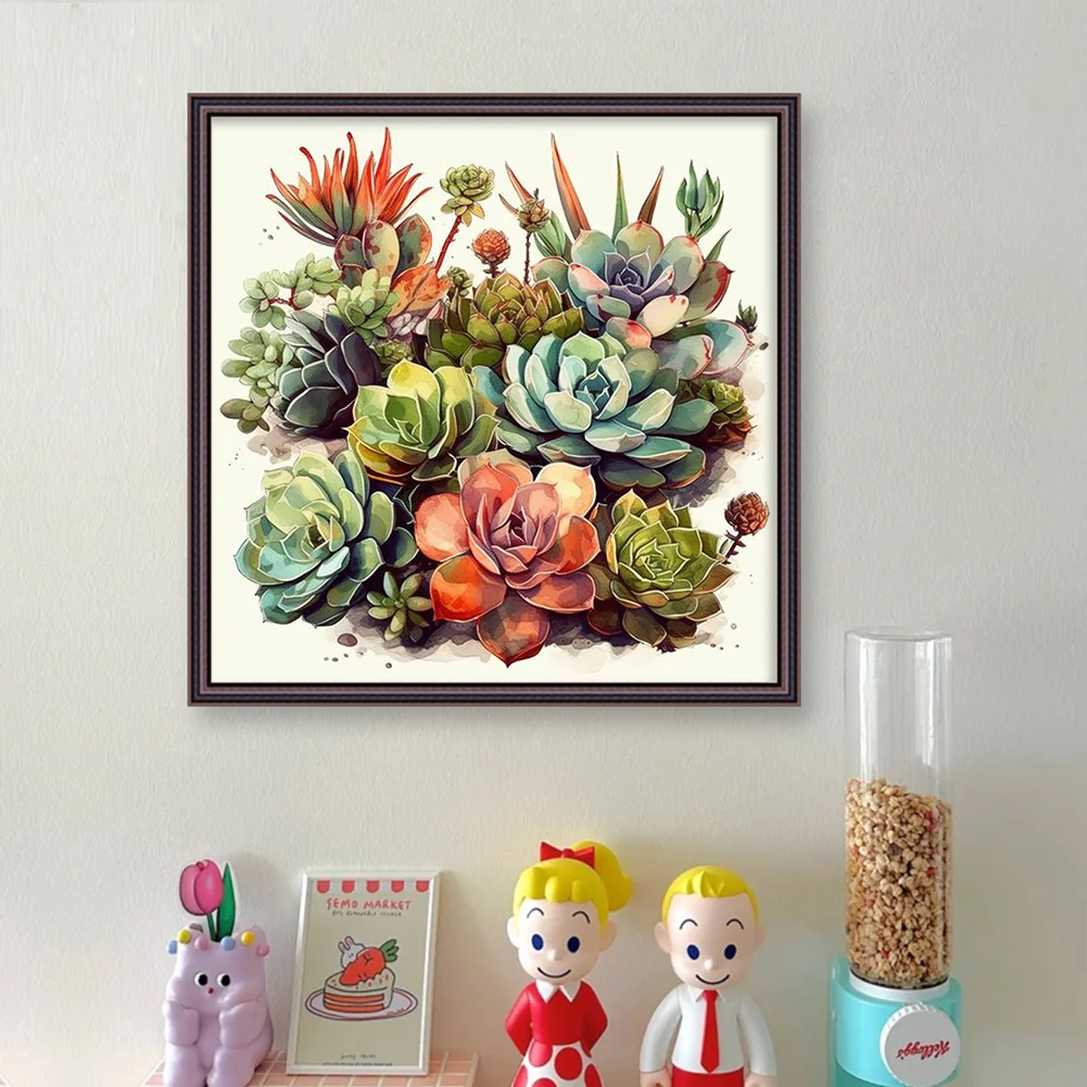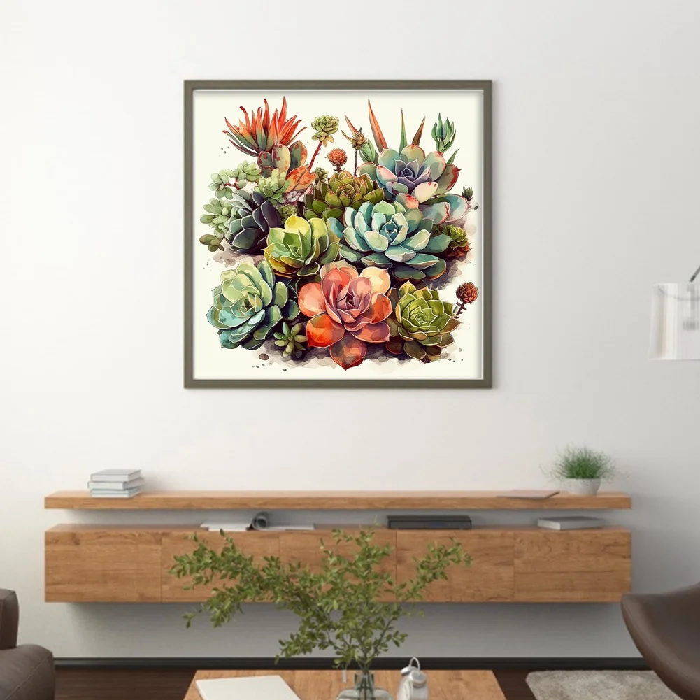 14CT Full Stamped Cross Stitch Kit - Succulents (40*40CM)