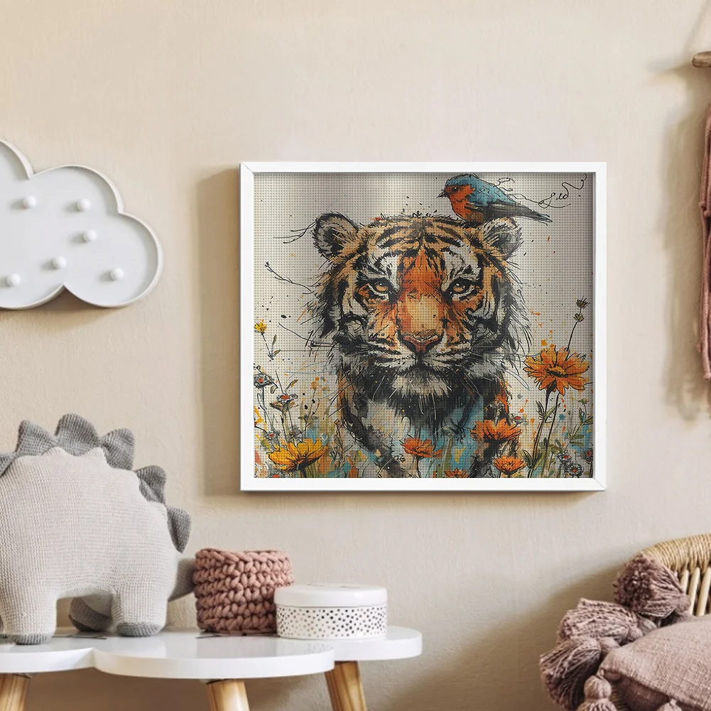 14CT Full Stamped Cross Stitch Kit - Tiger (50*45CM)