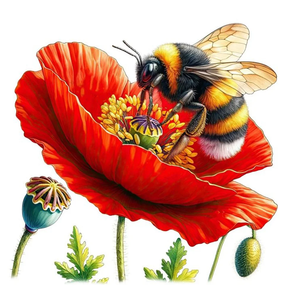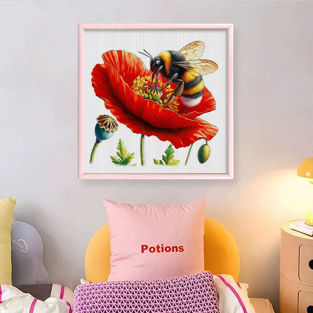18CT Full Stamped Cross Stitch Kit - Bee (25*25CM)