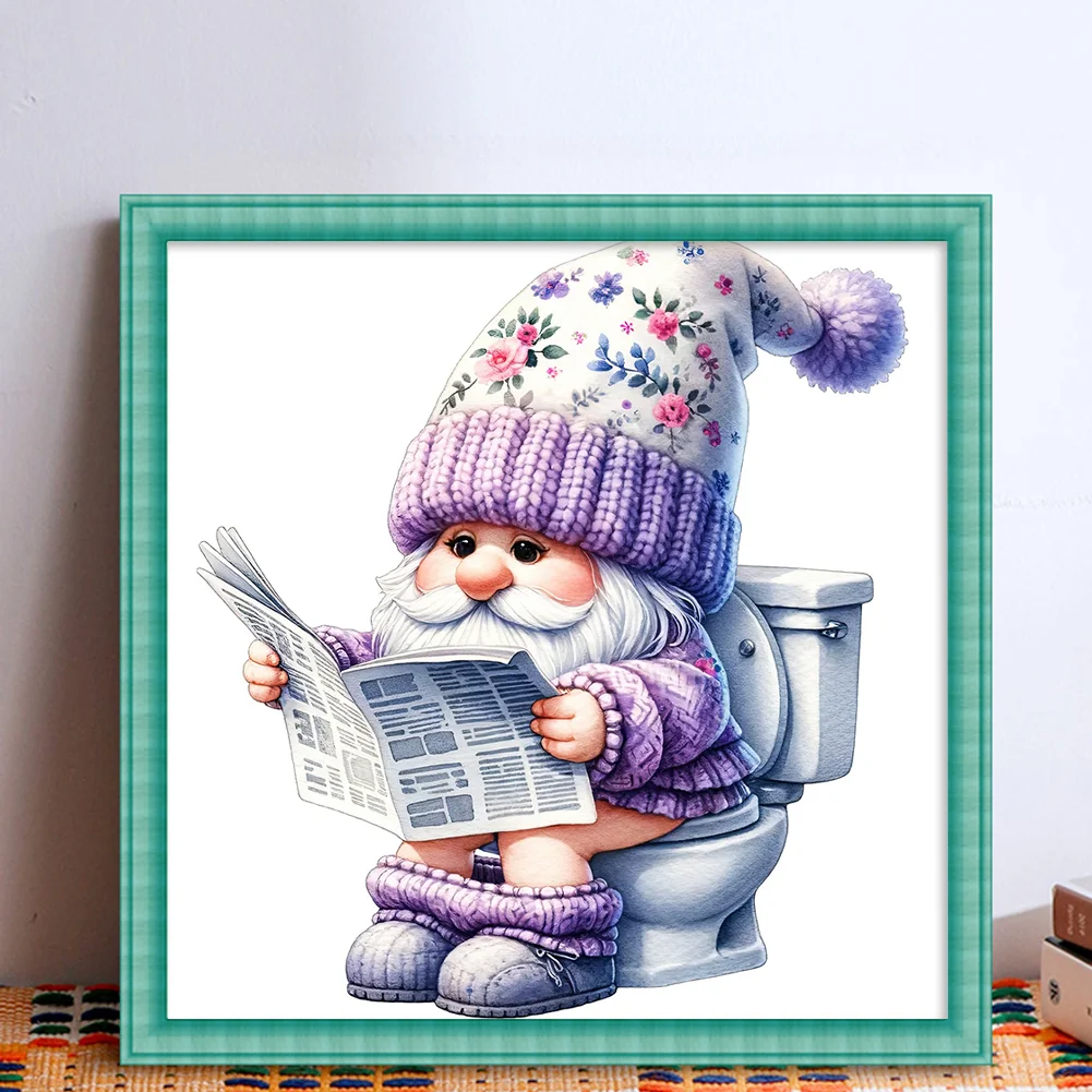 18CT Full Stamped Cross Stitch Kit - Gnome Toilet (25*25CM)