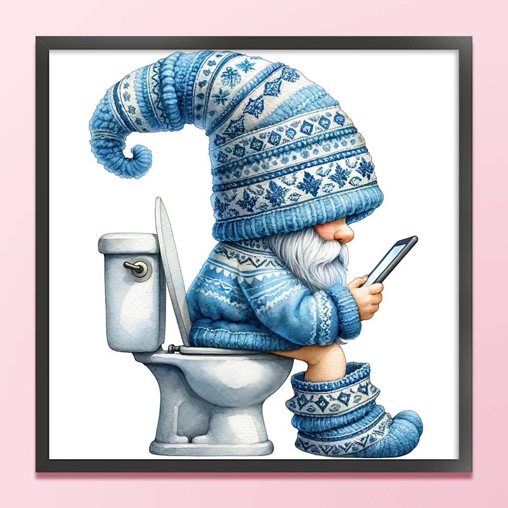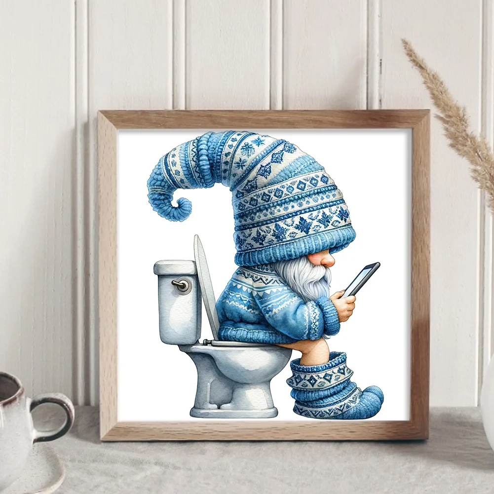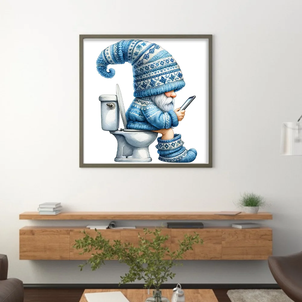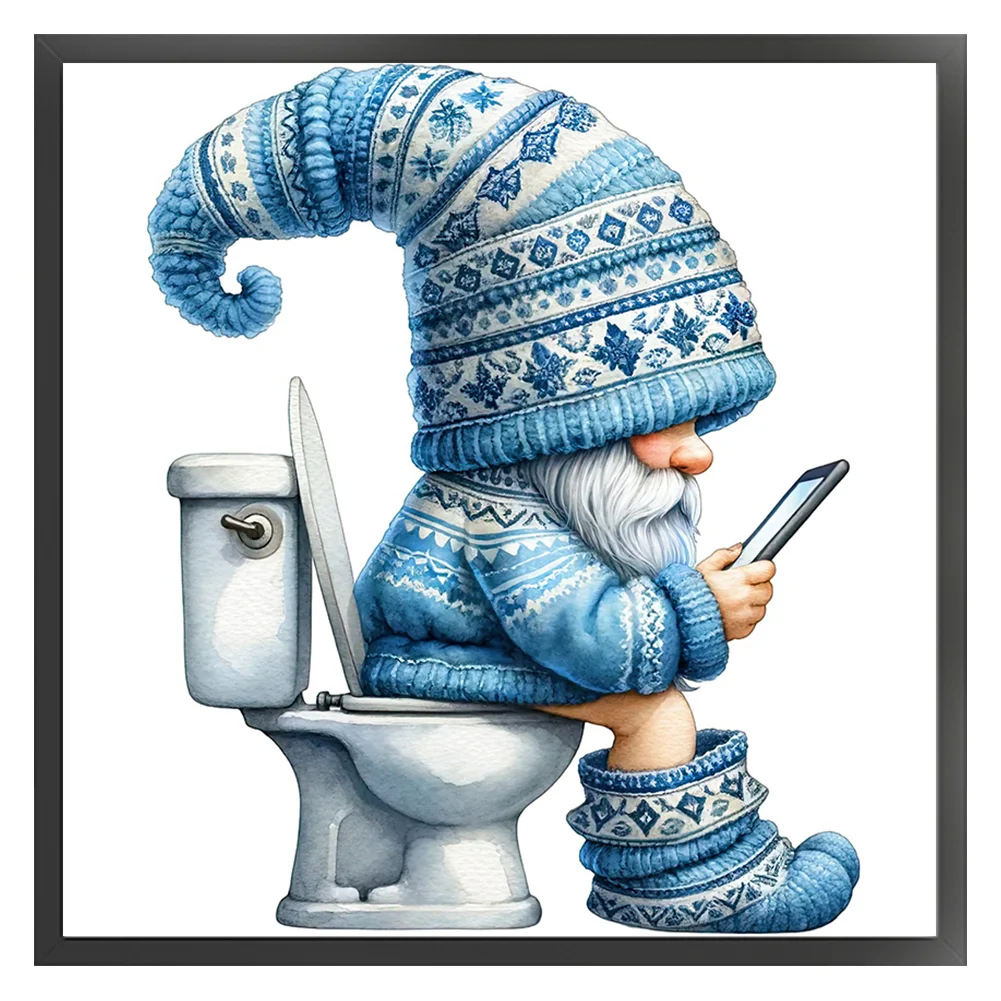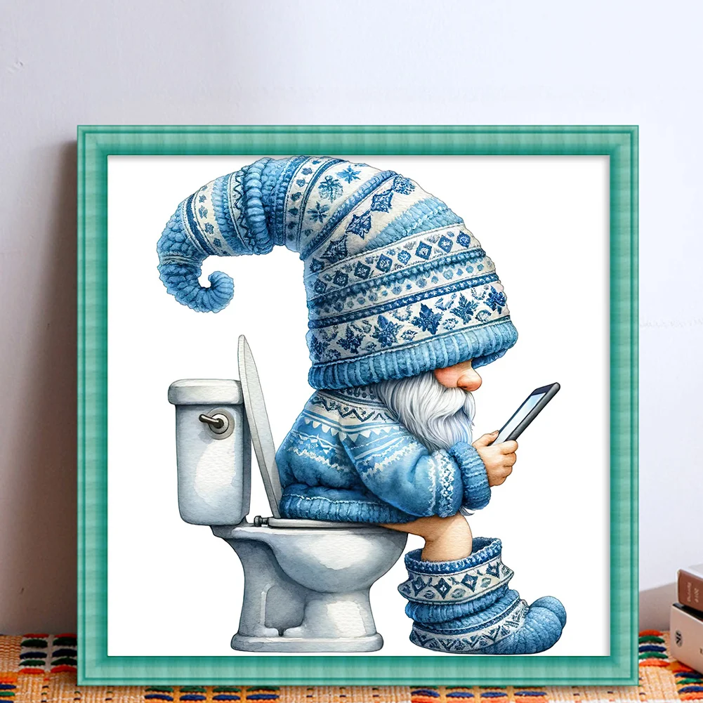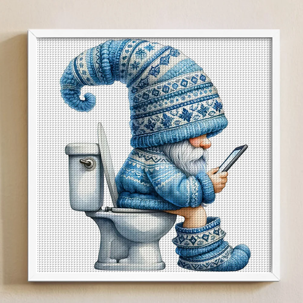 18CT Full Stamped Cross Stitch Kit - Gnome Toilet (25*25CM)