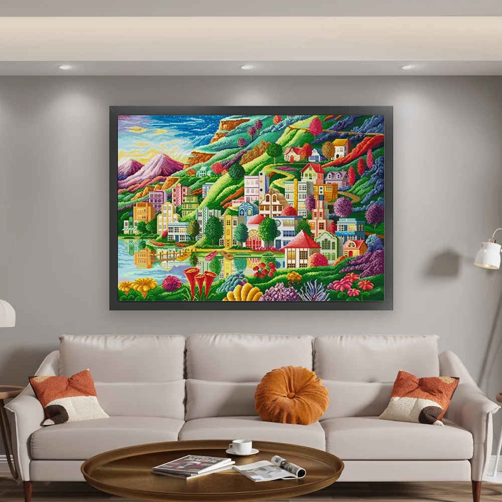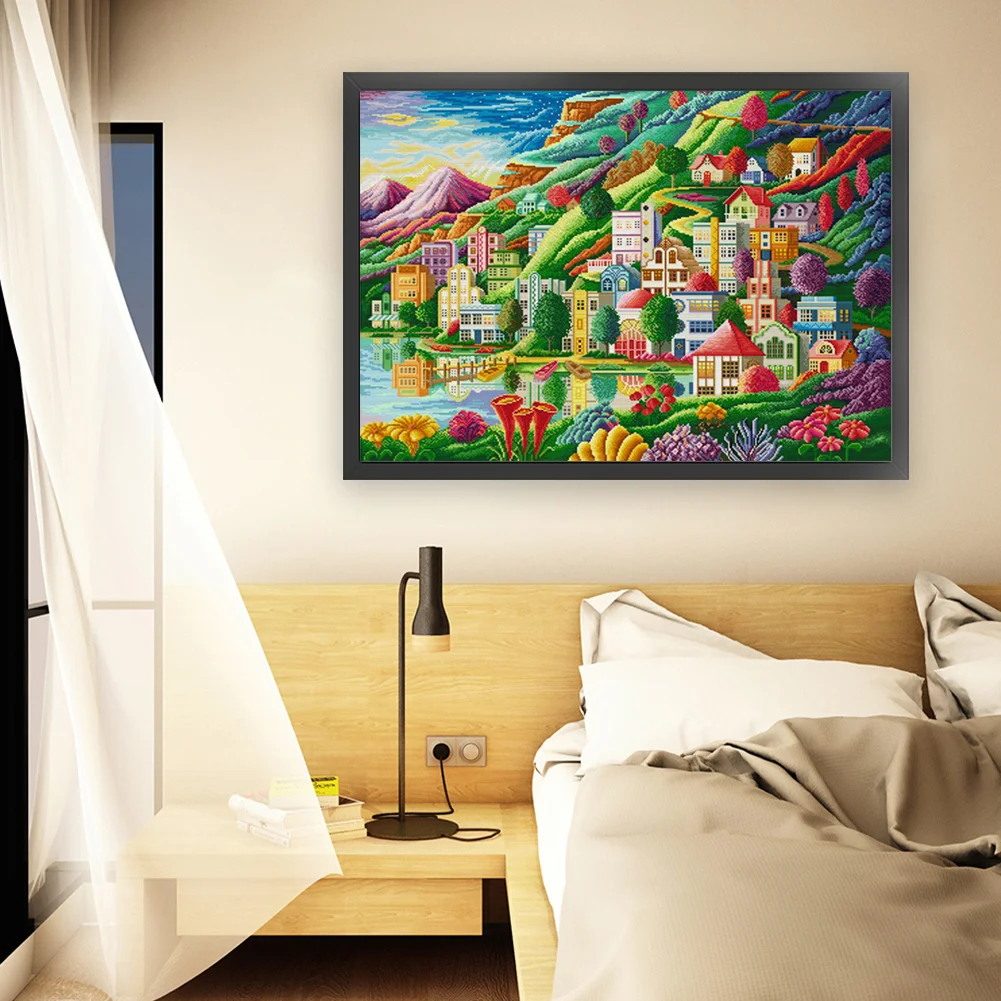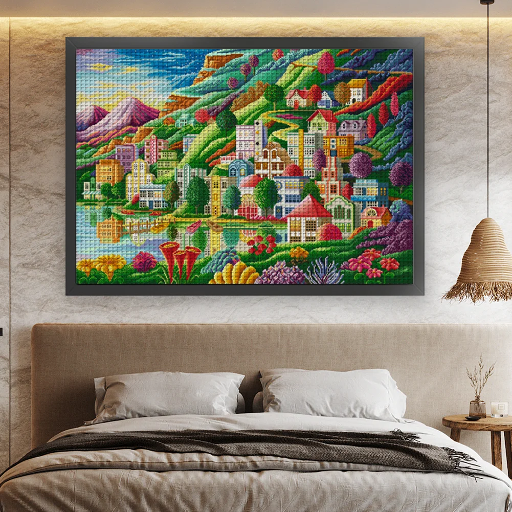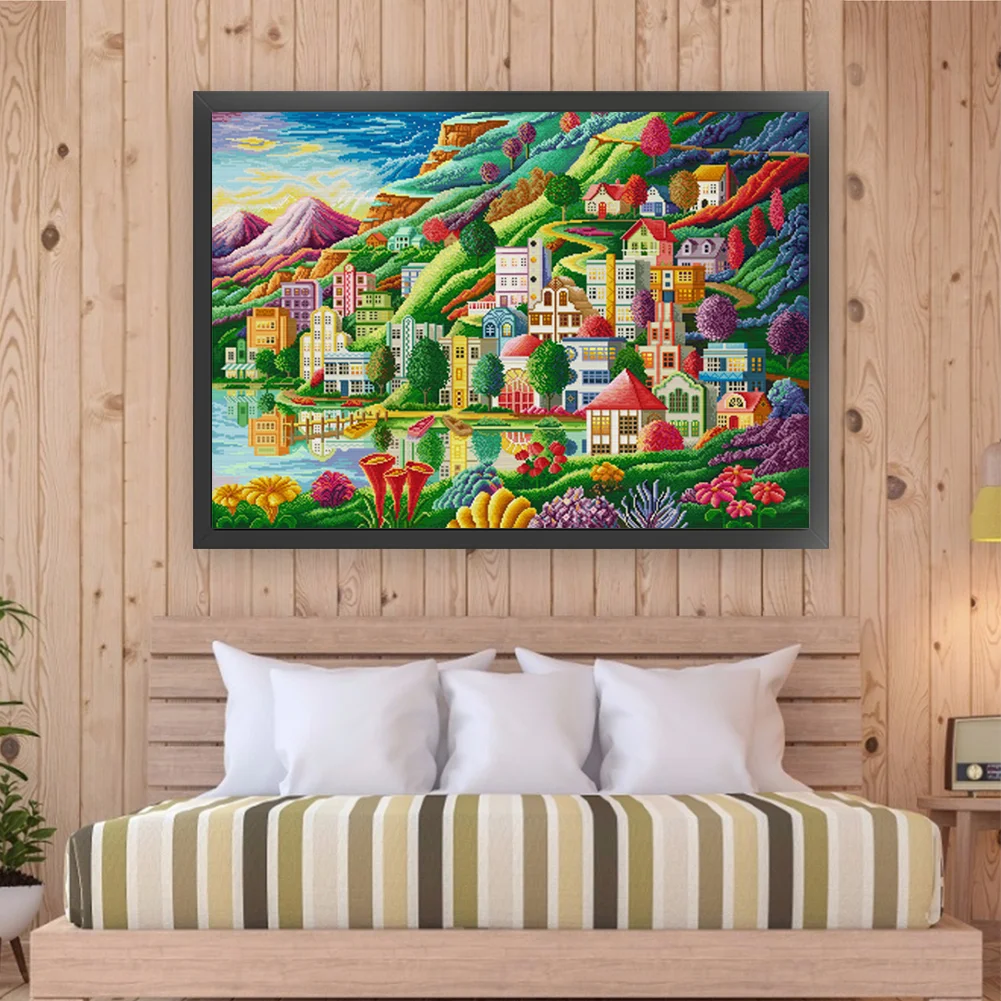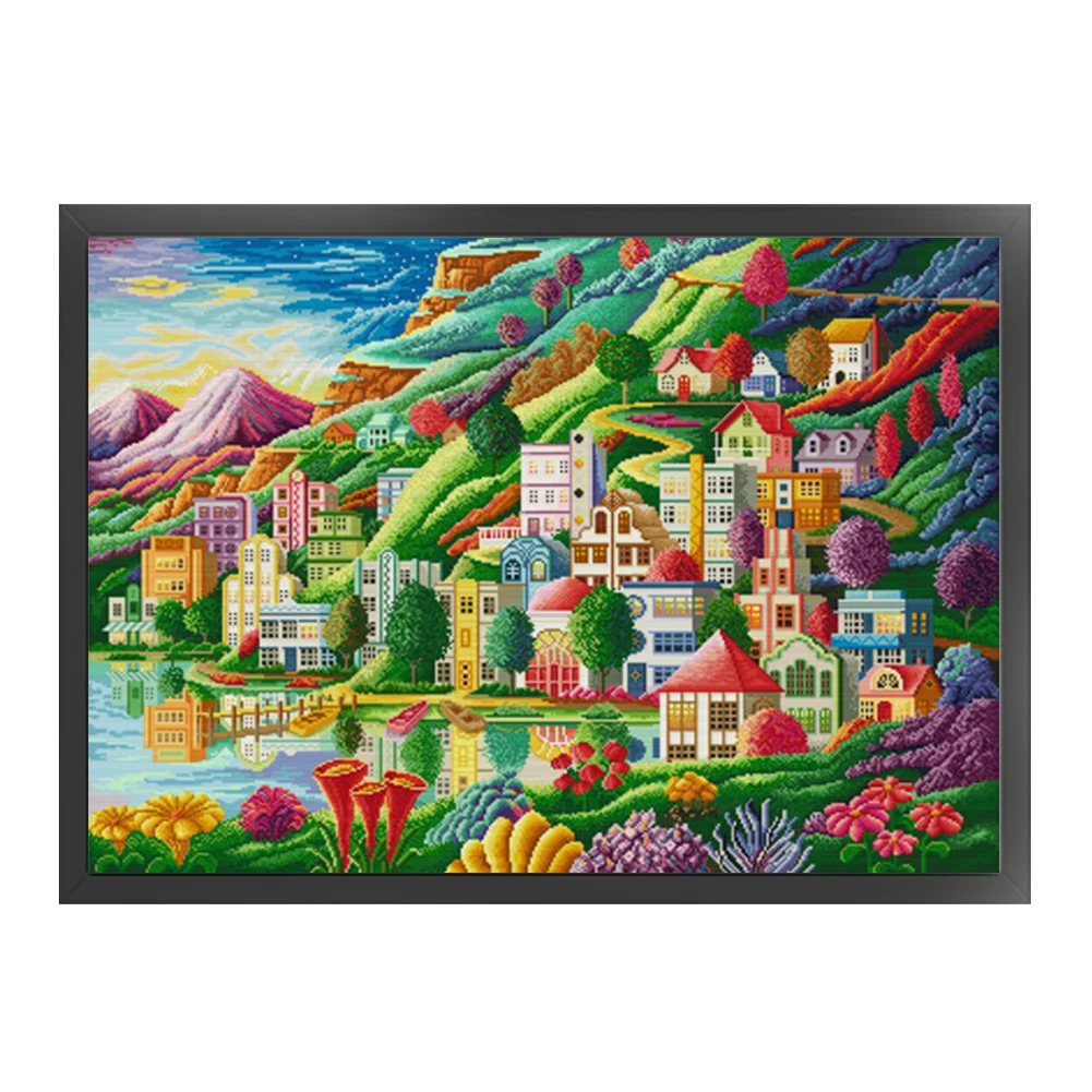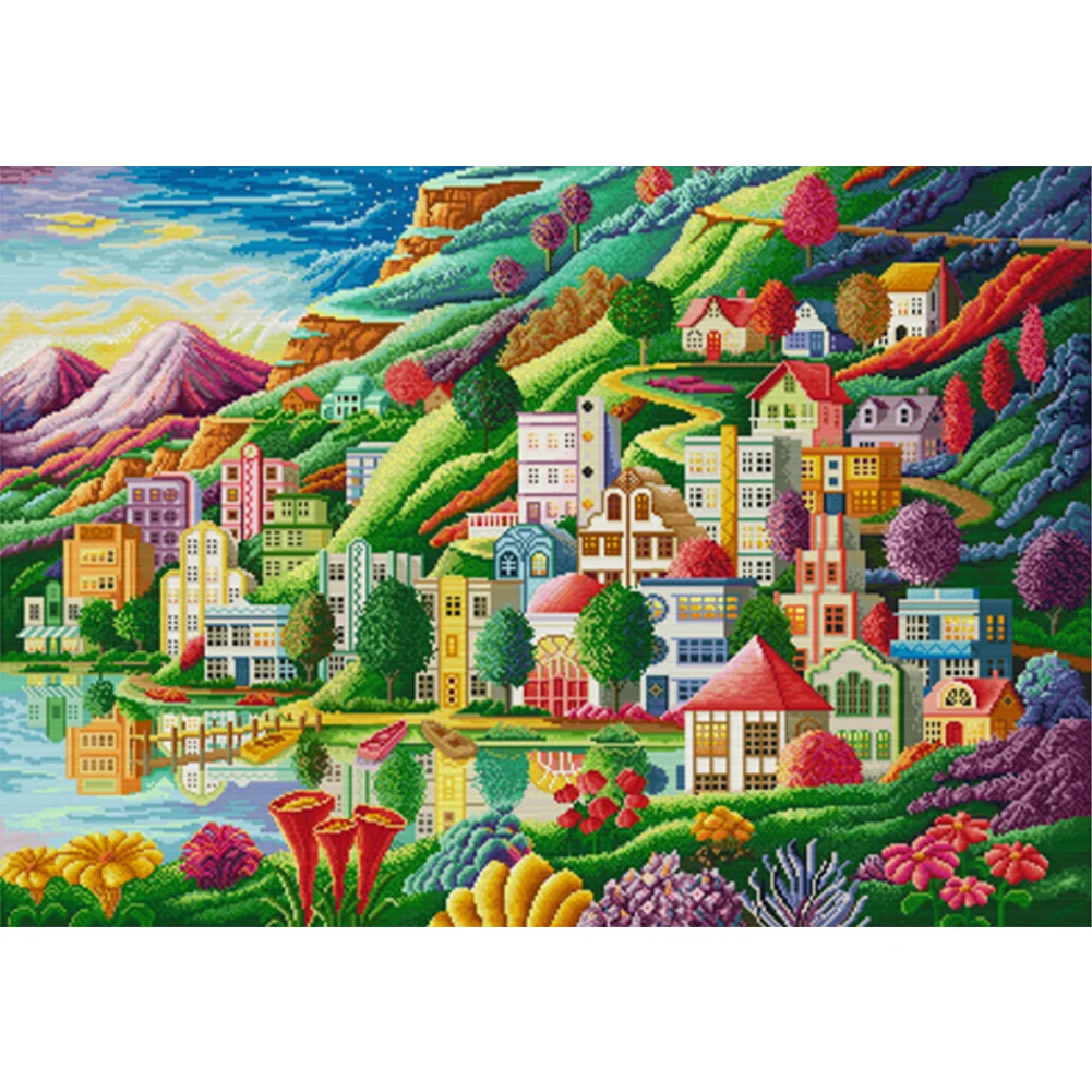 [Spring Brand] -(Large Size)14CT Full Stamped Cross Stitch Kit - Town (82*61CM)