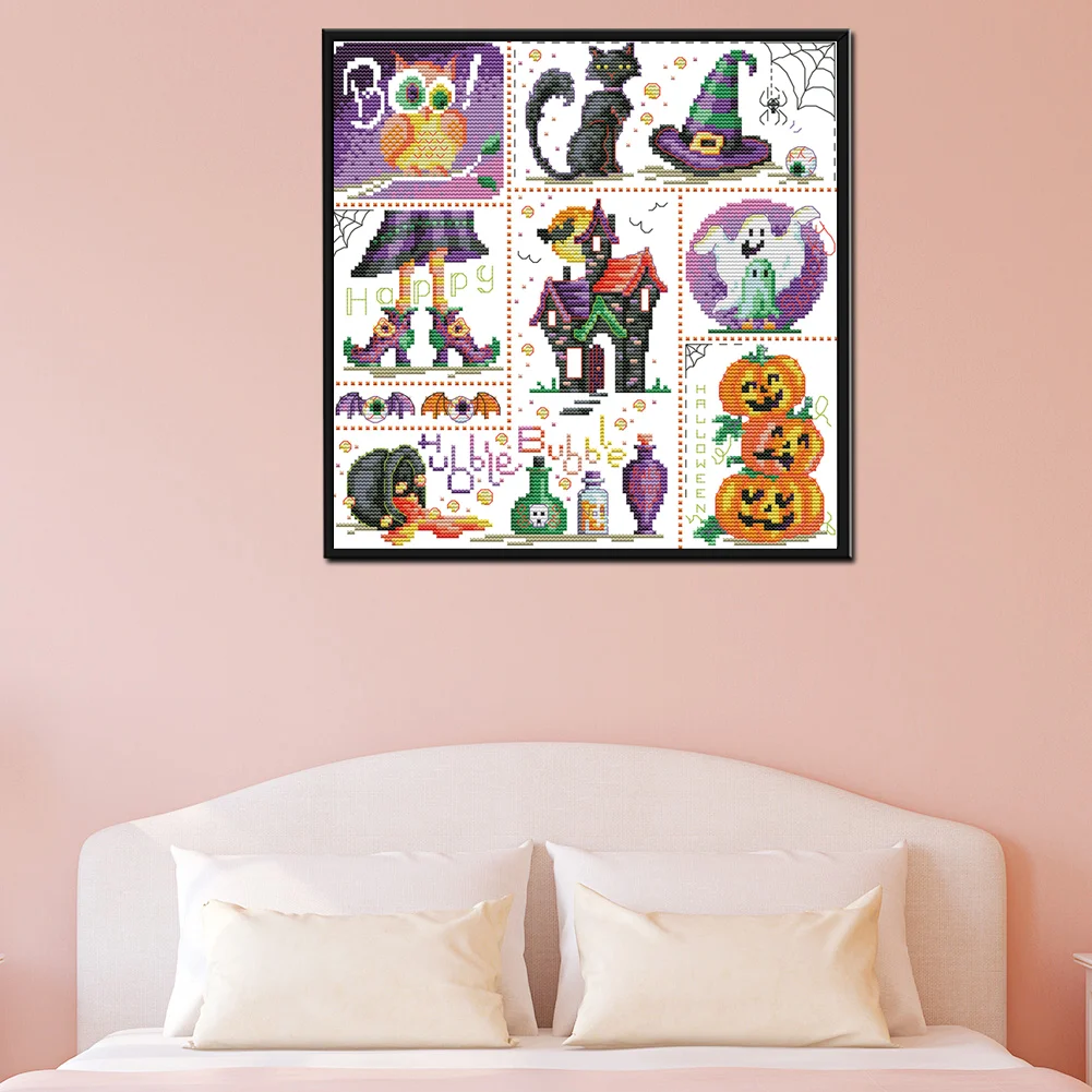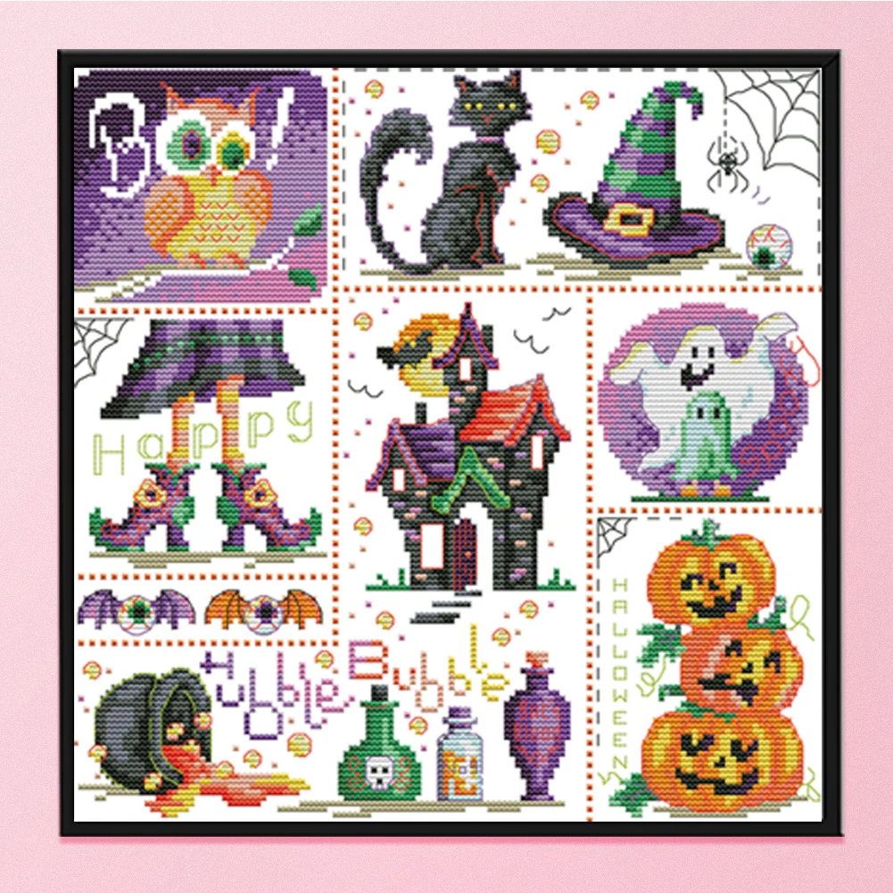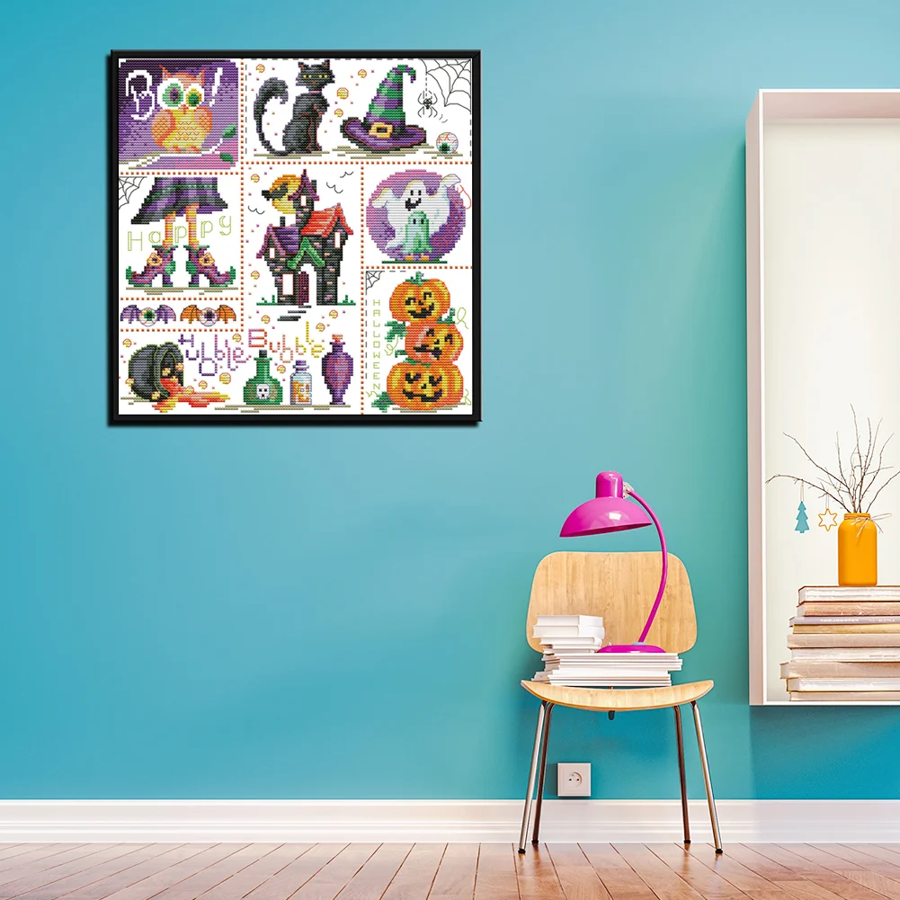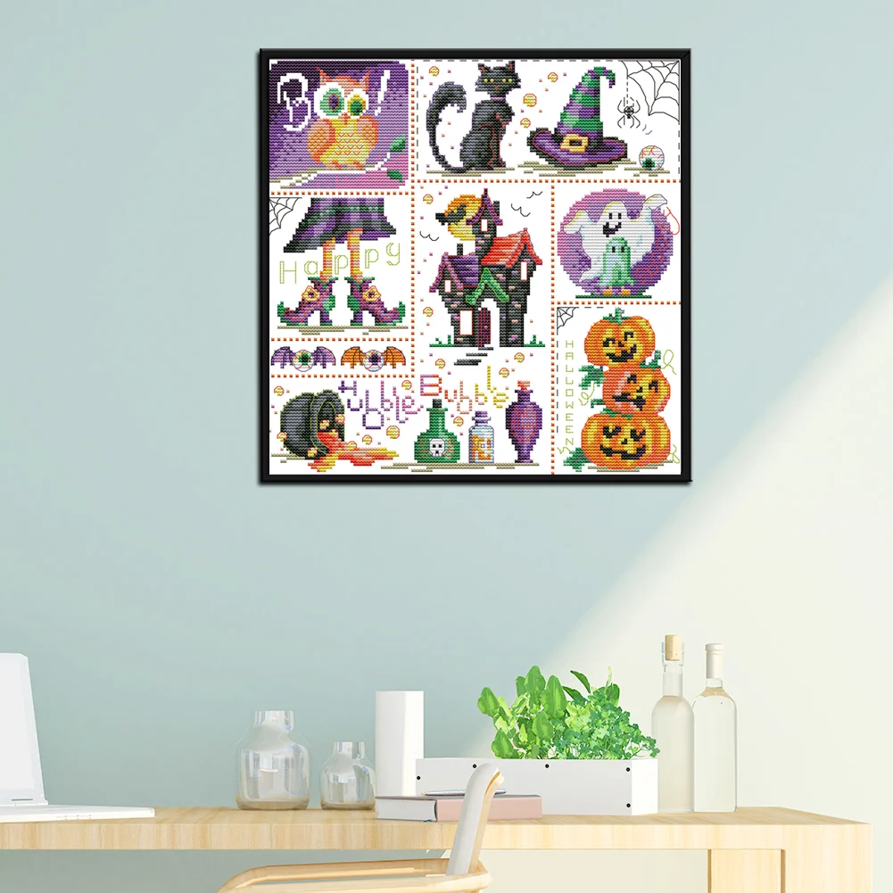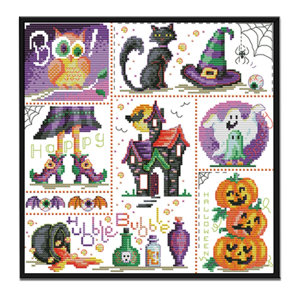 DIY Cross Stitch Kits Stamped Canvas Halloween Day Animal Patterns 11CT Needlework Sets Home Decor Gift
