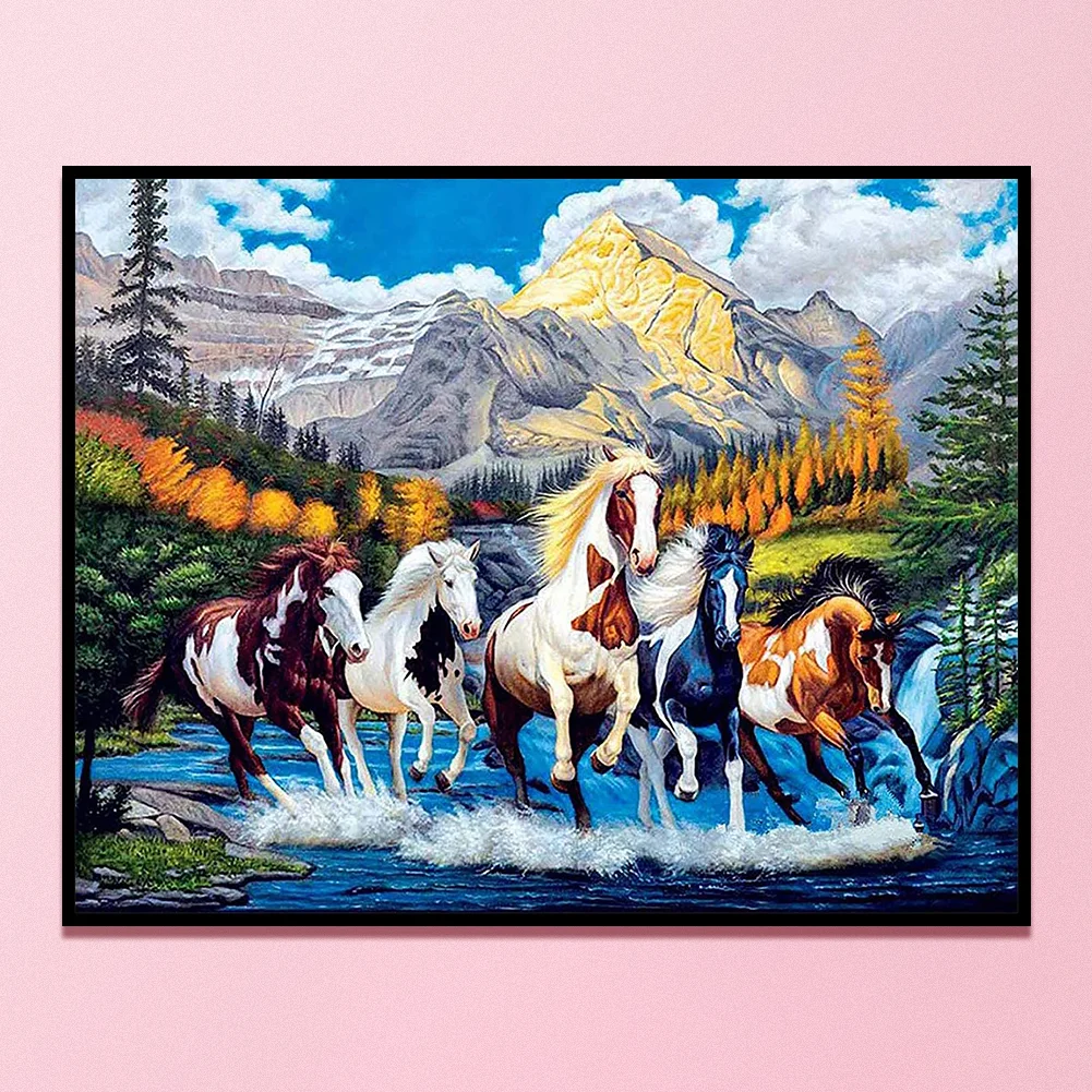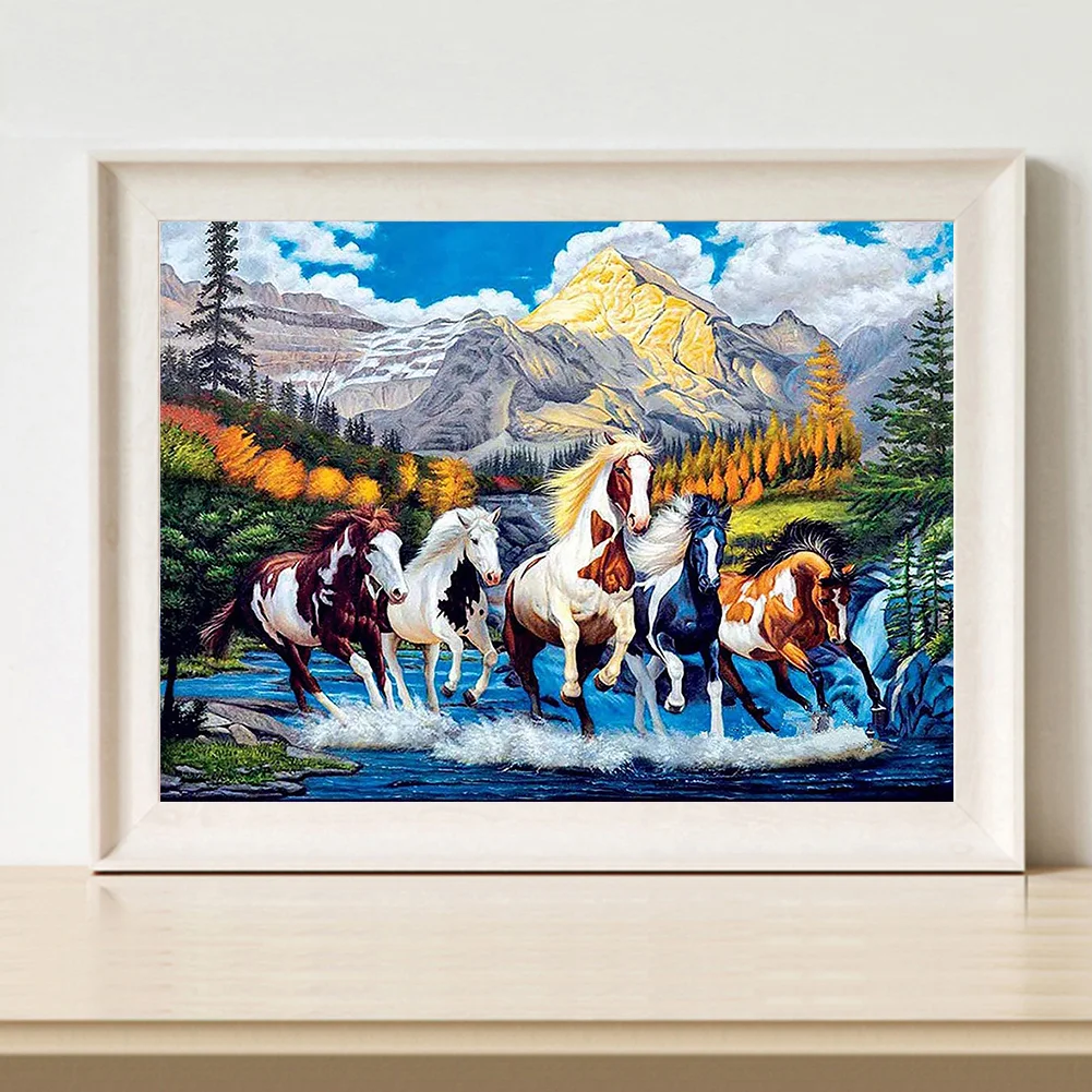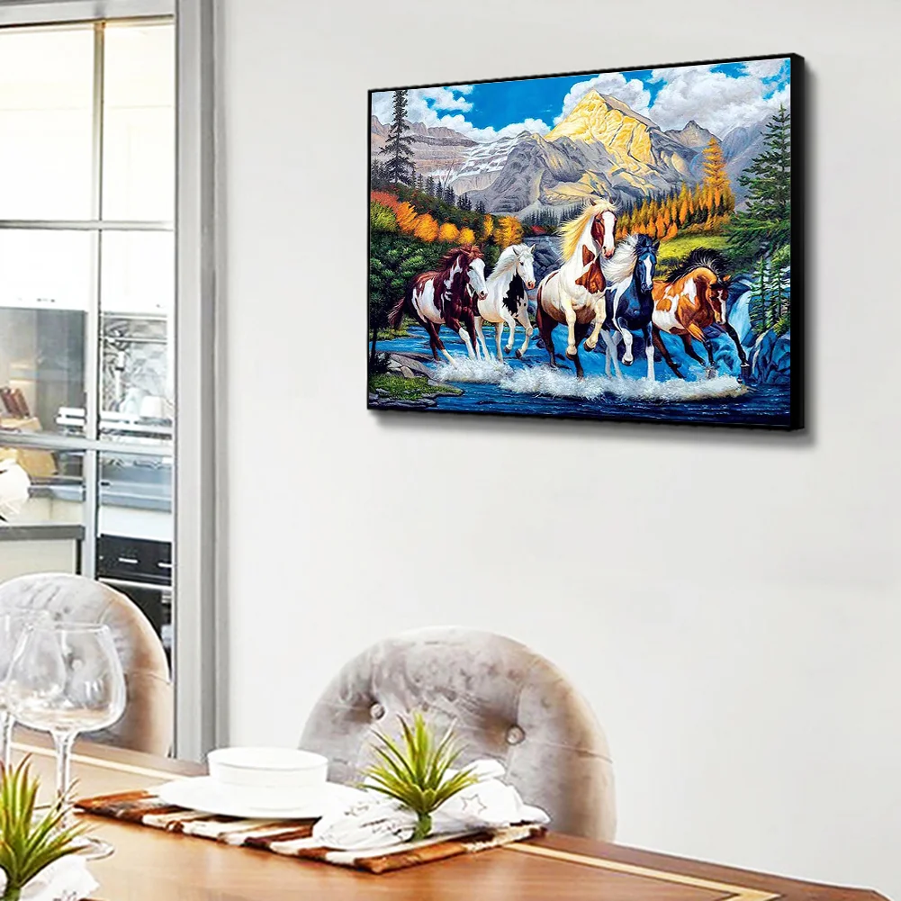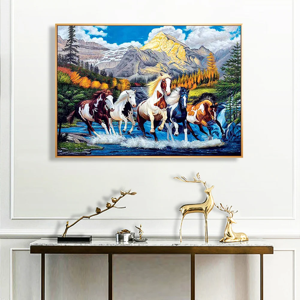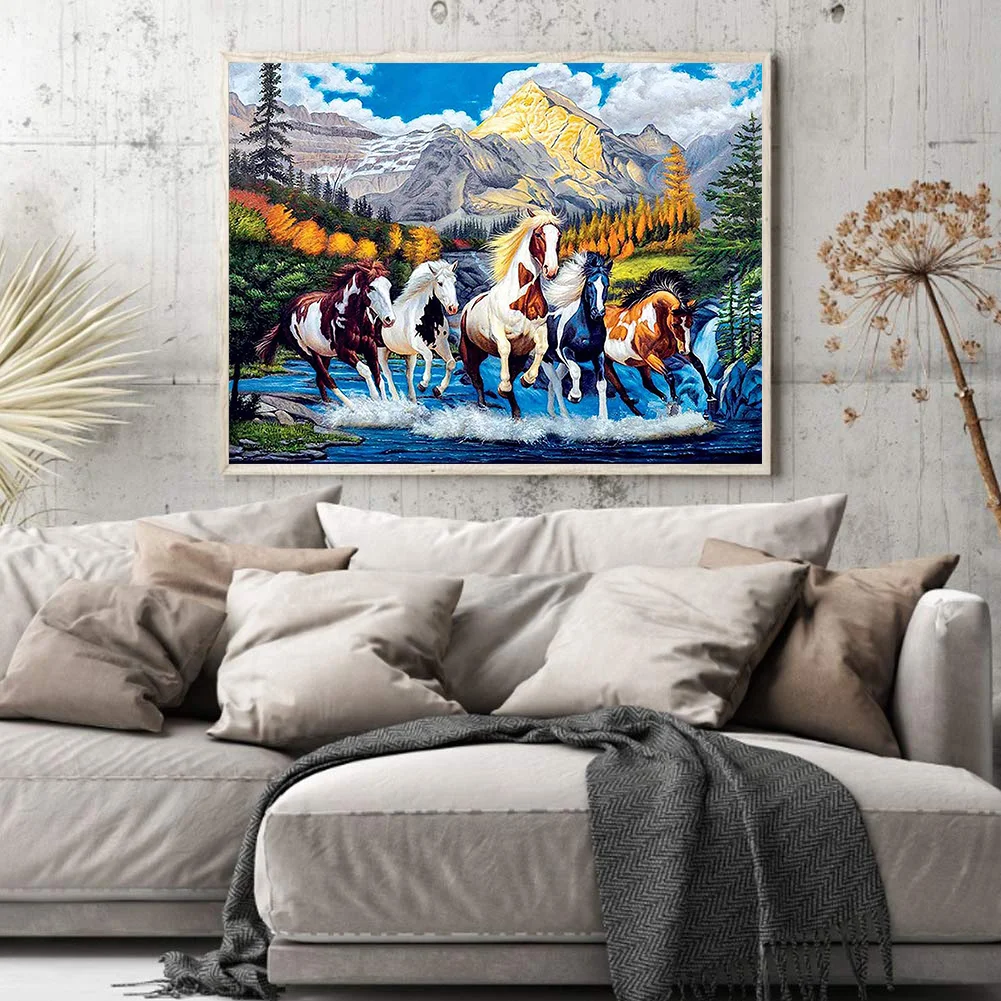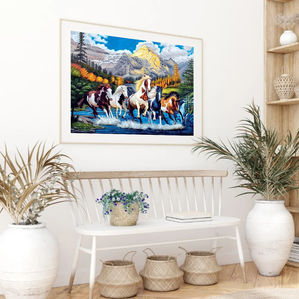 Full Cross Stitch Embroidery Cotton Thread Painting Scenic Horse Pattern DIY Needlework Kits 11CT Stamped Print Canvas Artworks Home Wall Art Gifts Decoration Crafts