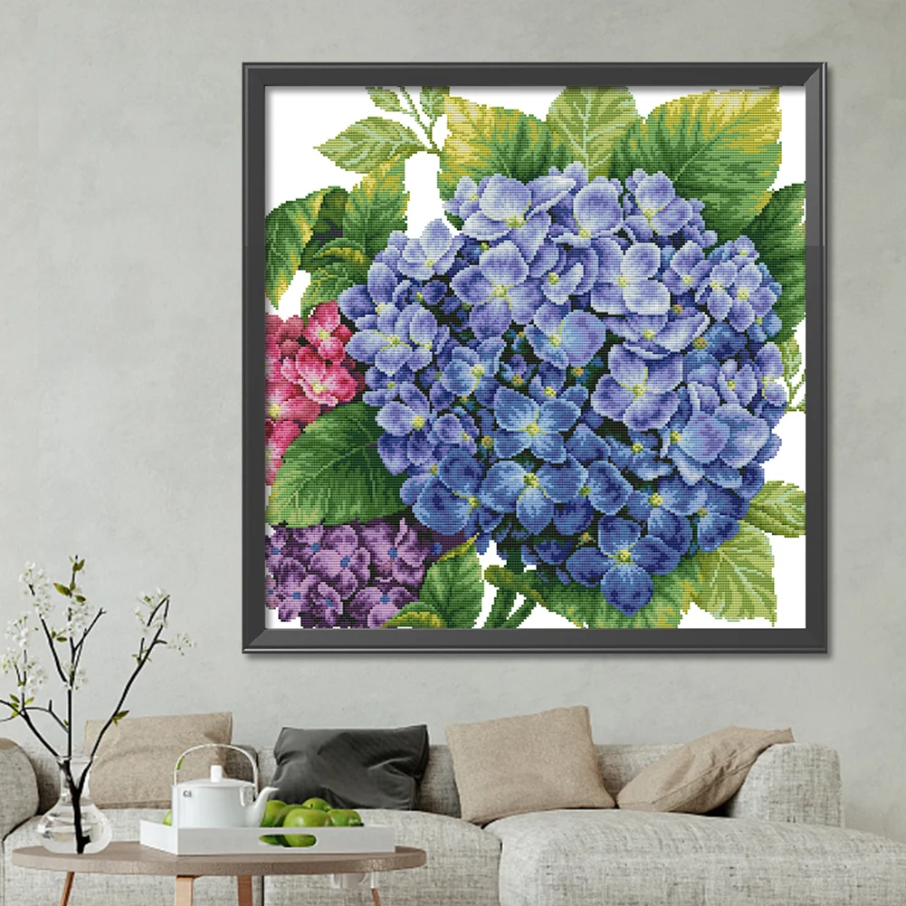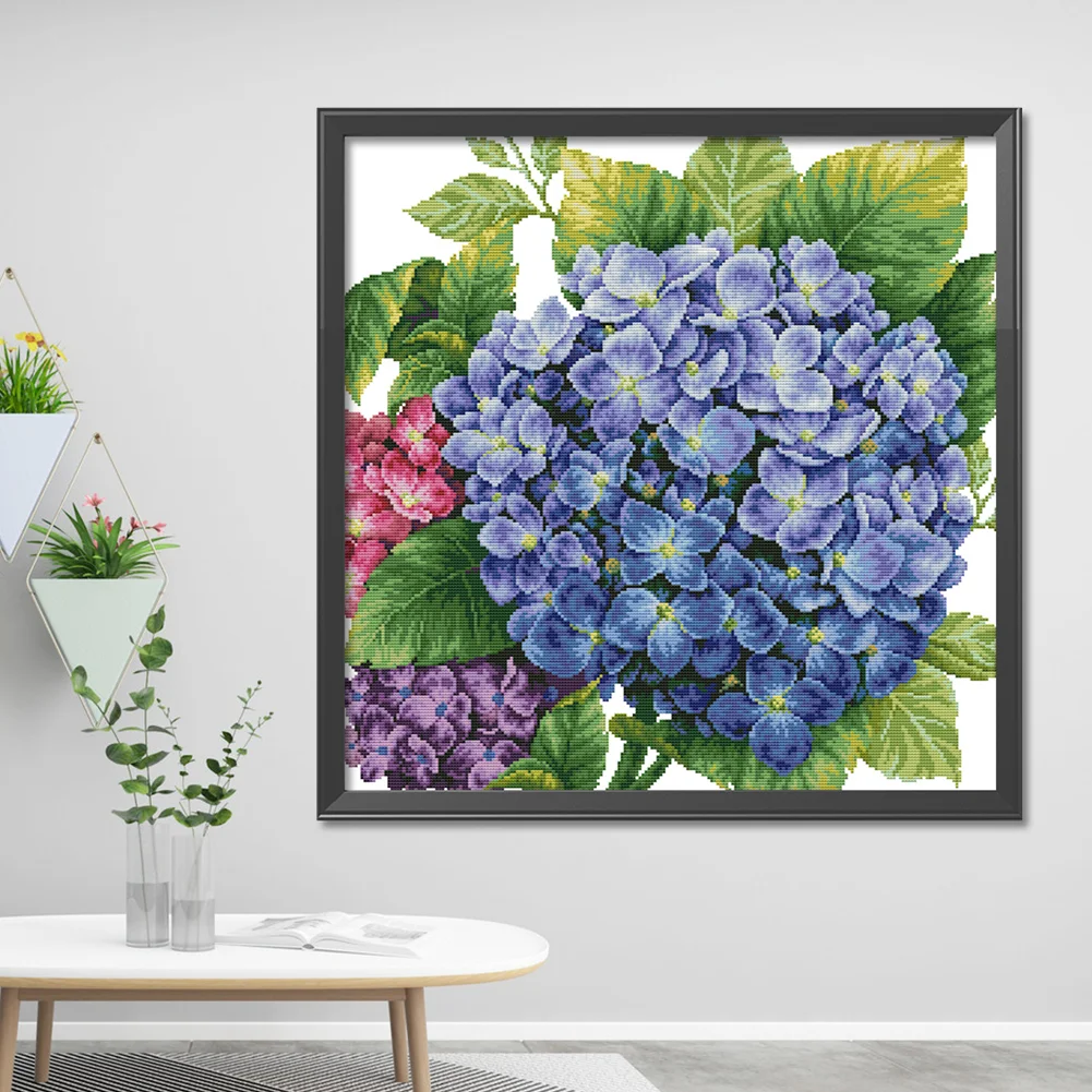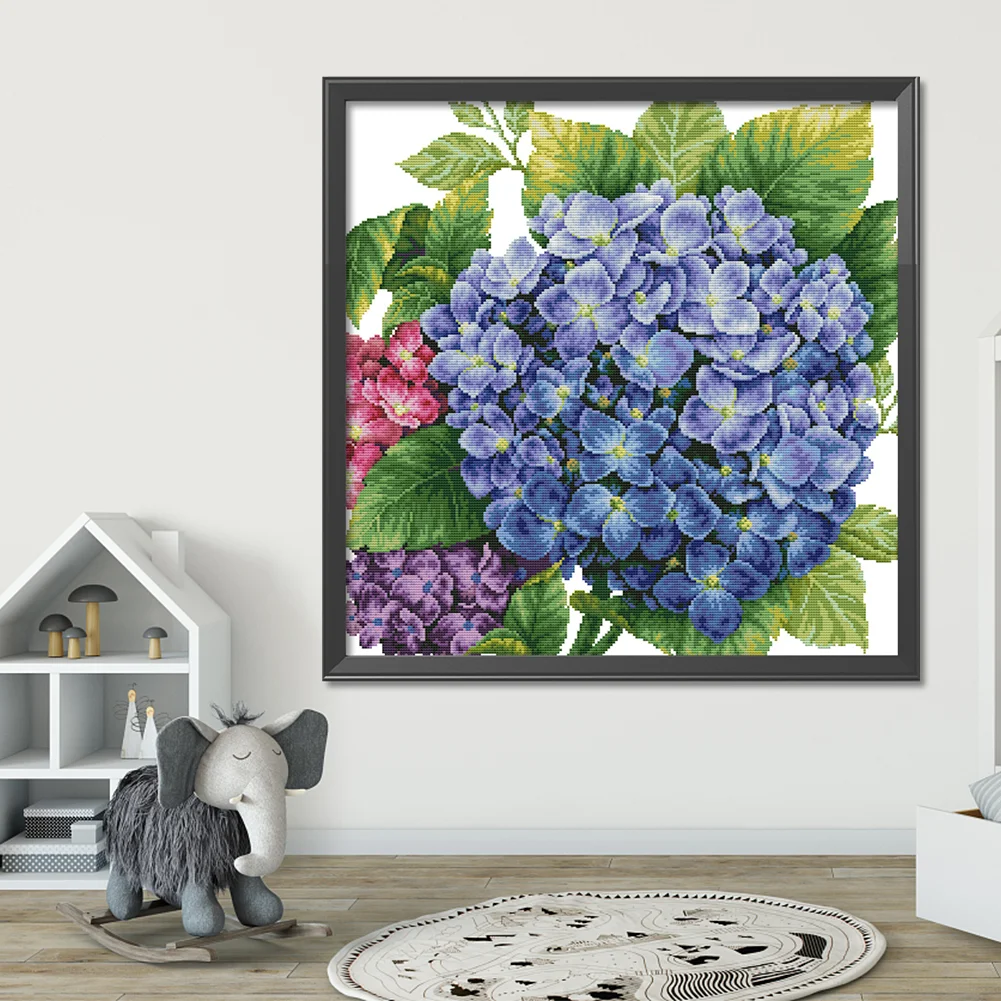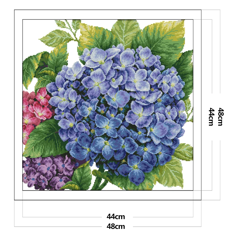 Partial Embroidery Hydrangea Needles Thread Cross Stitch Ecological Cotton 14CT 2 Strand Stamped Embroidery Kits Print Canvas DIY Art Needlework Home Decoration Picture Craft