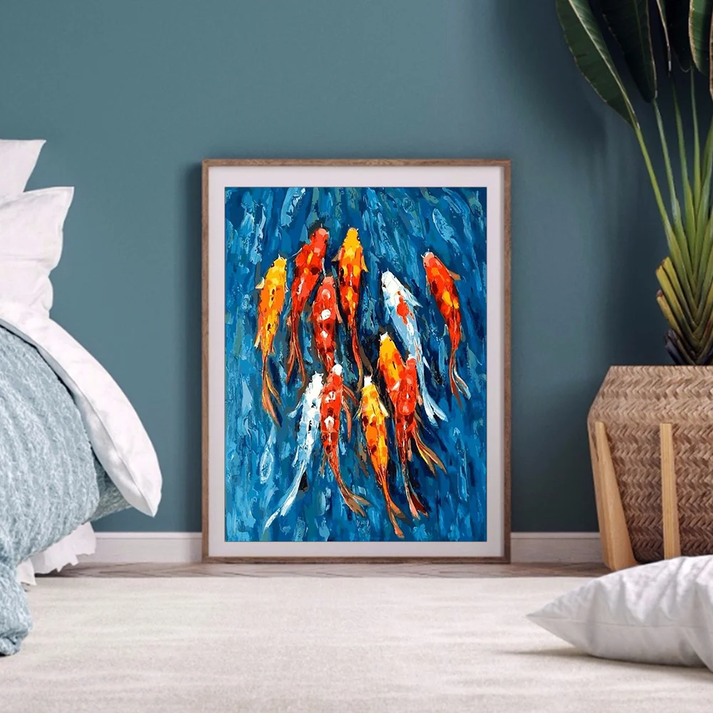 Full Embroidery Koi Fish Pattern DIY Cross Stitch Kits Stamped Canvas 11CT Needlework Sets Home Decor