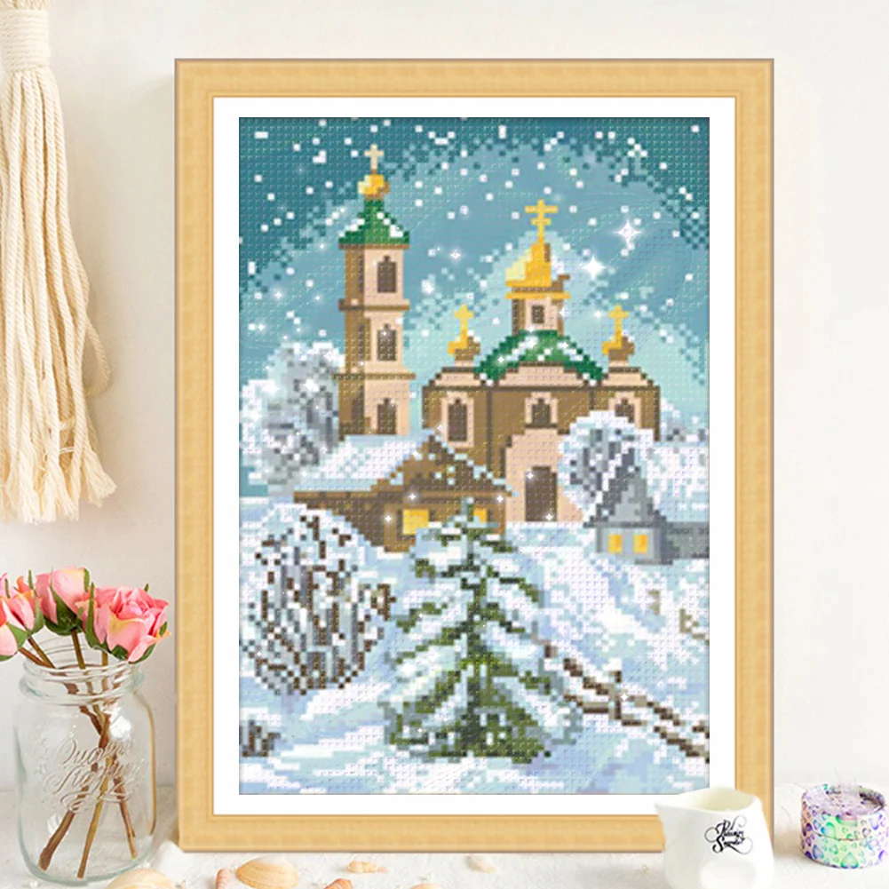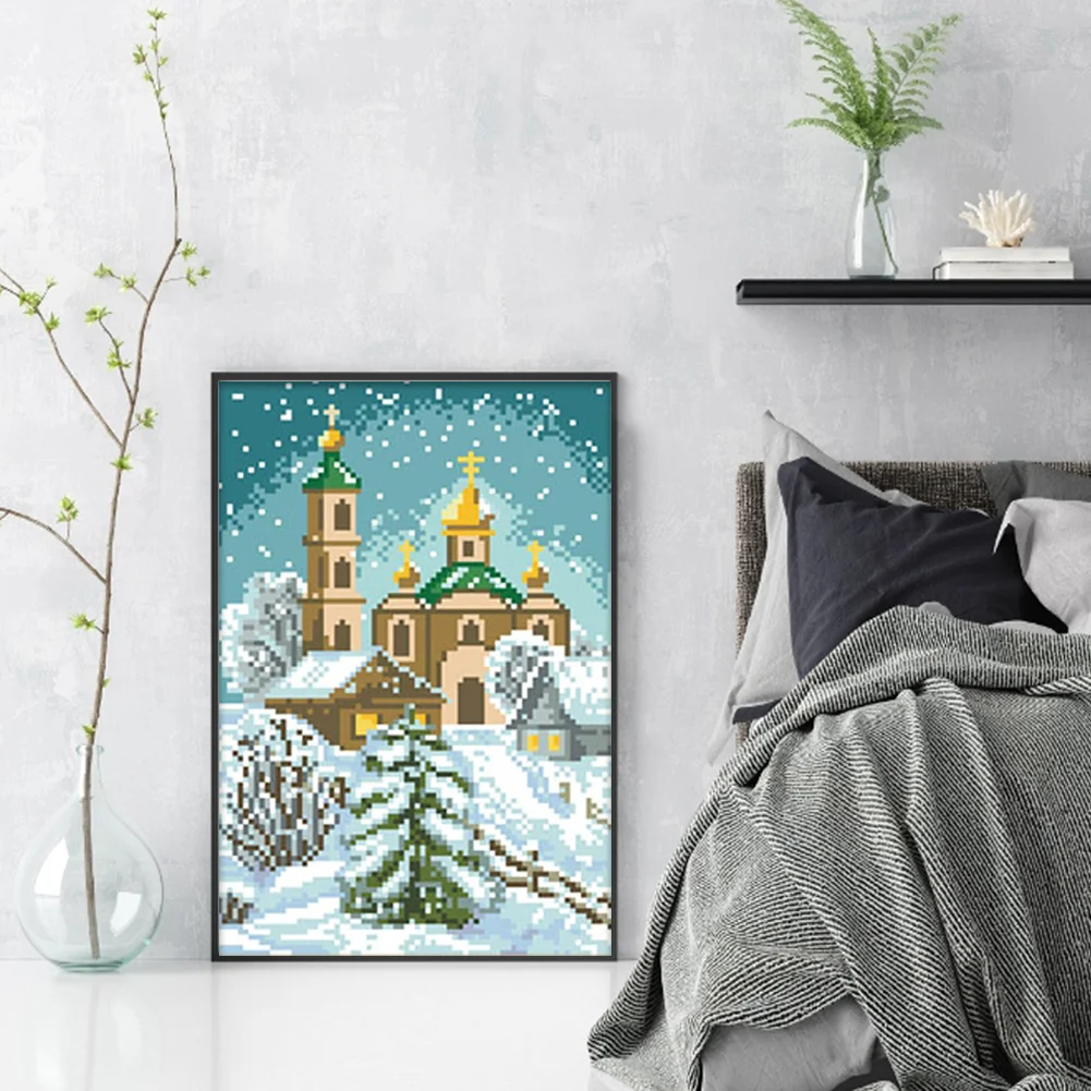 [Bead Embroidery] - 9CT Partial Stamped Cross Stitch - Castle (22*32CM)
