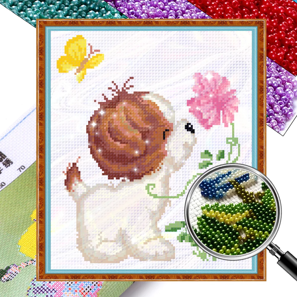 Specification: Canvas size: 20*20cm/7.87*7.87in, 24x25cm/9.45x 9.84in, 26x28cm/10.24x 11.02in, 27x27cm/10.63x 10.63 in, 28x32cm/11.02x 12.60in, 29x32cm/11.42x 12.60in, 58x40cm/22.83x15.75in, 31x31cm/12.20x 12.20, 30x39cm/11.81x 15.35in, 31x48cm/12.20x 18.90in, 32x36cm/12.60x 14.17in, 35x43cm/13.78 x 16.93in, 39x32cm/15.35x 12.60in, 43x28cm/16.93x 11.02in (White edge of embroidery cloth 5cm) Bead shape: equal circle Material: cotton + imitation pearls Cross-stitch cloth specification: 9CT (canvas includes printing). The thread for threading beads can be 1 strand or 2 strands.