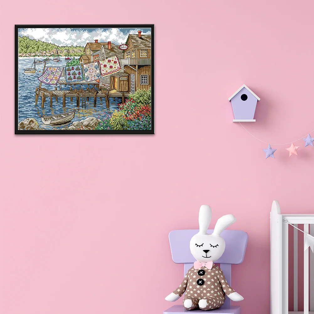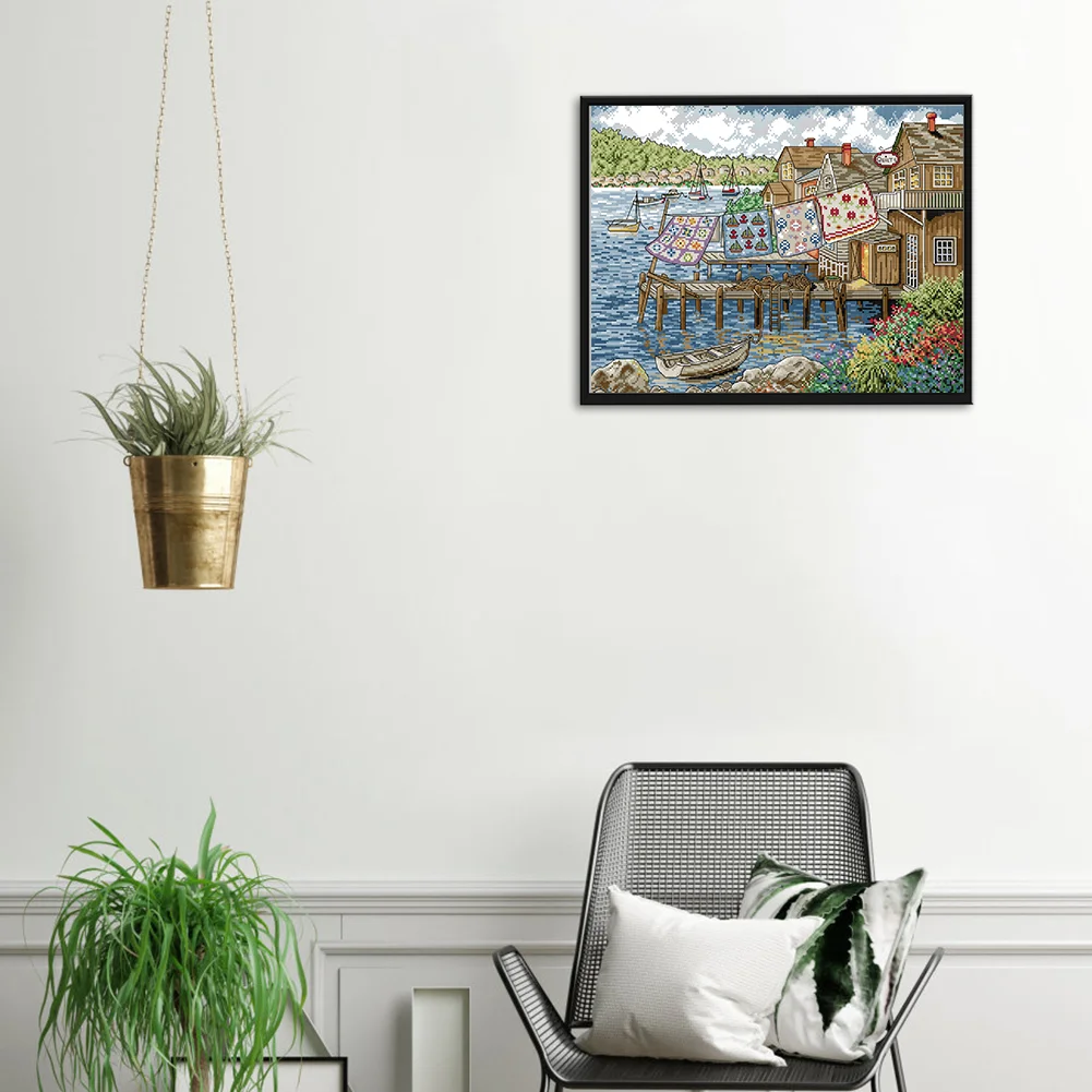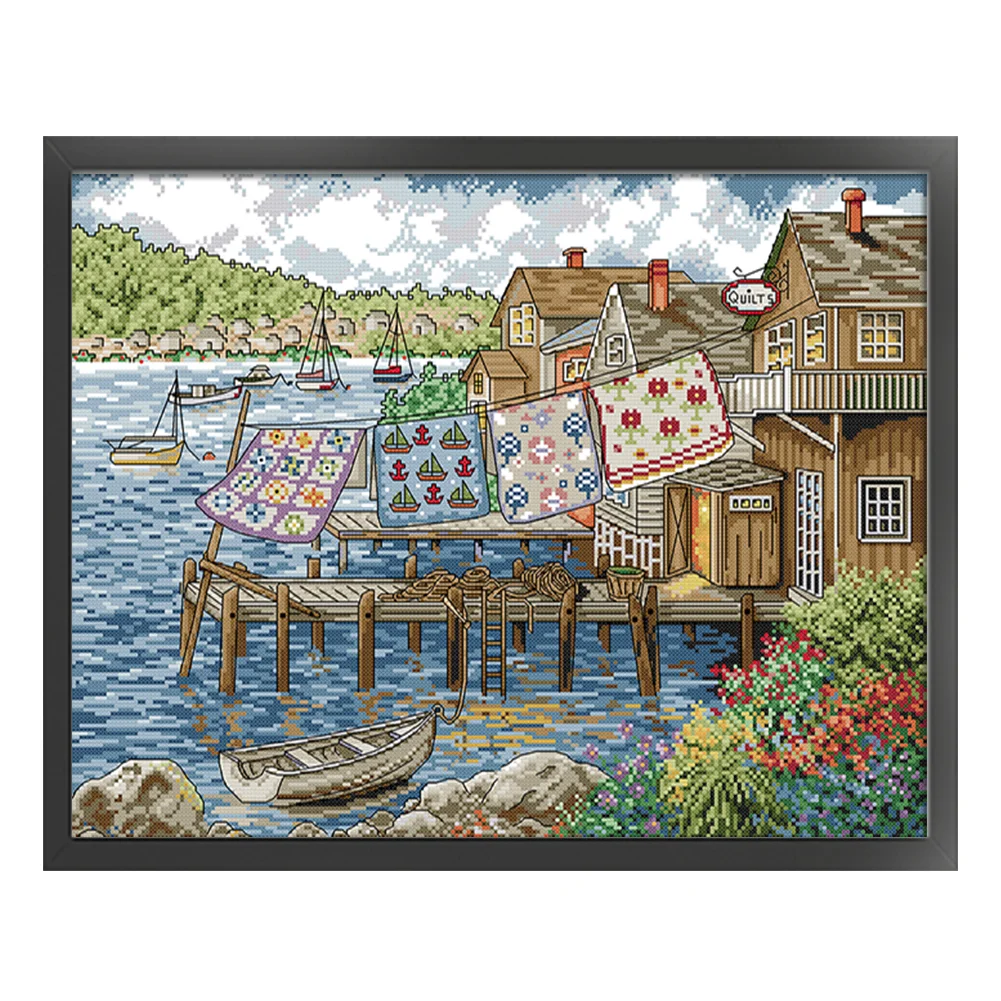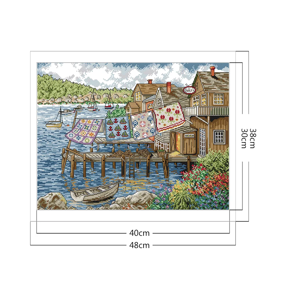[JOY SUNDAY] -14CT Partial Counted Cross Stitch Kit - Seaside (48*38CM)