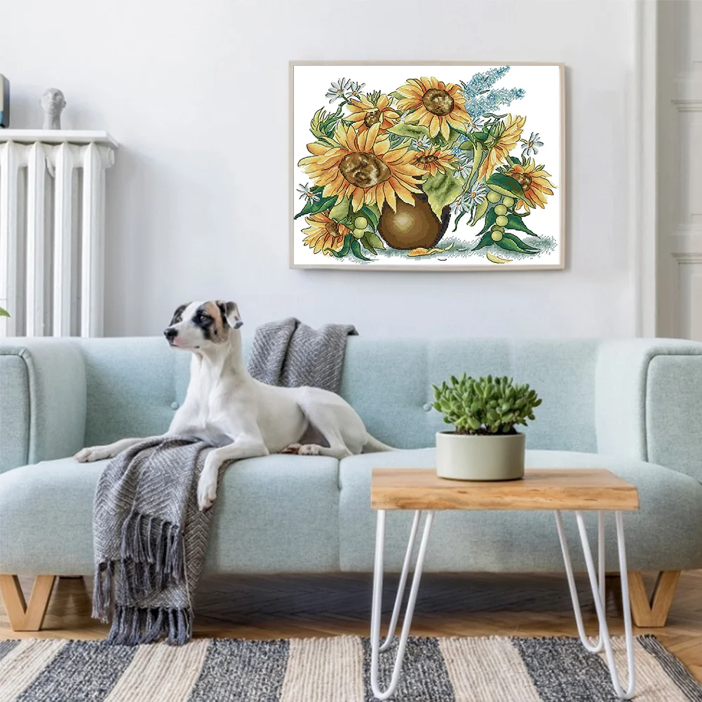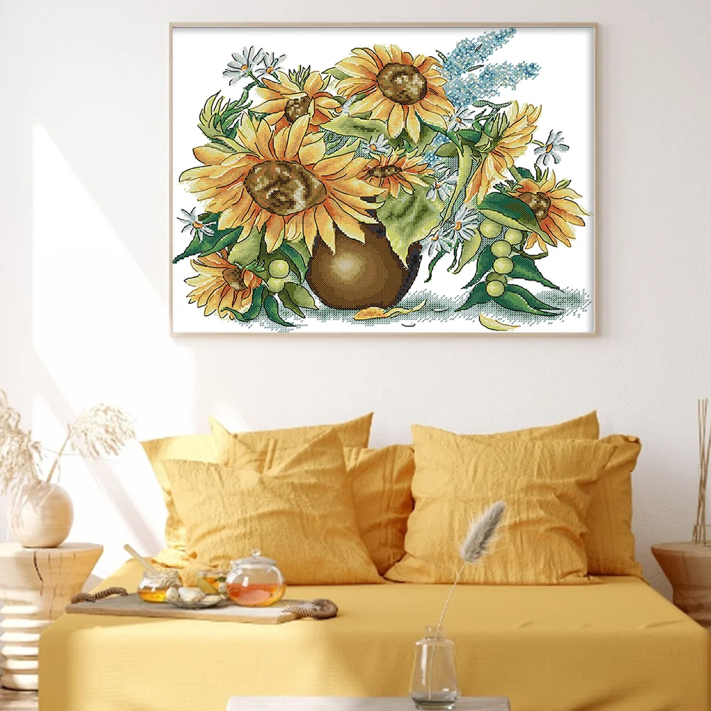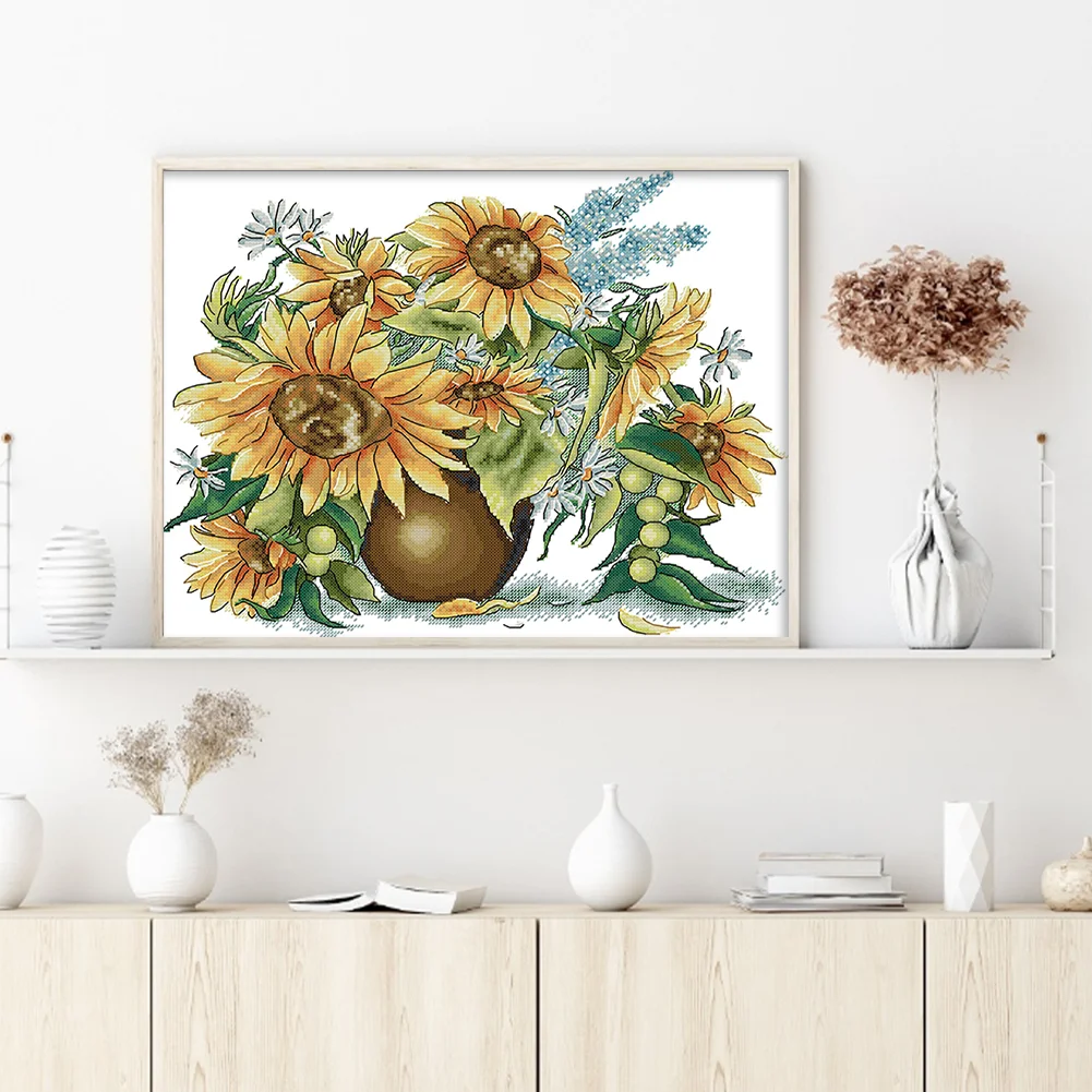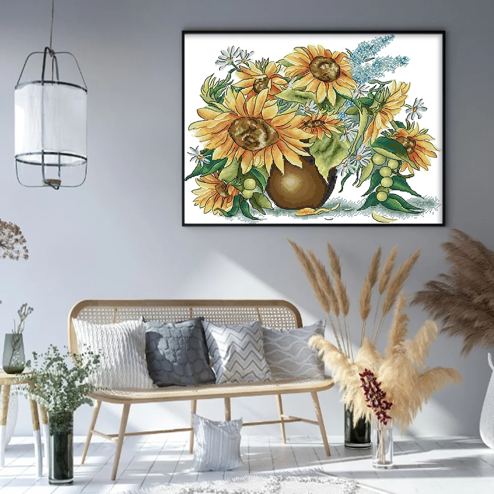 [JOY SUNDAY] -14CT Partial Counted Cross Stitch Kit - Sunflower (41*34CM)