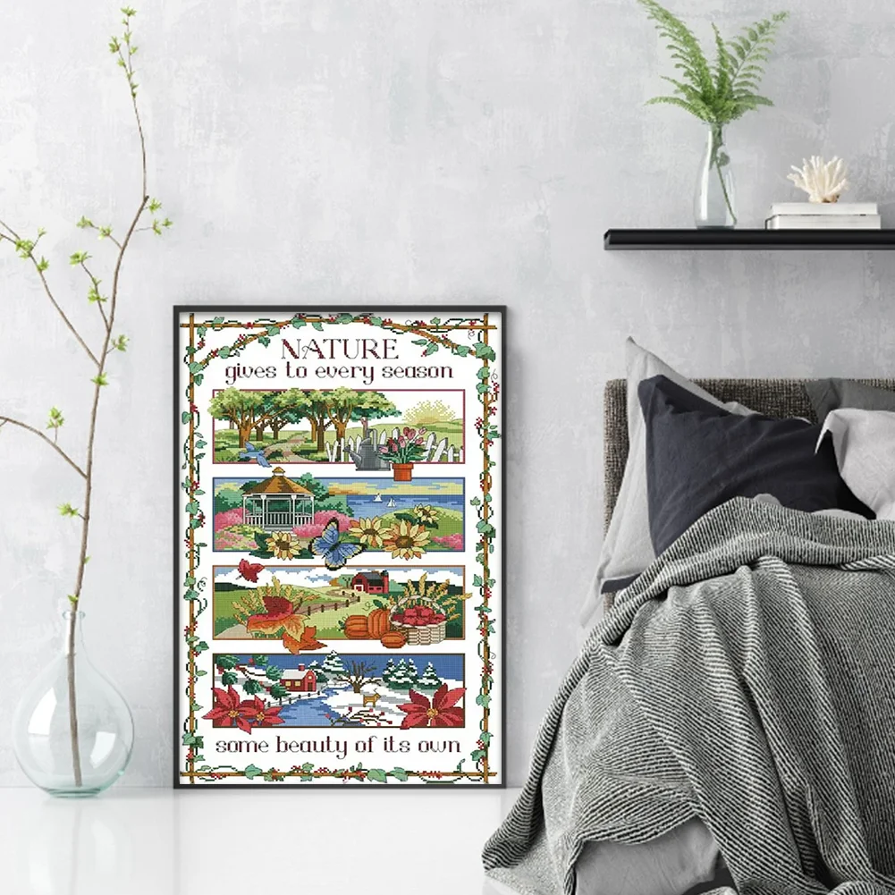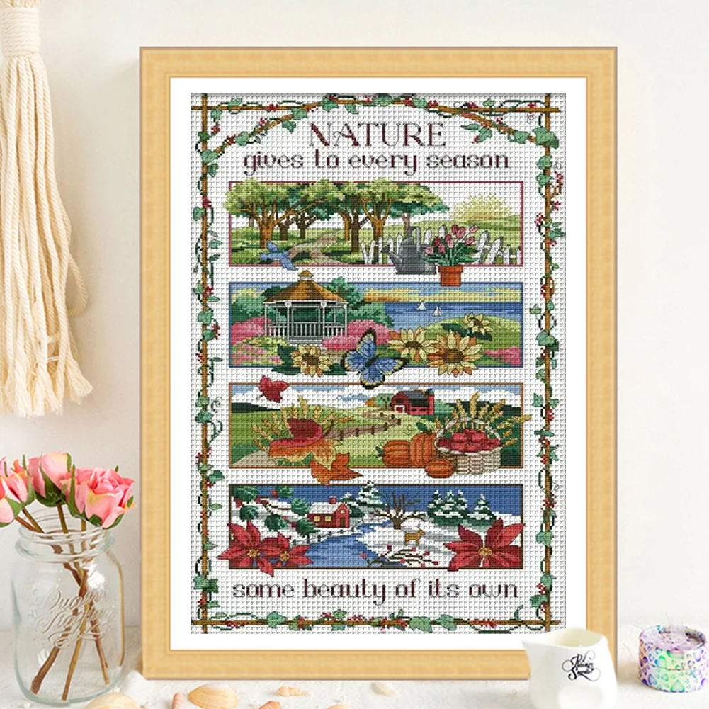 [JOY SUNDAY] -14CT Partial Stamped Cross Stitch Kit - Four Seasons (38*58CM)