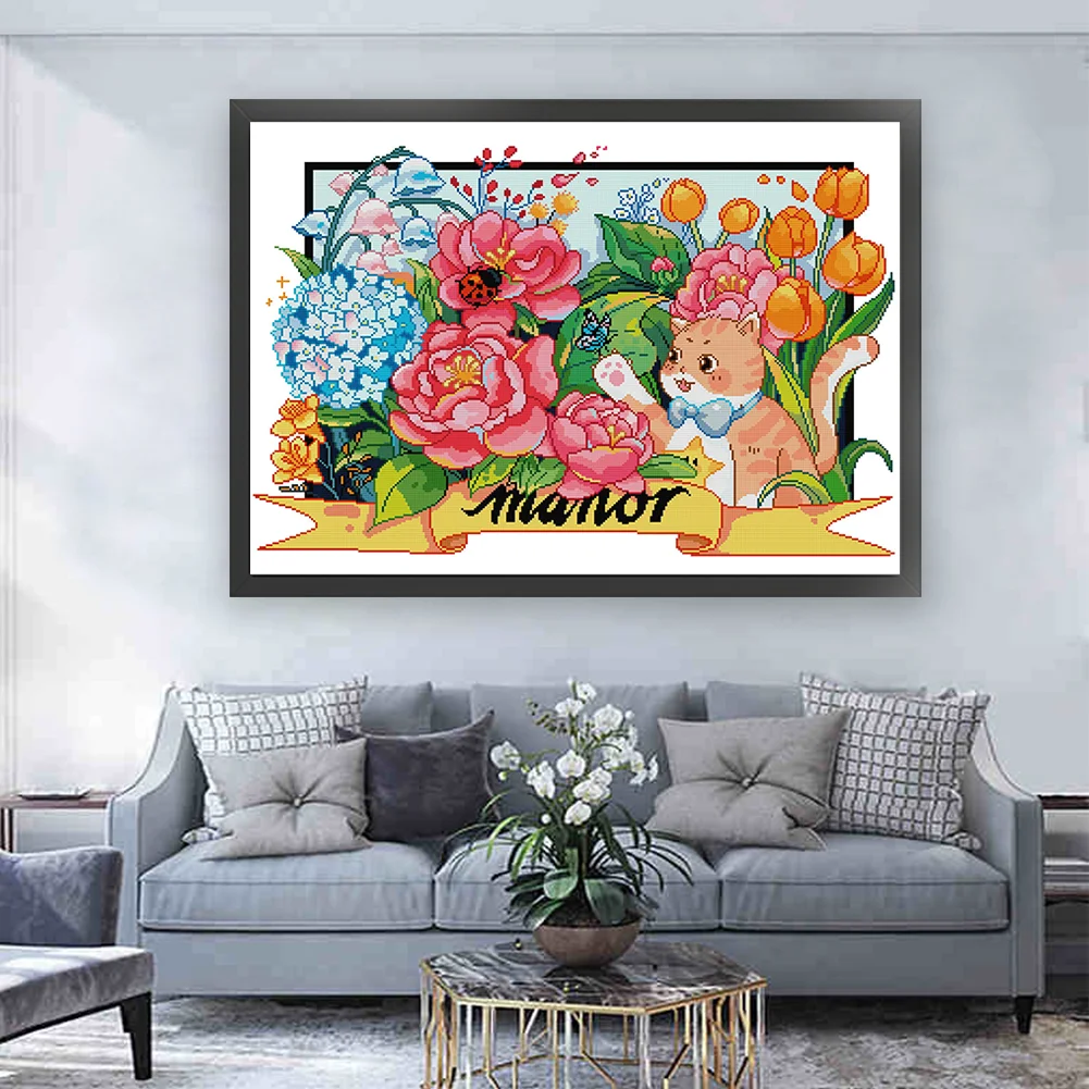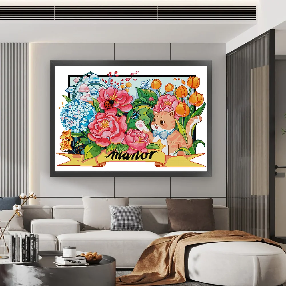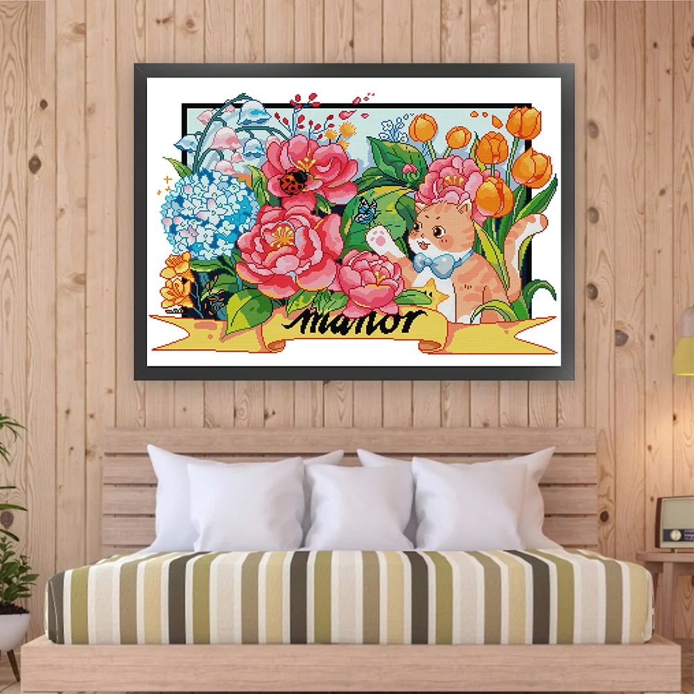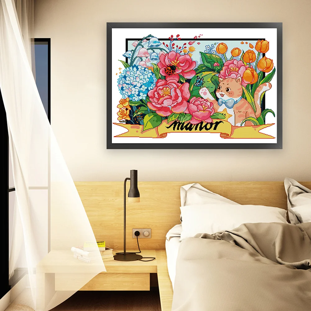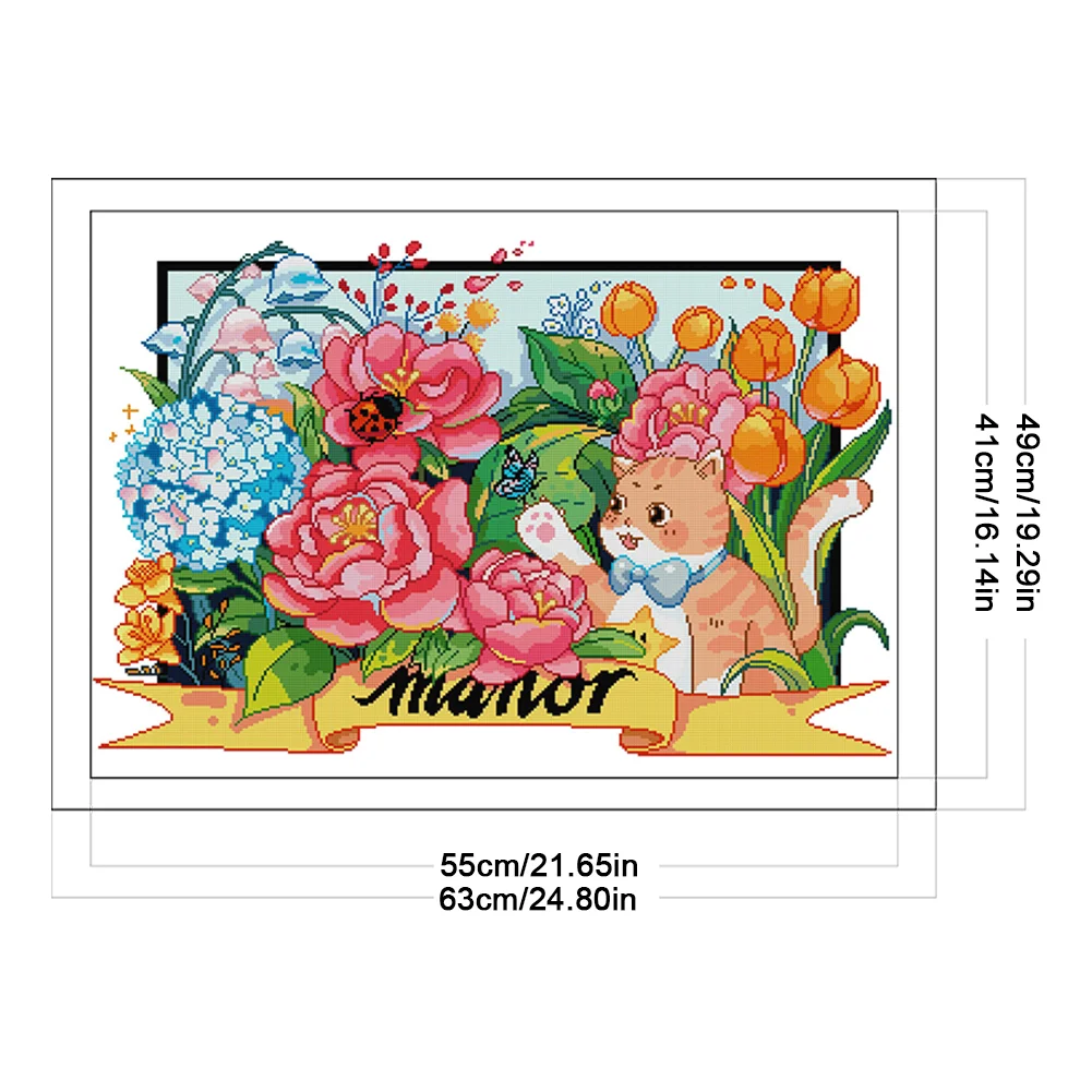 [JOY SUNDAY] -14CT Partial Stamped Cross Stitch Kit - Cat (63*49CM)