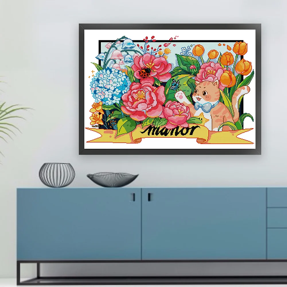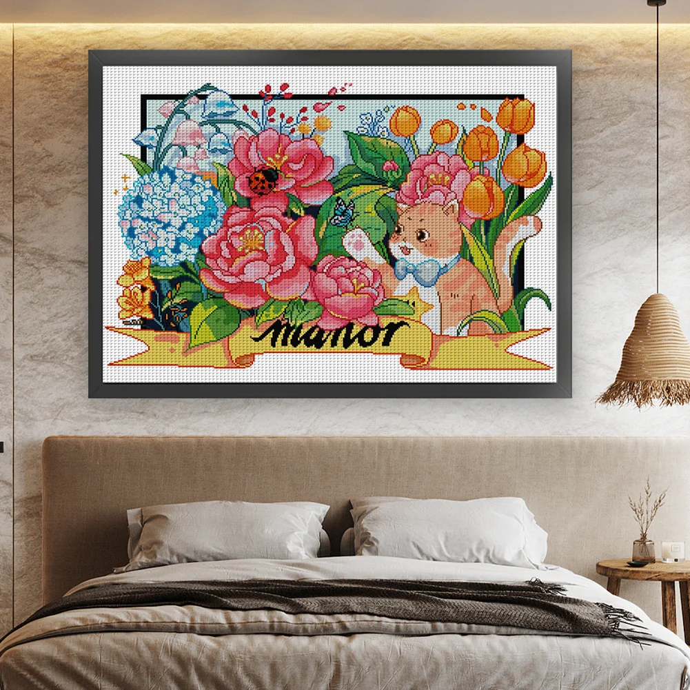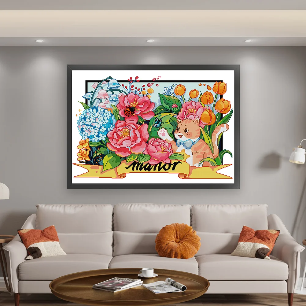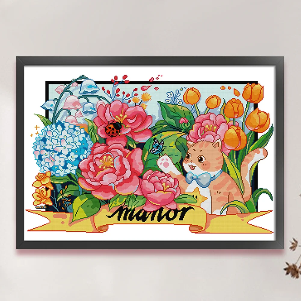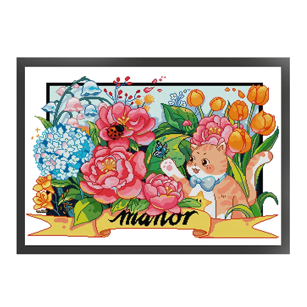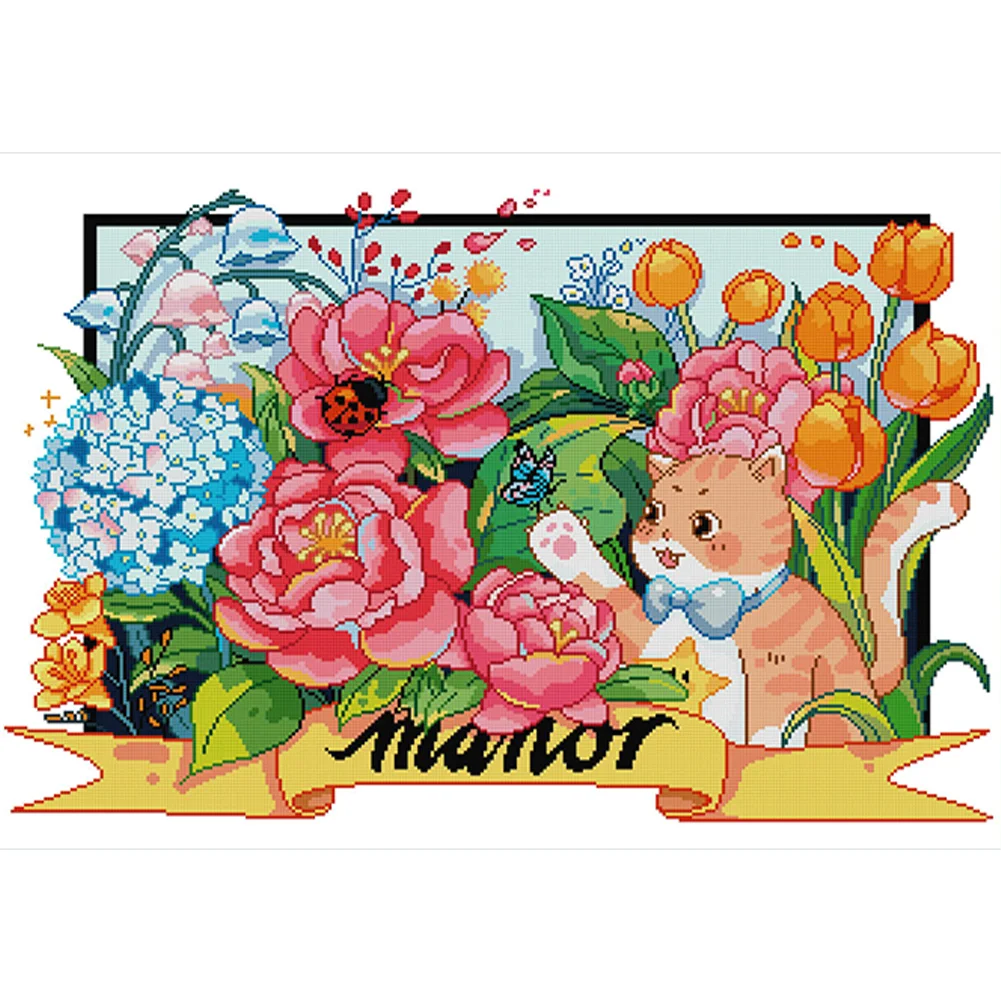 [JOY SUNDAY] -14CT Partial Stamped Cross Stitch Kit - Cat (63*49CM)