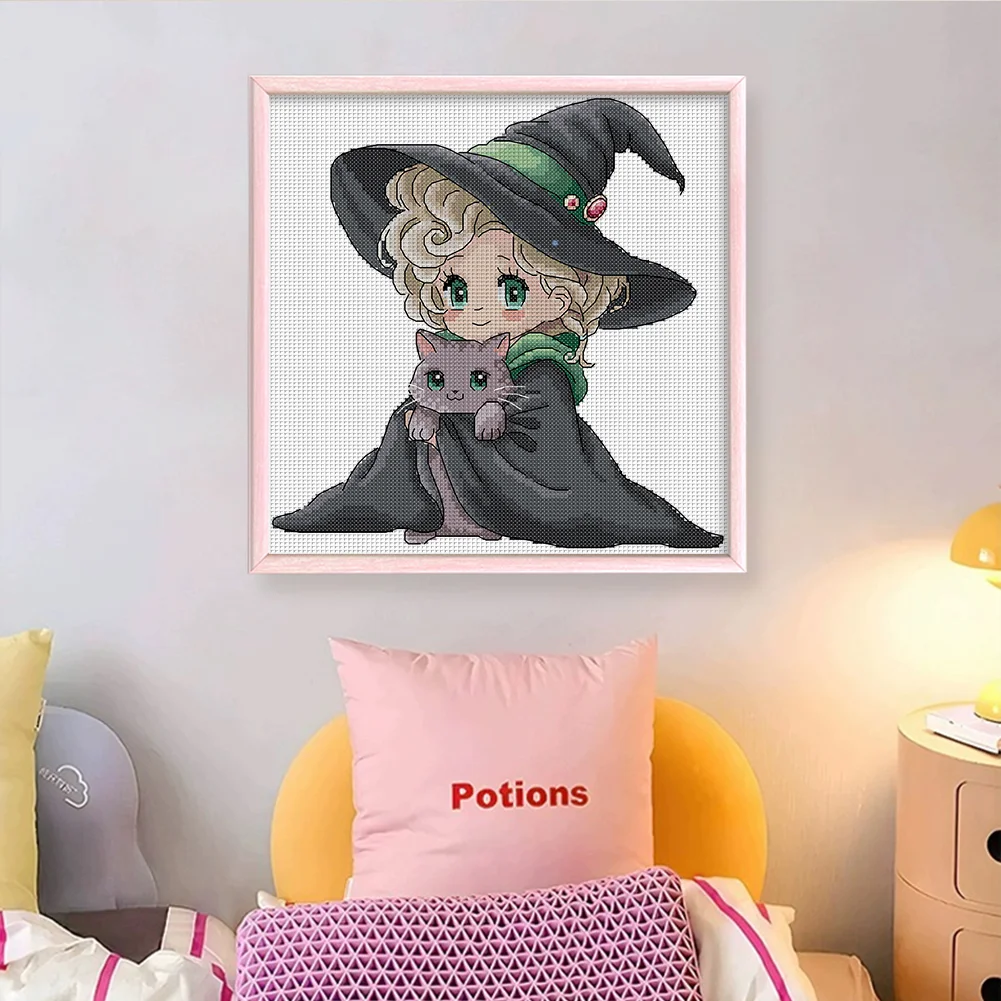 [JOY SUNDAY]-14CT Partial Stamped Cross Stitch Kit - Girl (29*29CM)