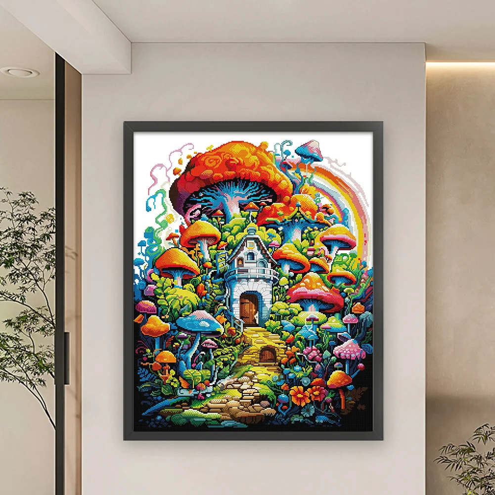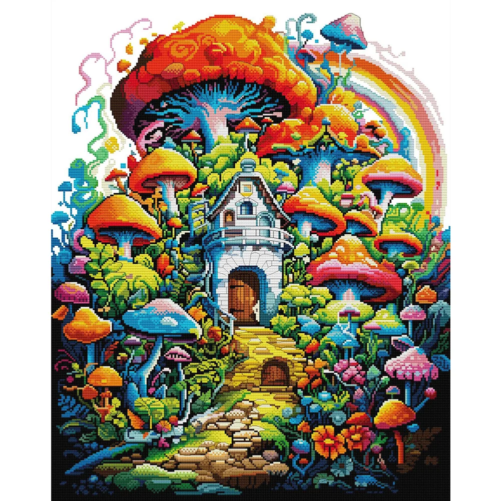 [JOY SUNDAY] -14CT Partial Stamped Cross Stitch Kit - House (50*63CM)