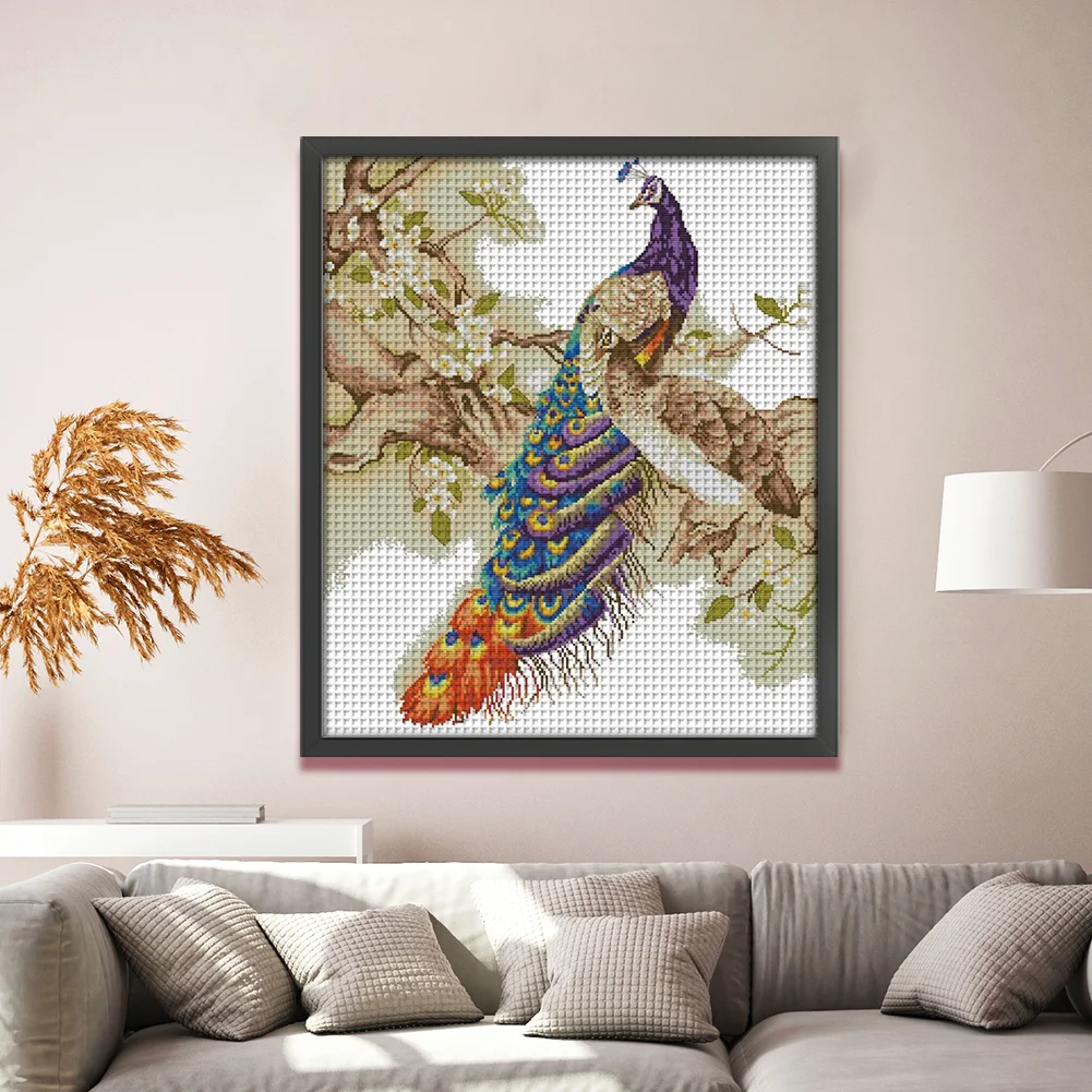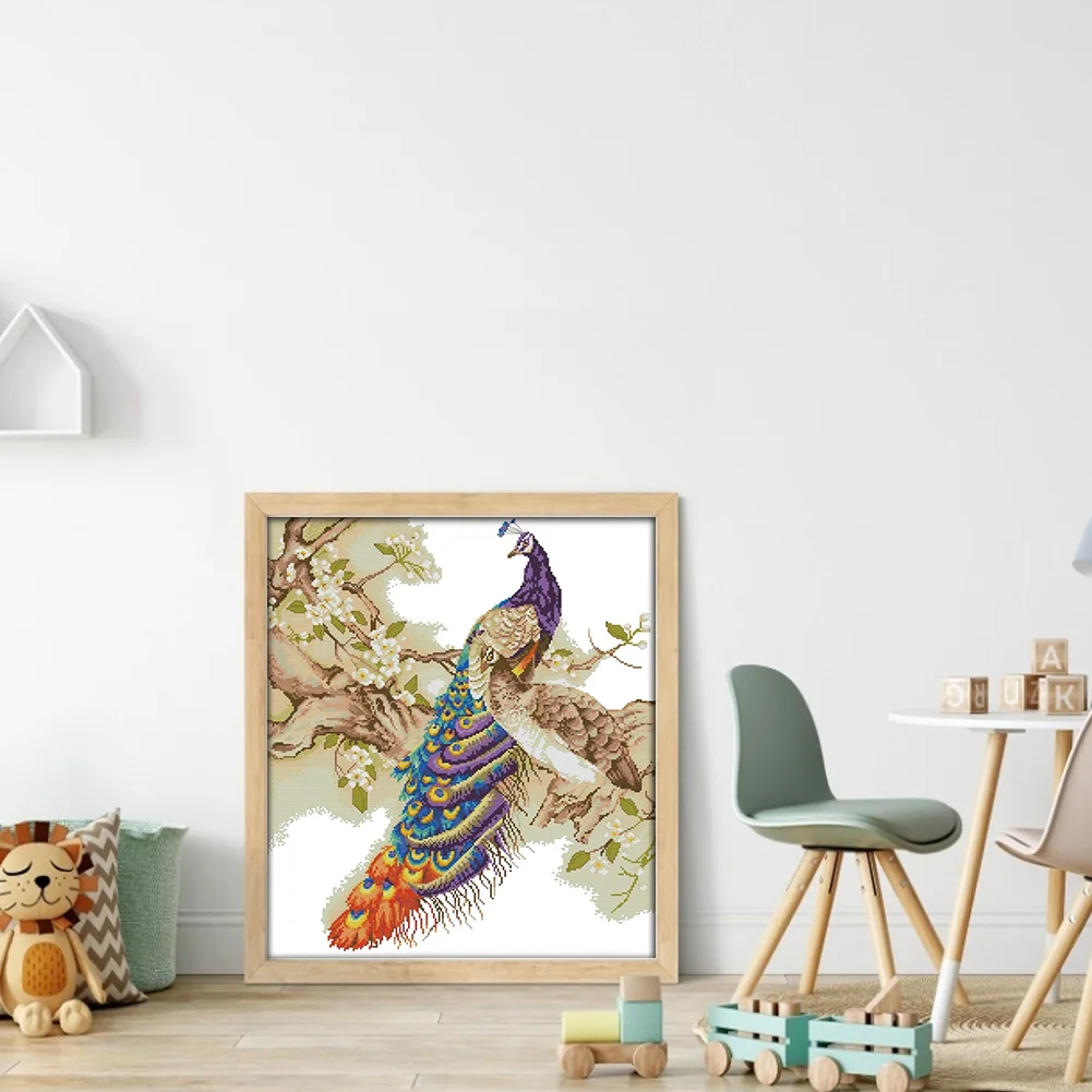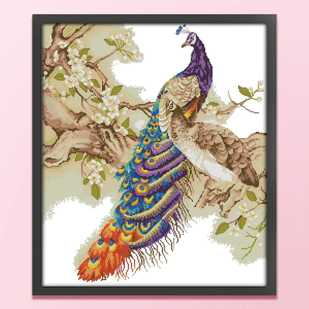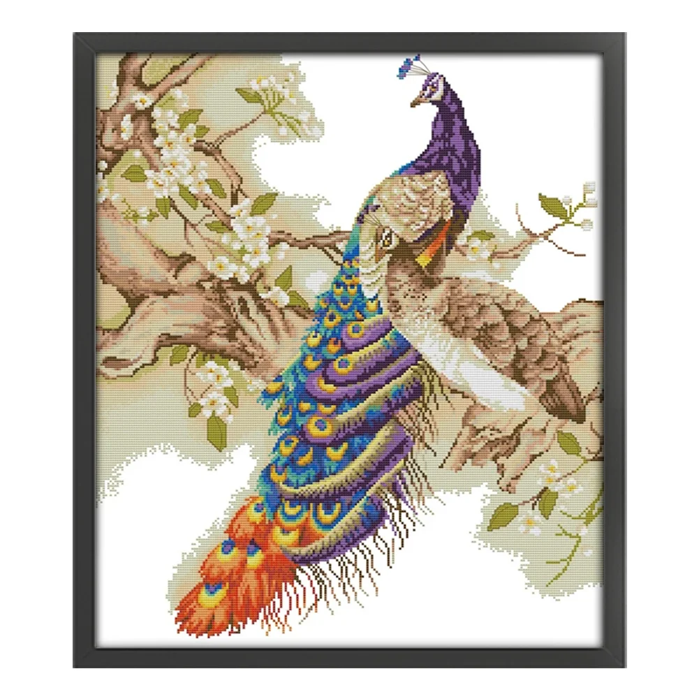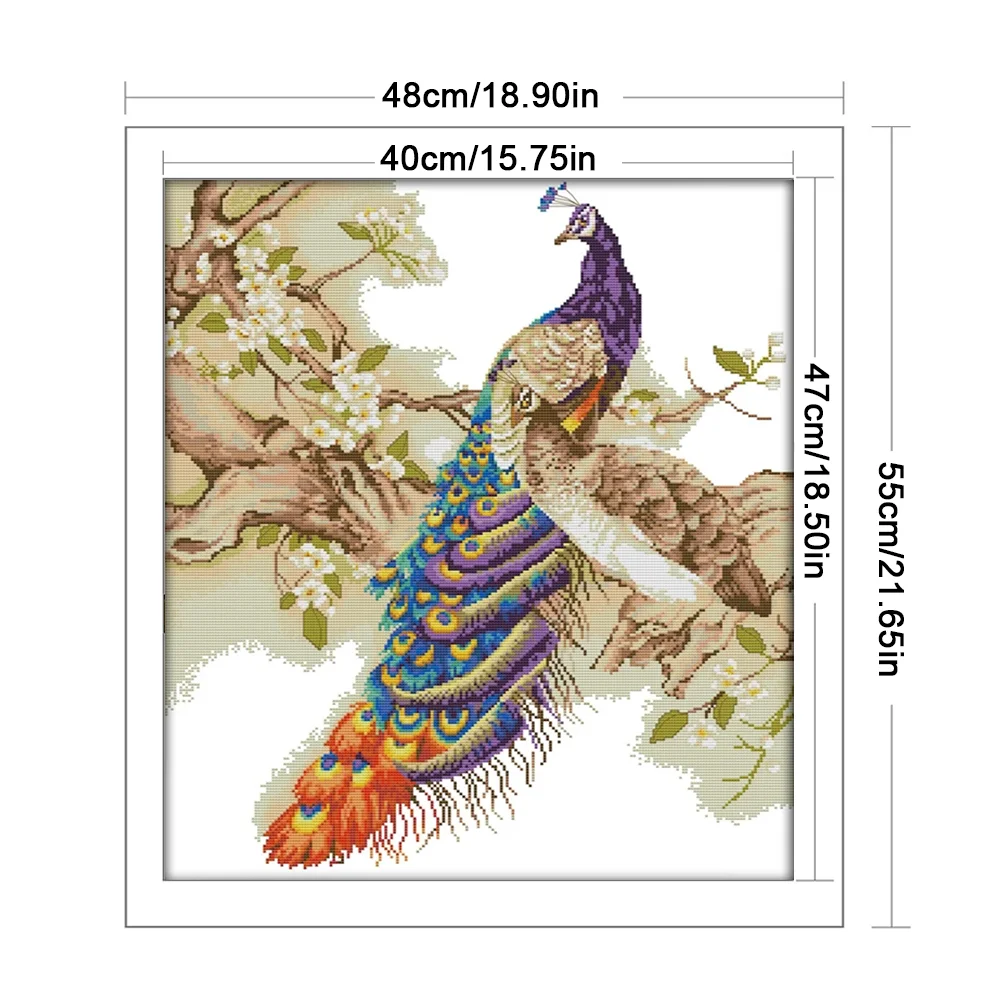 [JOY SUNDAY] -14CT Partial Stamped Cross Stitch Kit - Peacock (48*55CM)