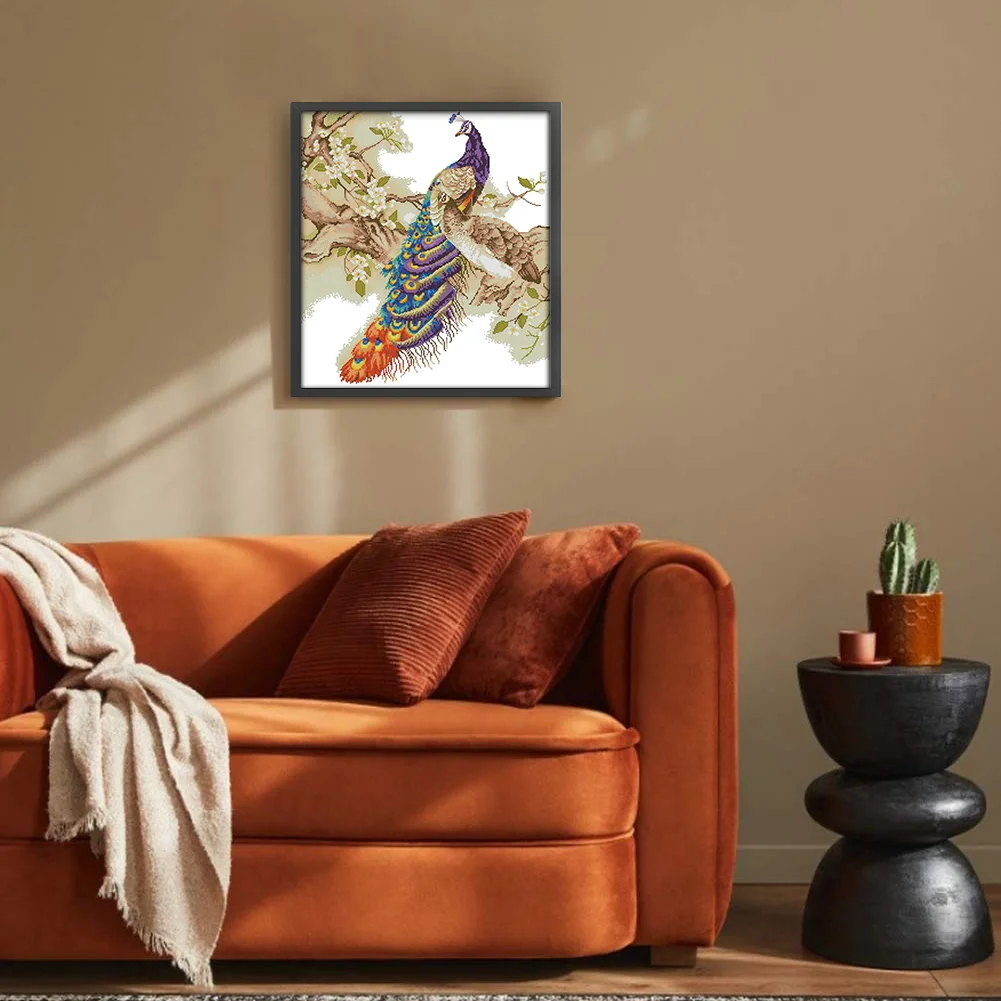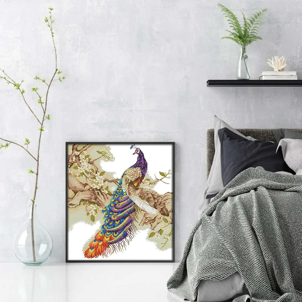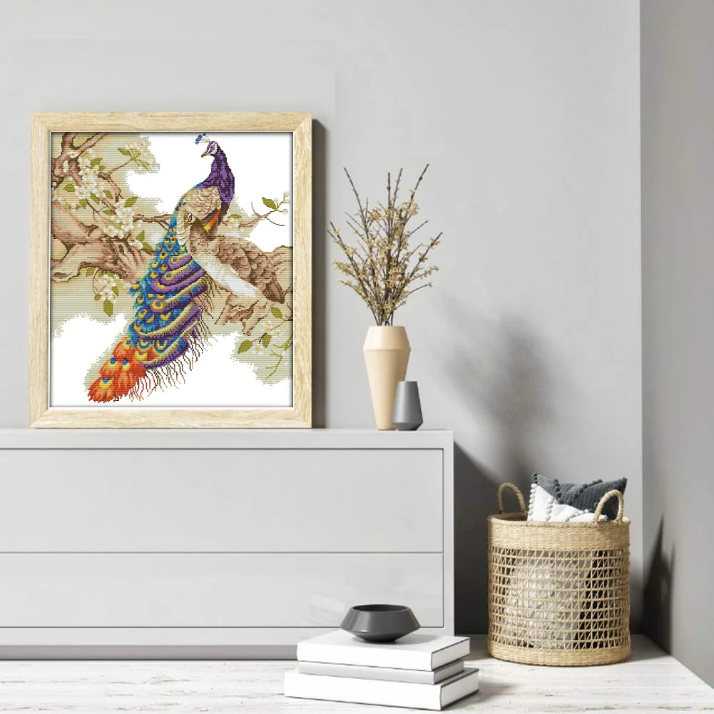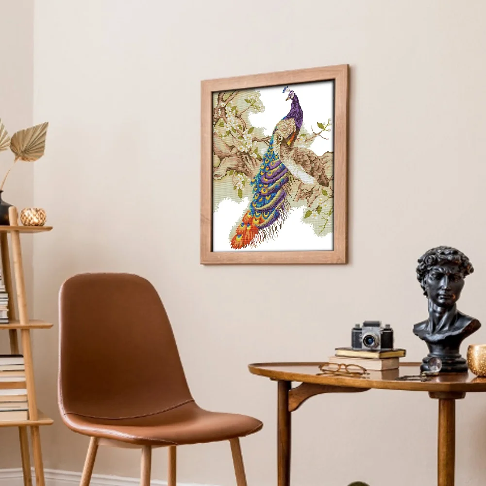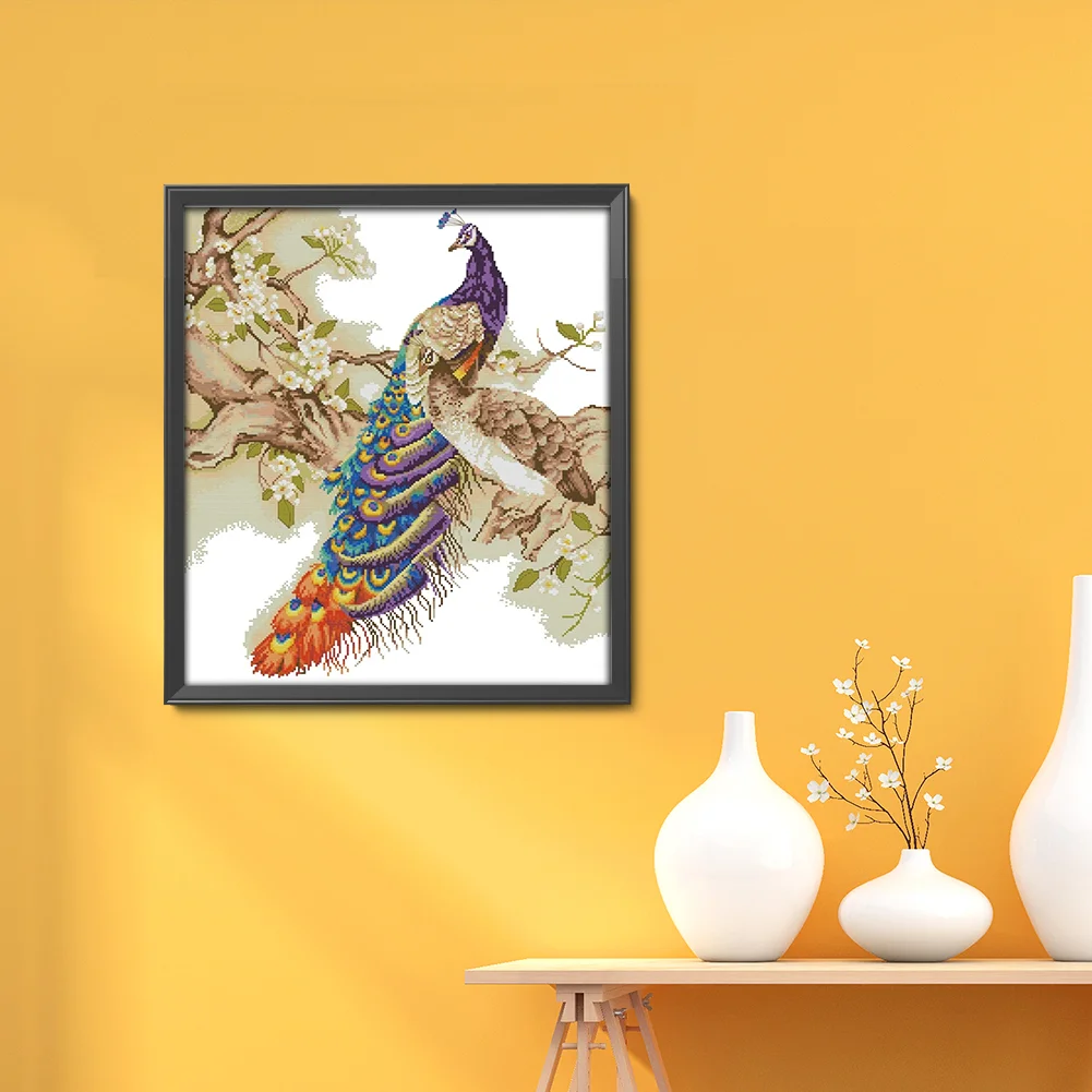 [JOY SUNDAY] -14CT Partial Stamped Cross Stitch Kit - Peacock (48*55CM)