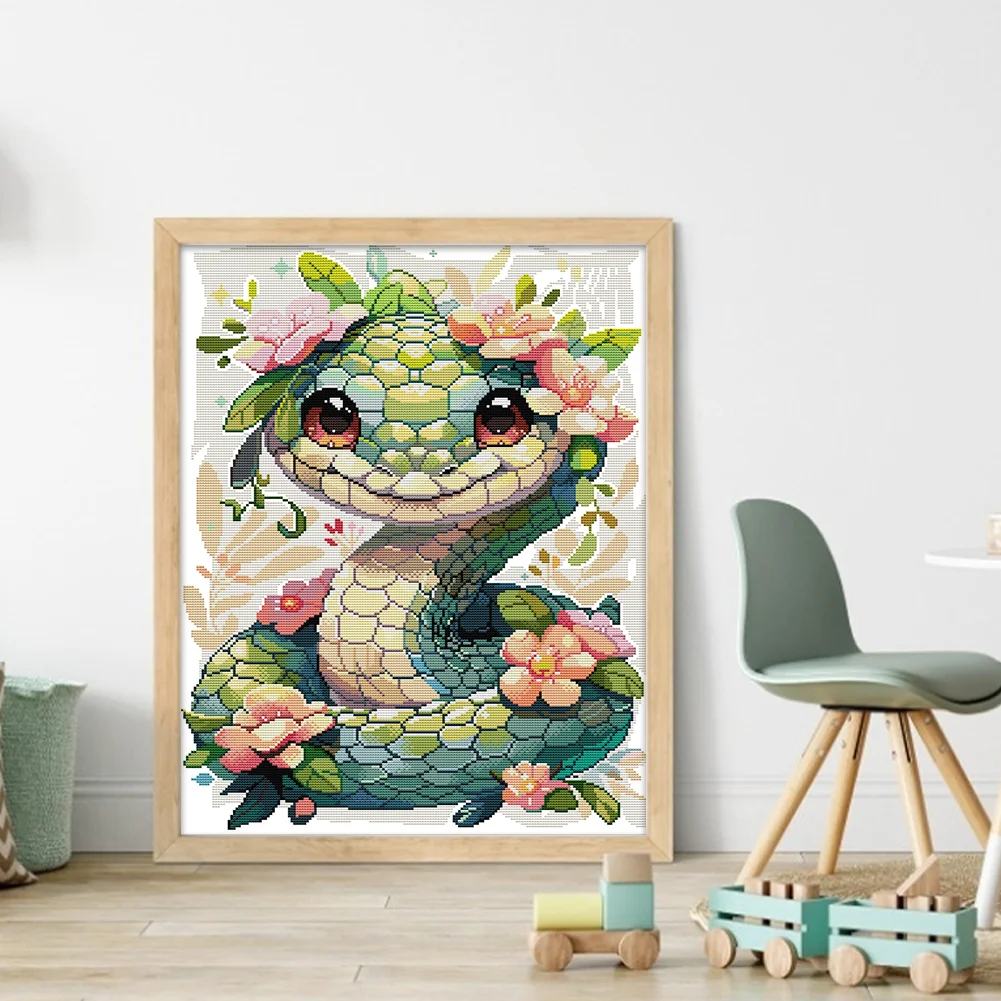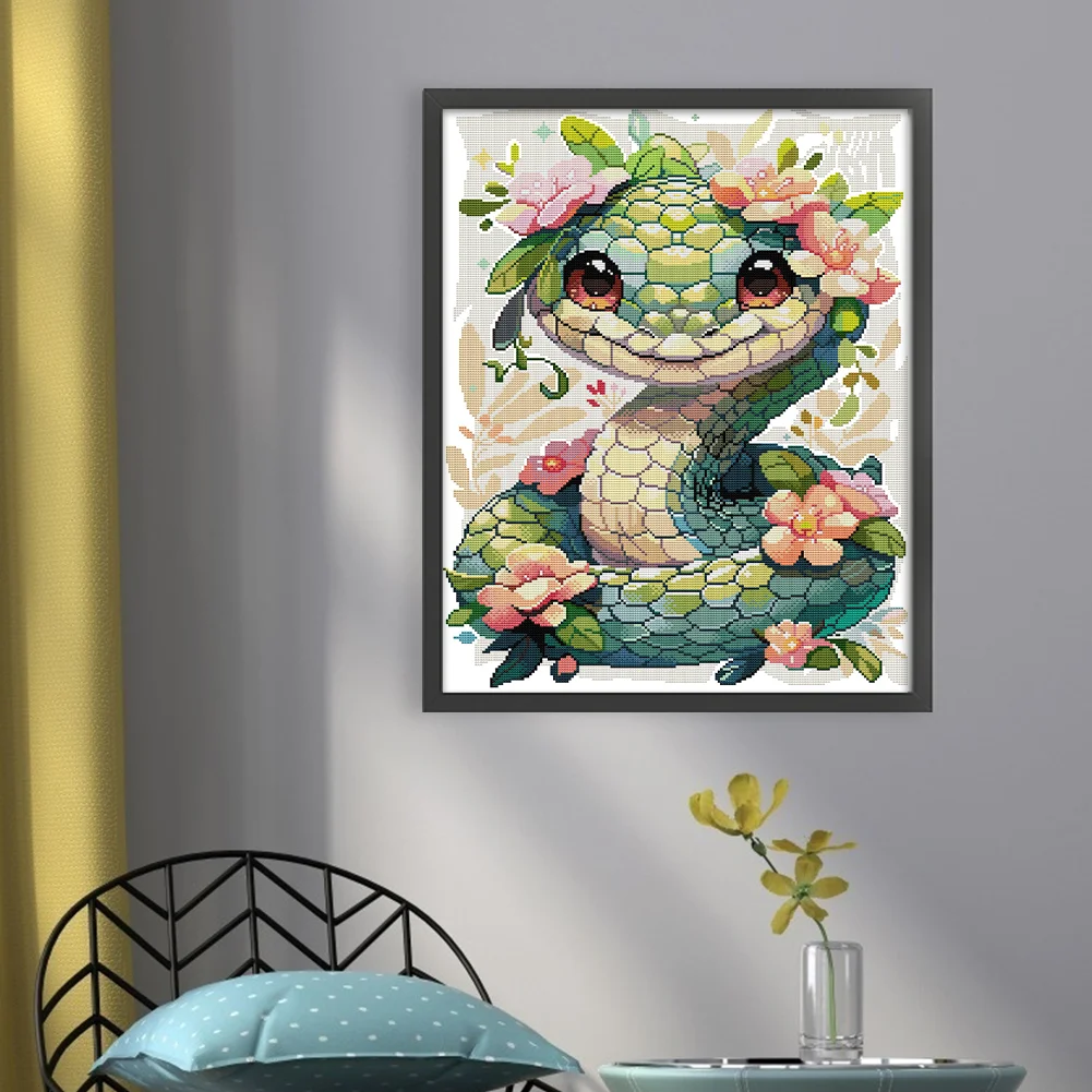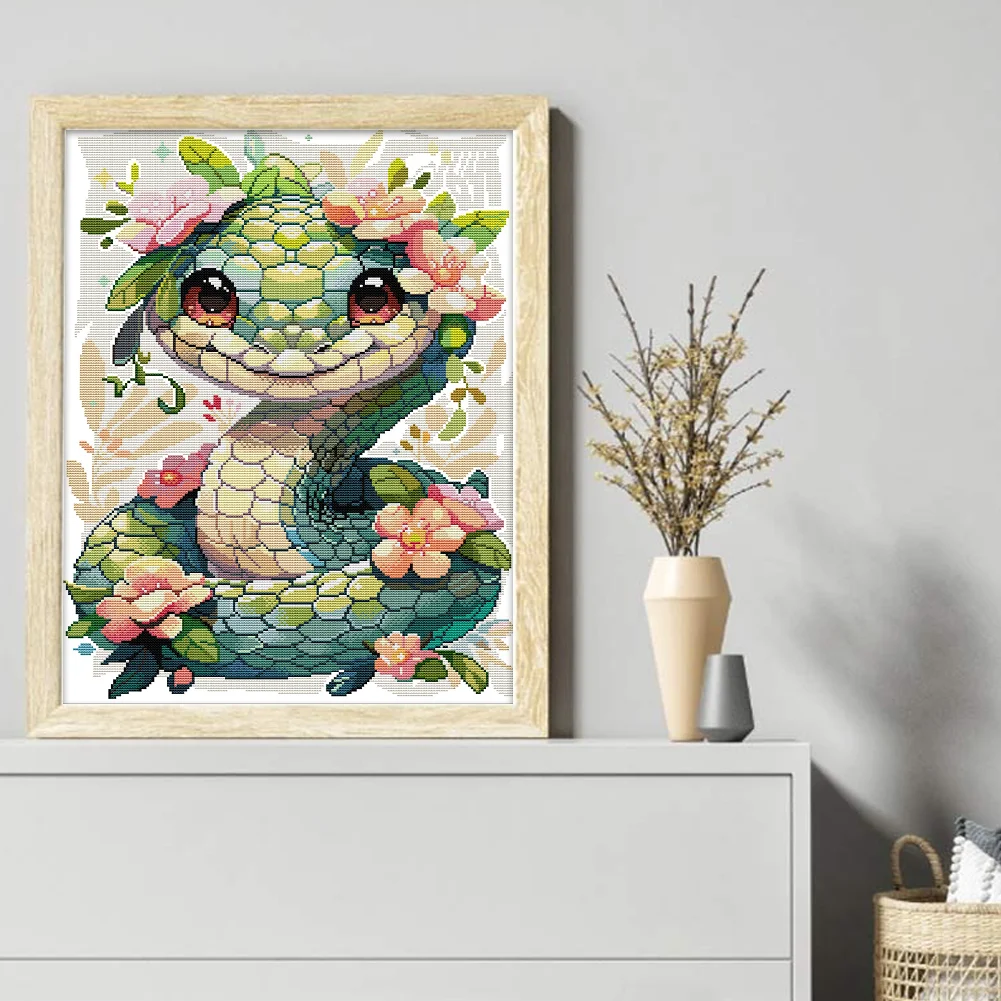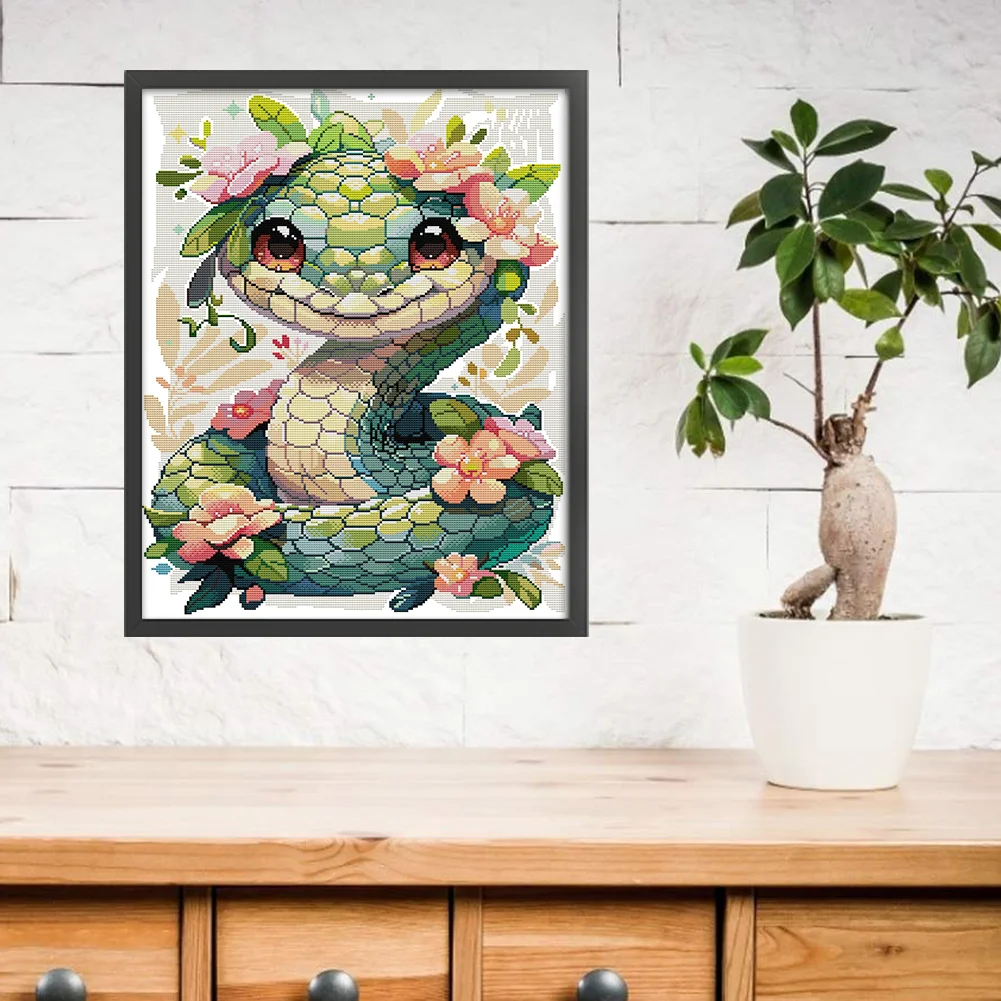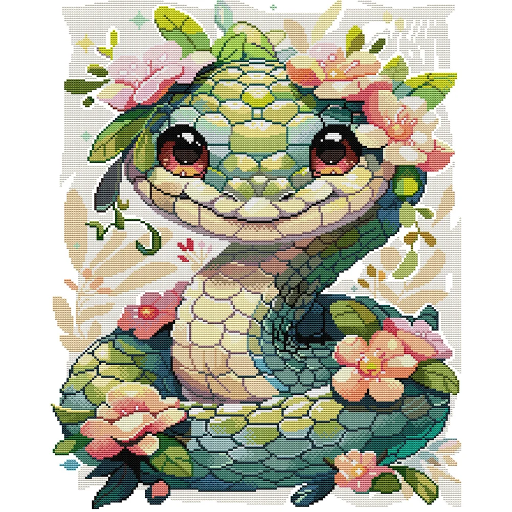 [JOY SUNDAY] -14CT Partial Stamped Cross Stitch Kit - Snake (40*51CM)