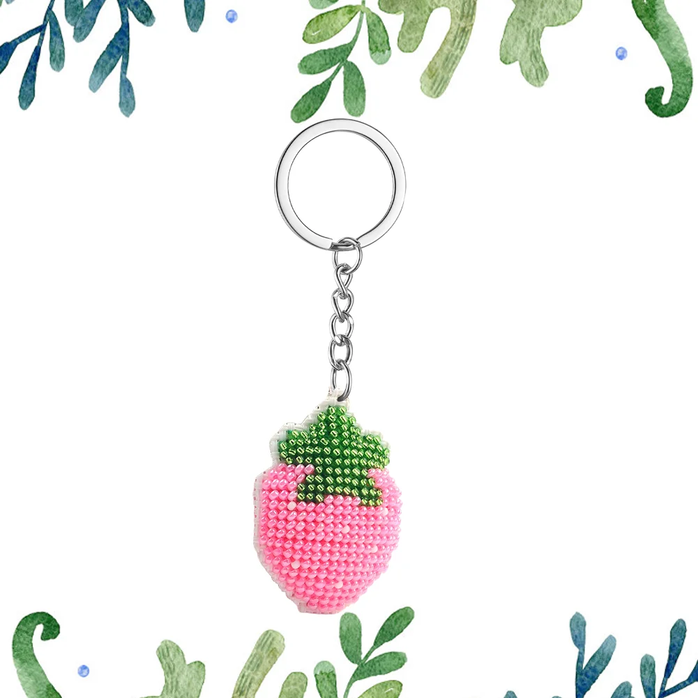 Cross Stitch Bead Keychain Exquisite Keychain Pendant Beaded Embroidery Kit DIY Cross Stitch Keyring for Adults Beginners